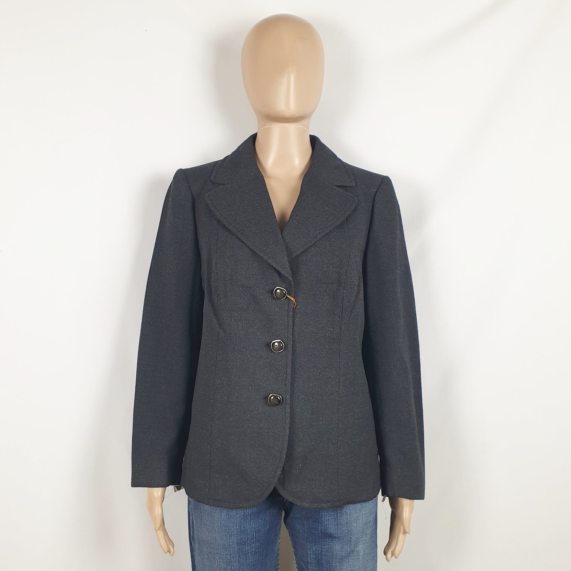 Giacca blazer vintage fine anni '60 ma mai utilizzata e nuova con cartellino. Color grigio canna di fucile, con reverse stondato e chiusura monopetto a tre bottoni, dalla particolare venatura effetto marmo. La taglia segnata è una 51 che non saprei tradurre e che qui vedete sul manichino 38/40; la vestibilità è buona fino alla 44 piena, prendete come riferimento le misure in piano: larghezza spalle 39-40 cm, lunghezza manica 57 cm, larghezza seno 52 cm, larghezza vita 51 cm, larghezza sul fondo 62 cm, lunghezza totale 62 cm. Spedizione esclusa €7 (Corriere) - sull'acquisto di due o più articoli la spedizione è gratuita! #gloriagiacche