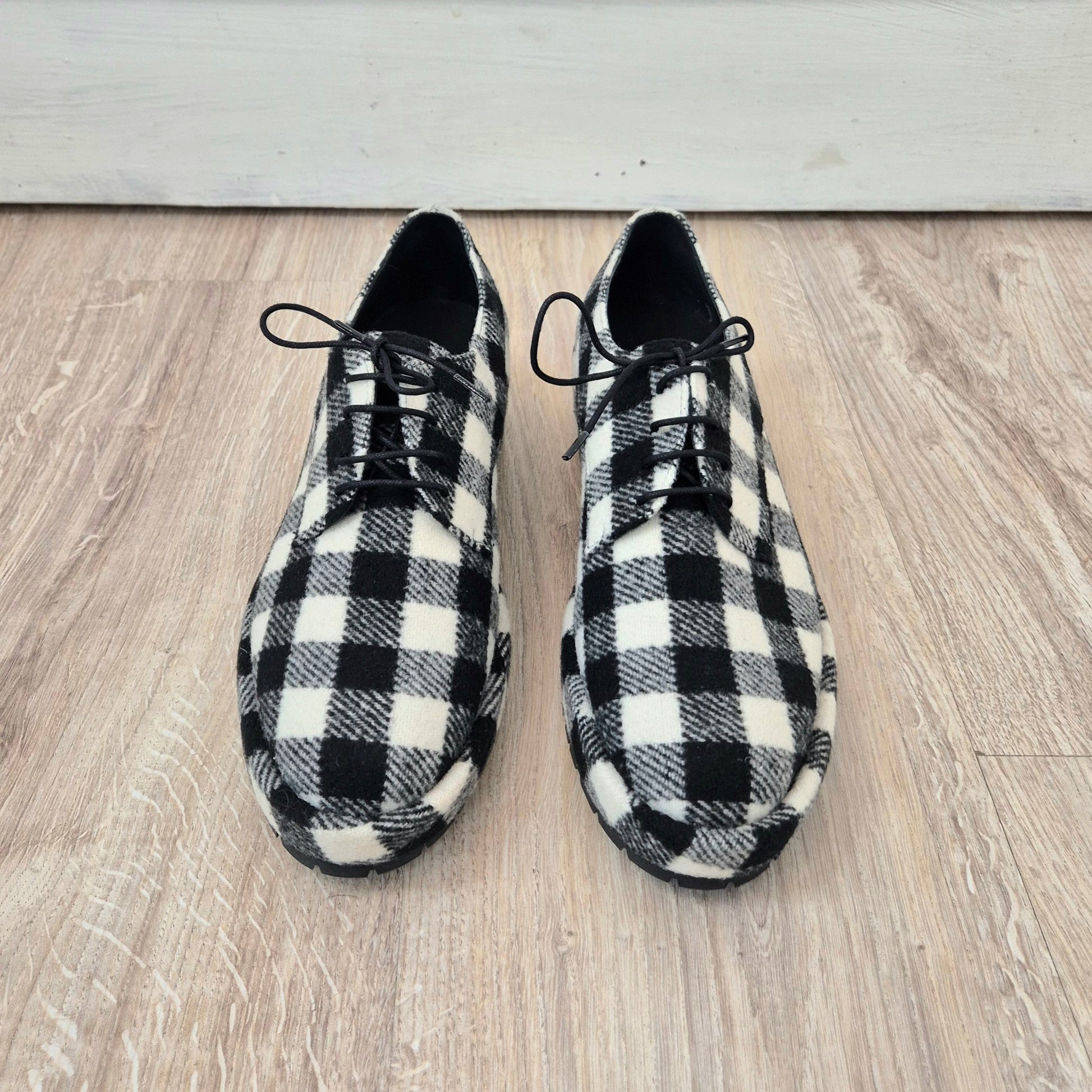CASTANER scarpe derby in lana con stringhe sottili, fantasia a quadretti sui toni del bianco e del nero.