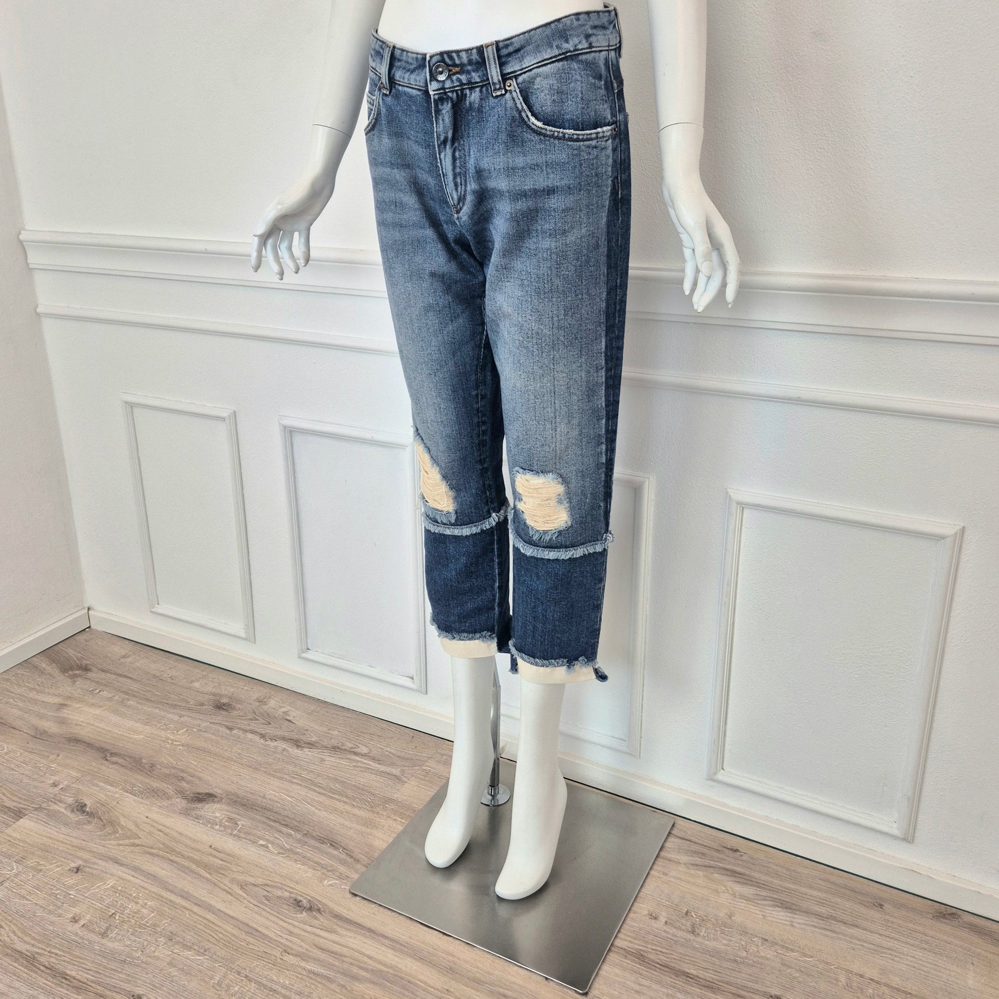 DOLCE & GABBANA jeans boyfriend non elasticizzati dalla lunghezza alla caviglia. Vita bassa chiusa da zip e bottone.