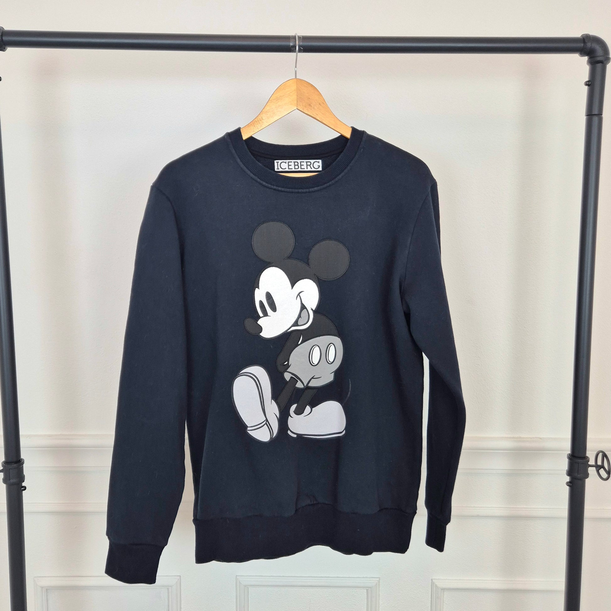 ICEBERG felpa in puro cotone nero, edizione limitata di Iceberg con soggetto Topolino. Modello classico girocollo dal taglio dritto sul busto.