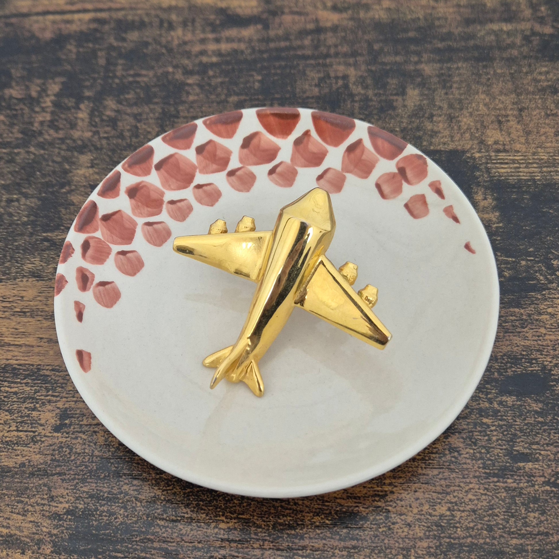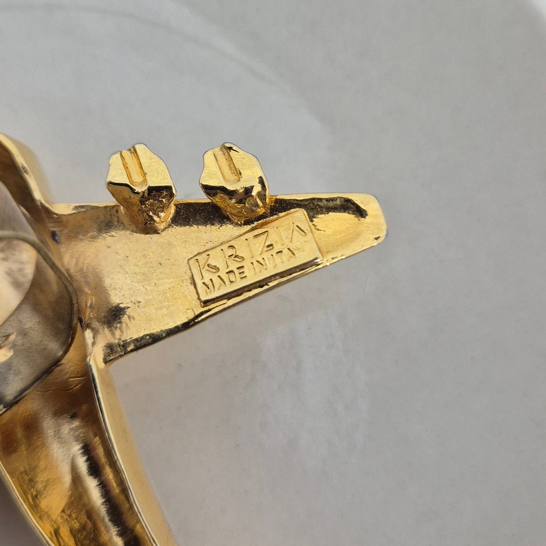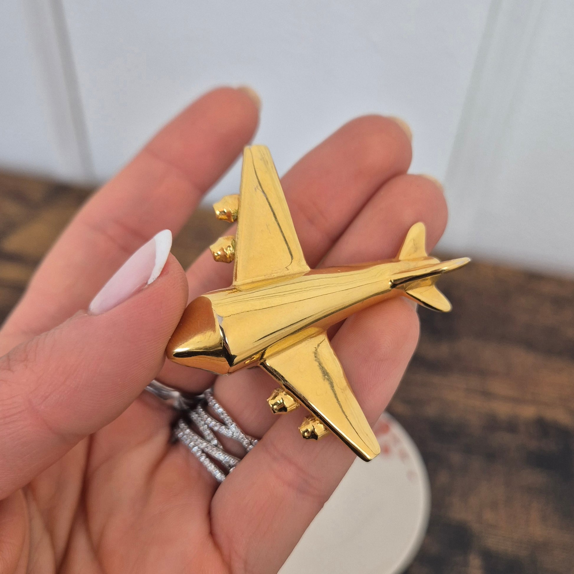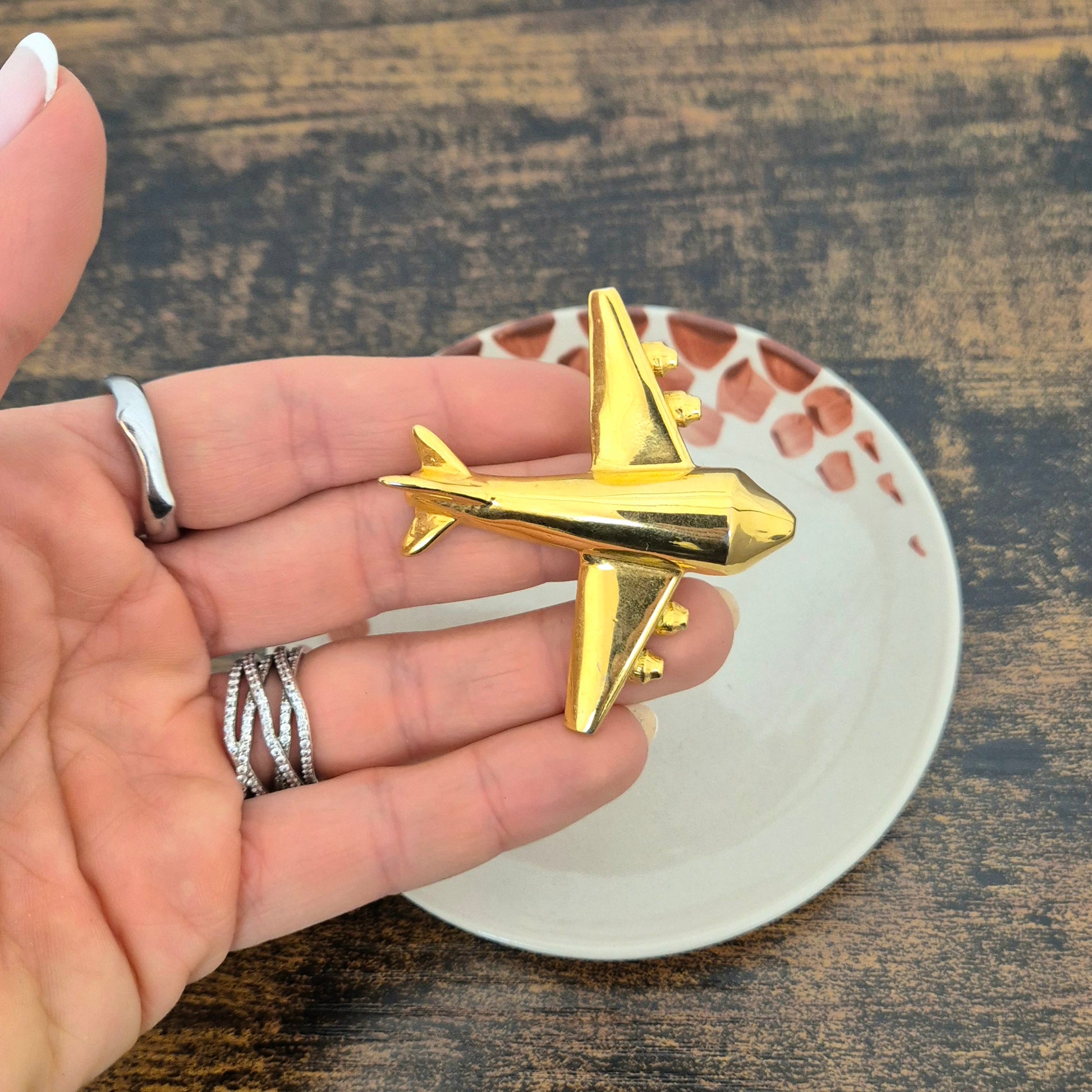 KRIZIA iconico maxi anello vintage in metallo dorato, raffigurante un grande aeroplano, caro all’immaginario di Maria (Mariuccia!) Mandelli.