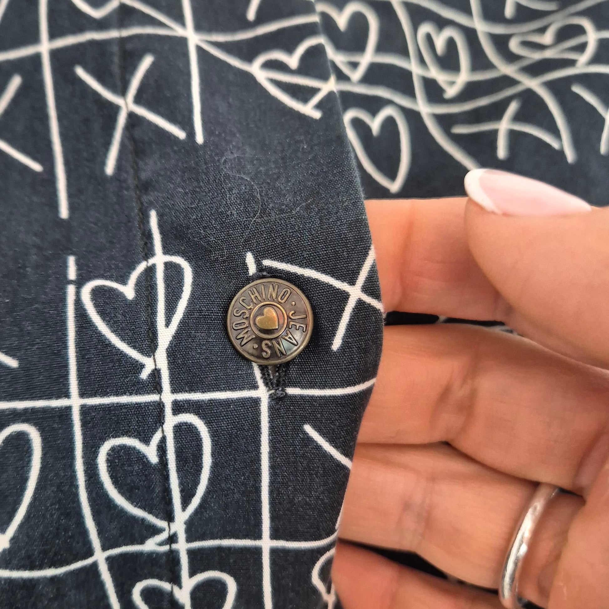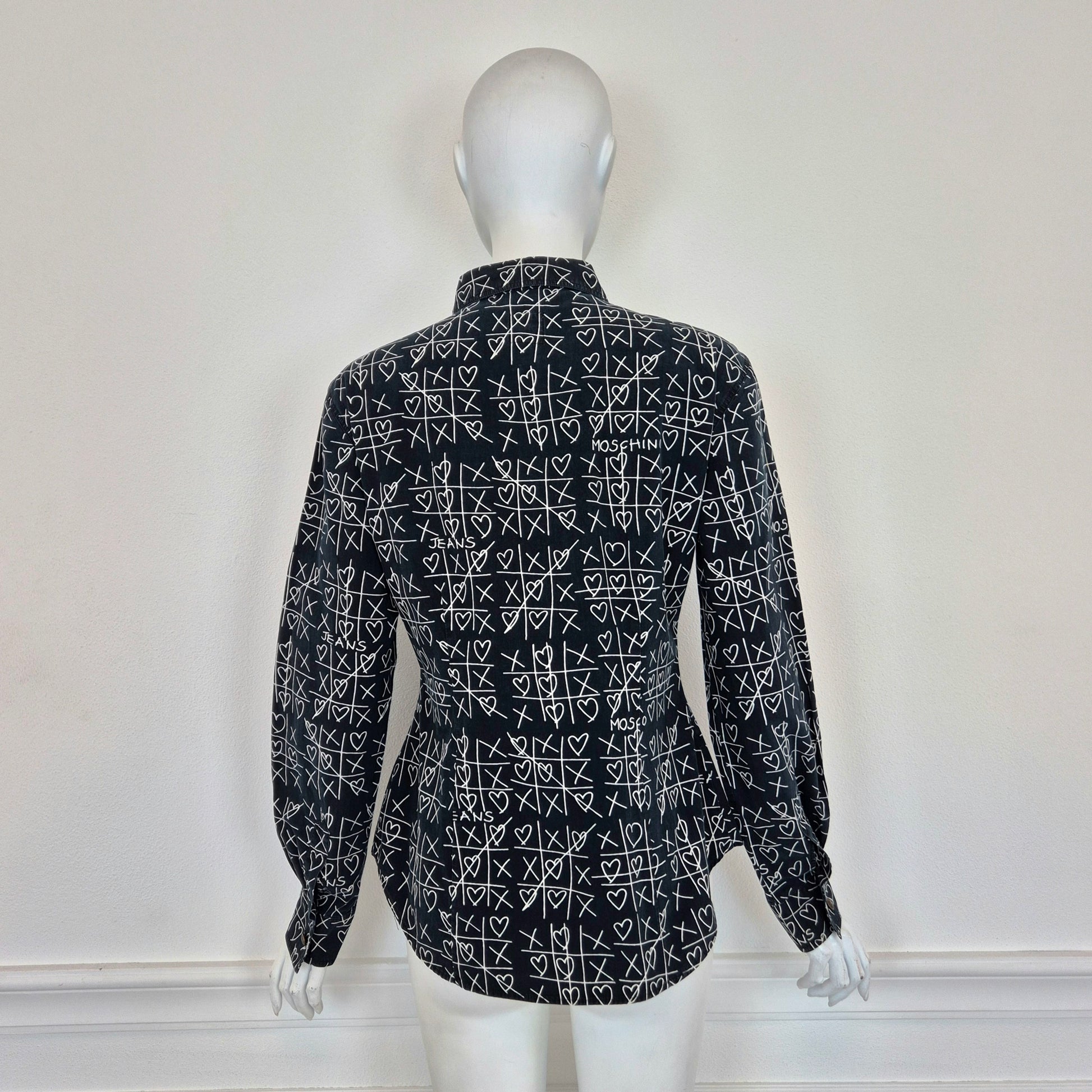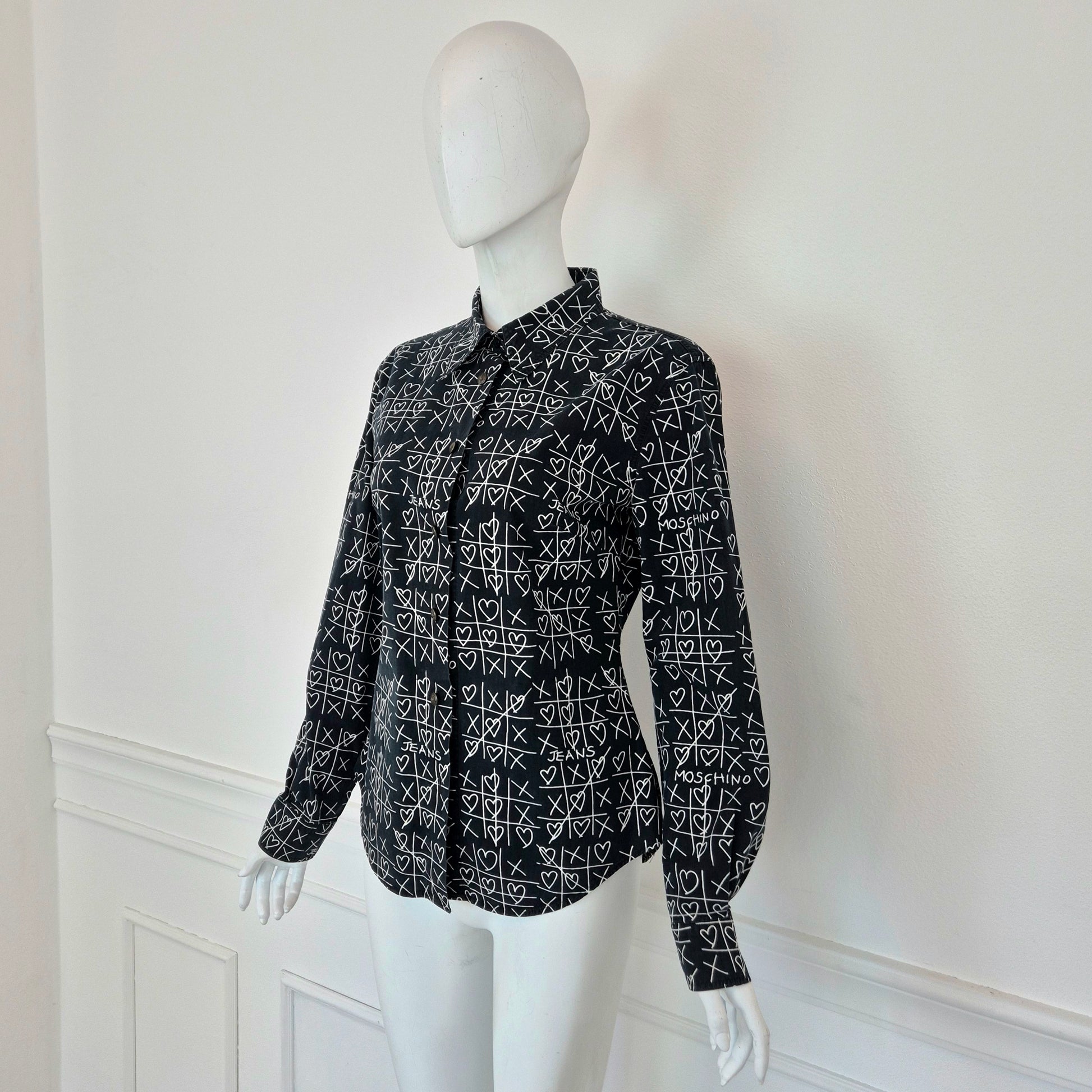 MOSCHINO camicia vintage anni '90 (linea jeans) in puro cotone, nera divertente stampa a tema gioco del "tris".