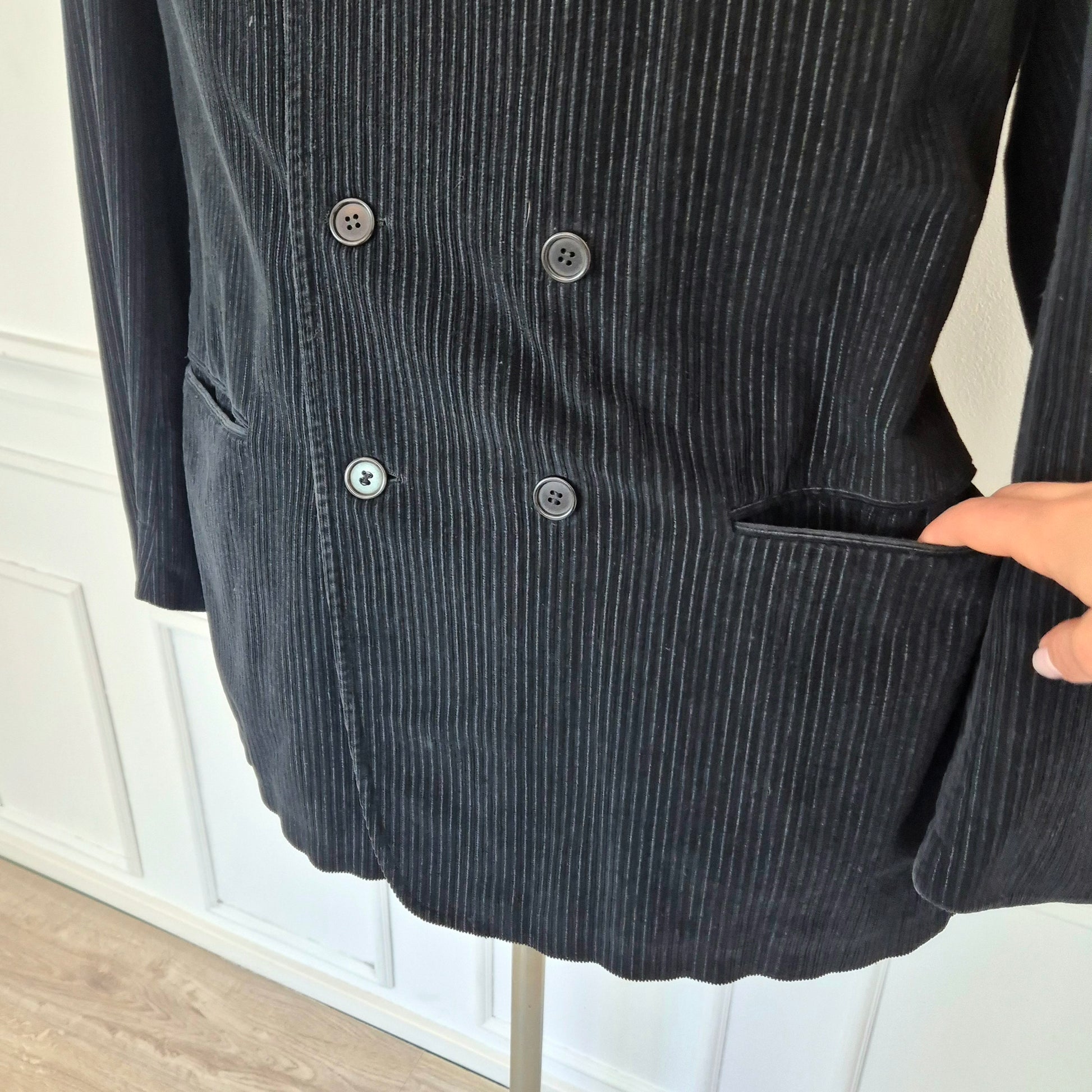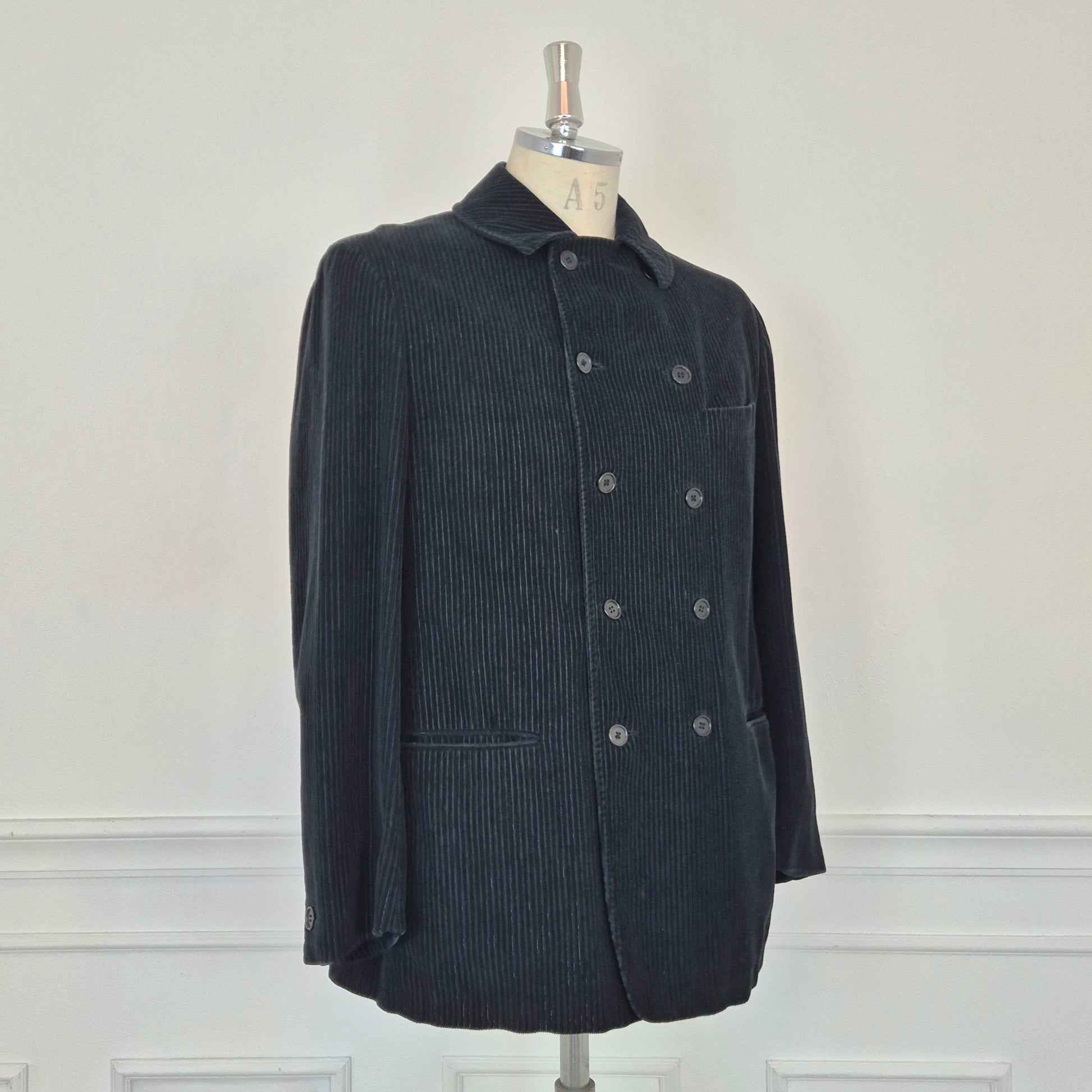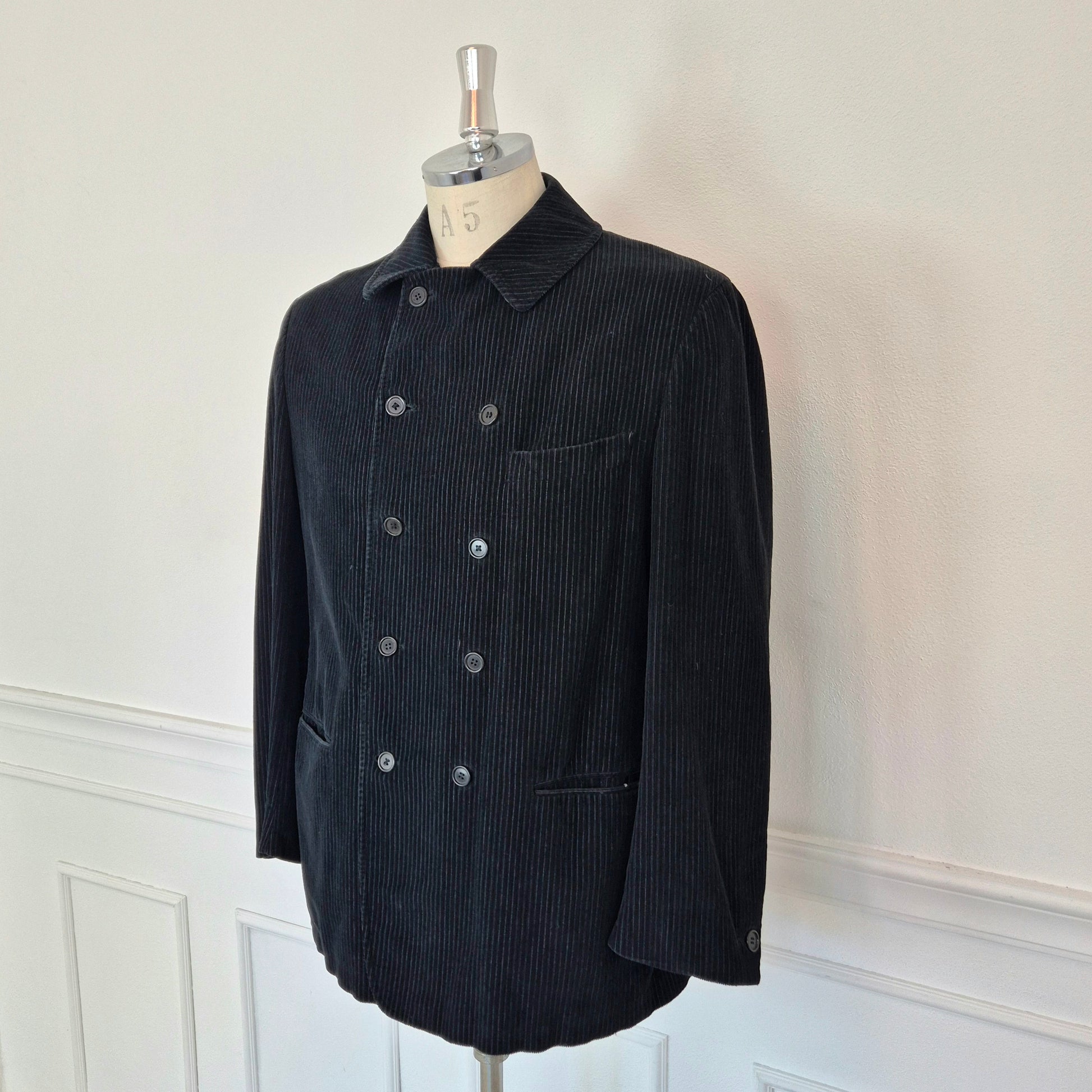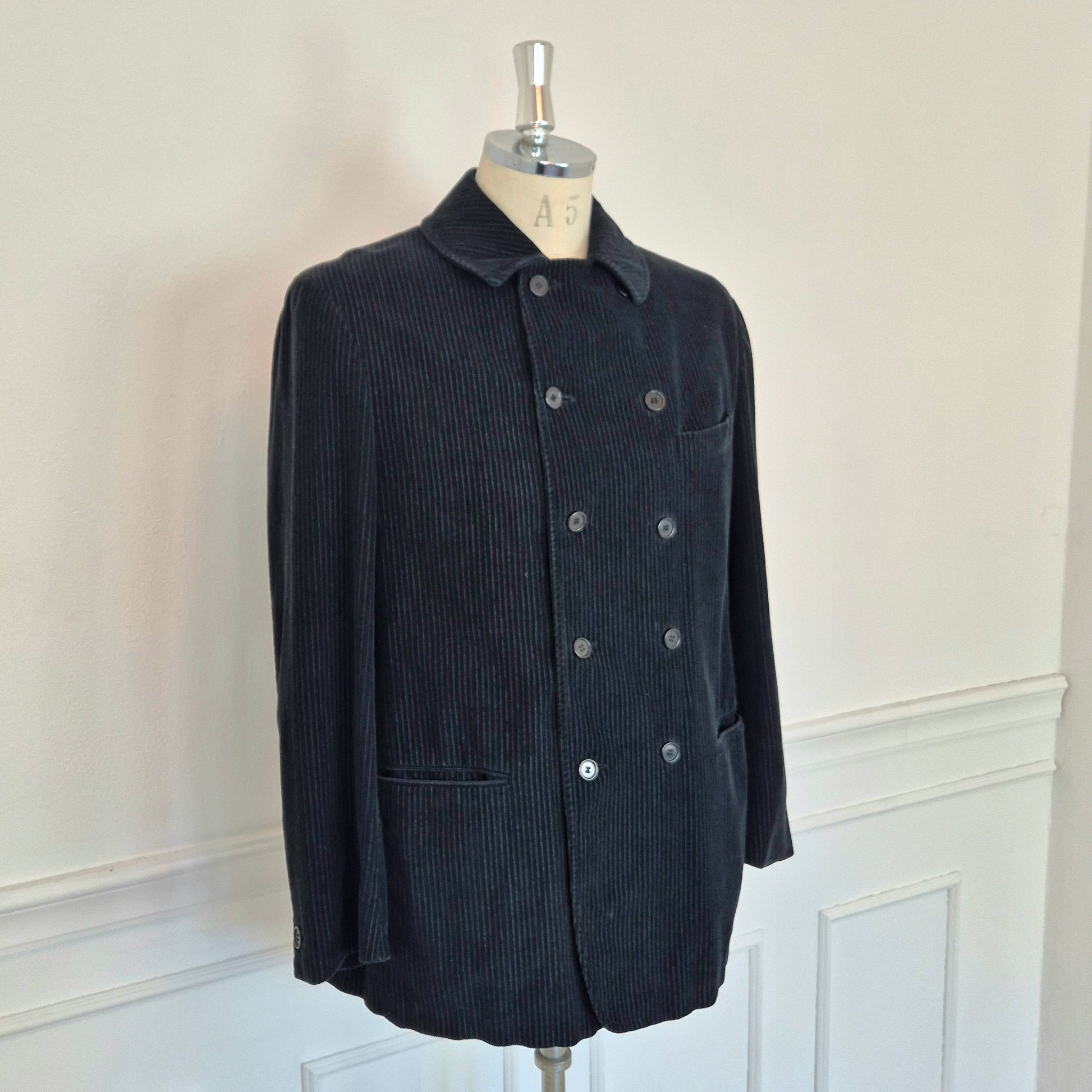 ROMEO GIGLI giacca vintage anni '90 da uomo, doppiopetto, in velluto a coste color nero.
