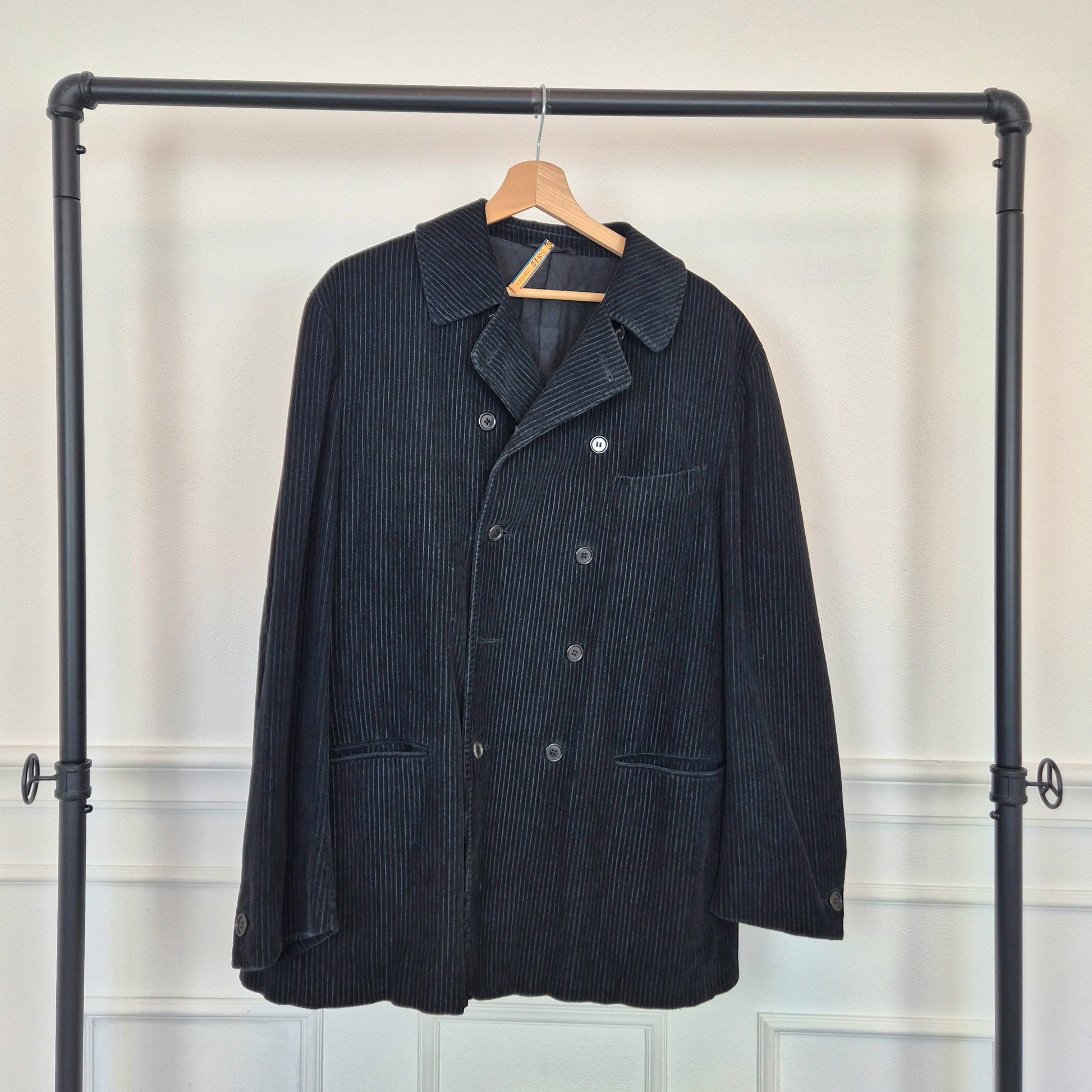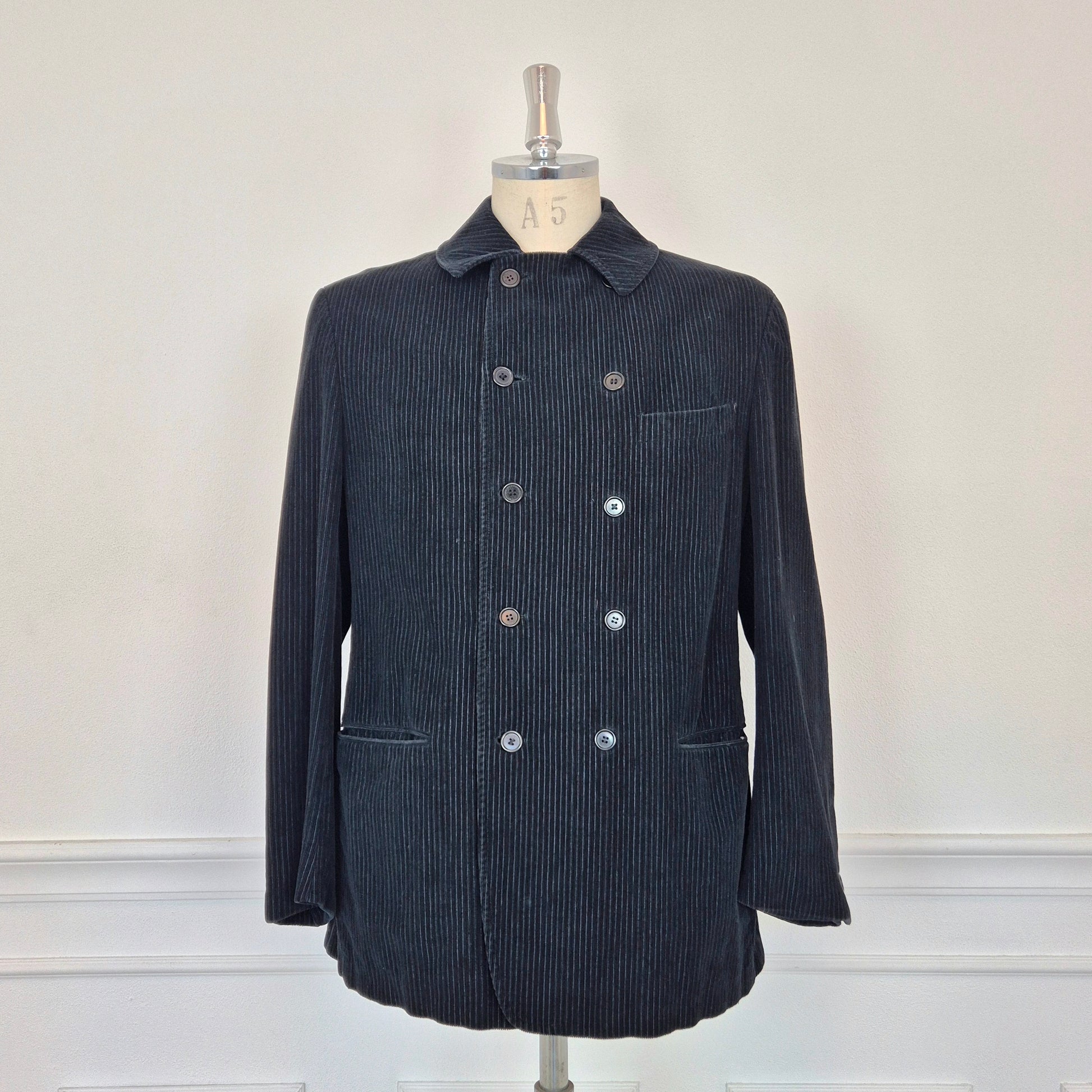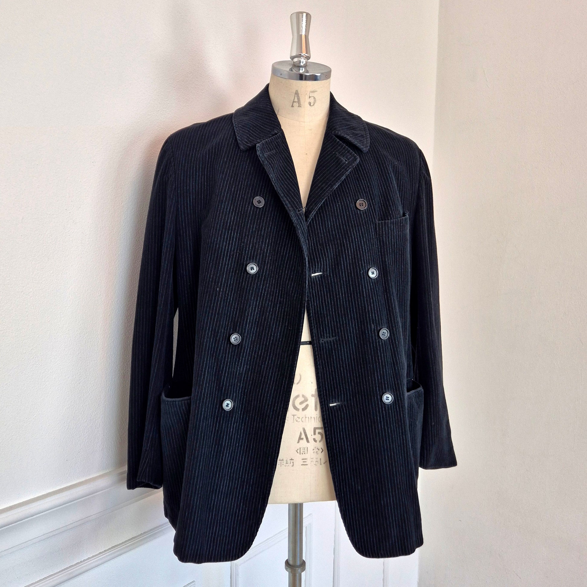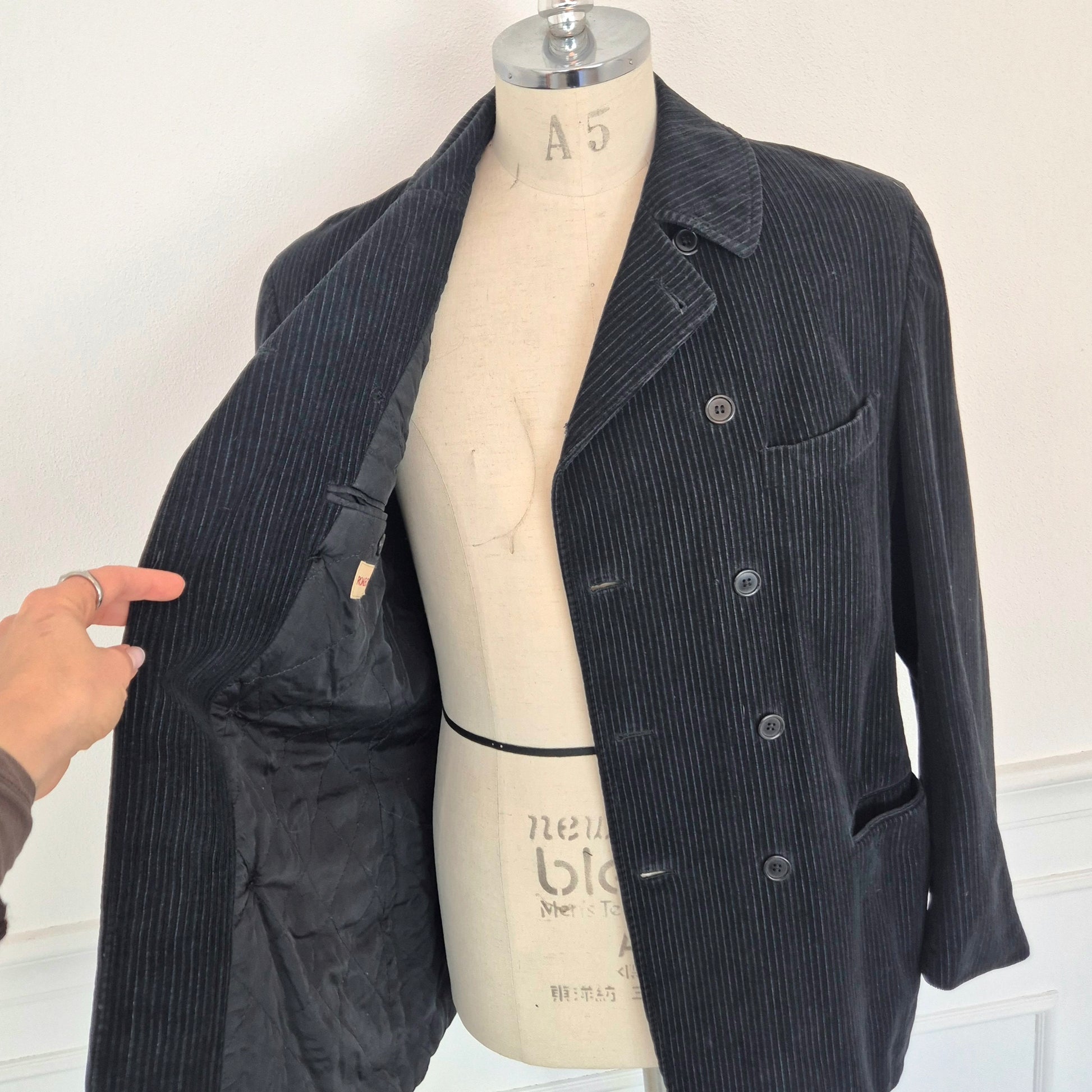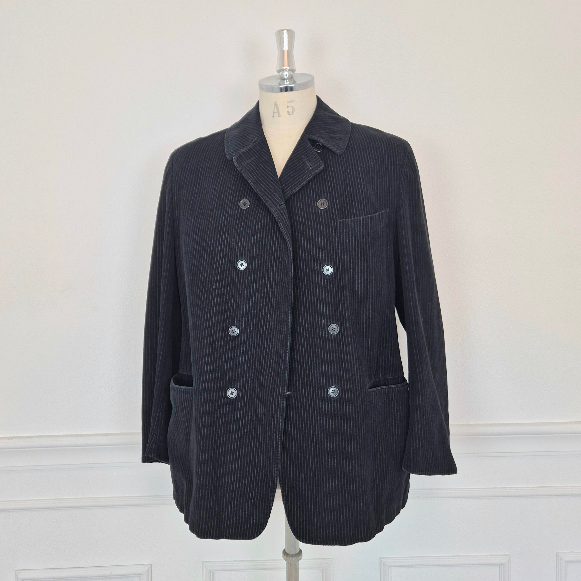 ROMEO GIGLI giacca vintage anni '90 da uomo, doppiopetto, in velluto a coste color nero.