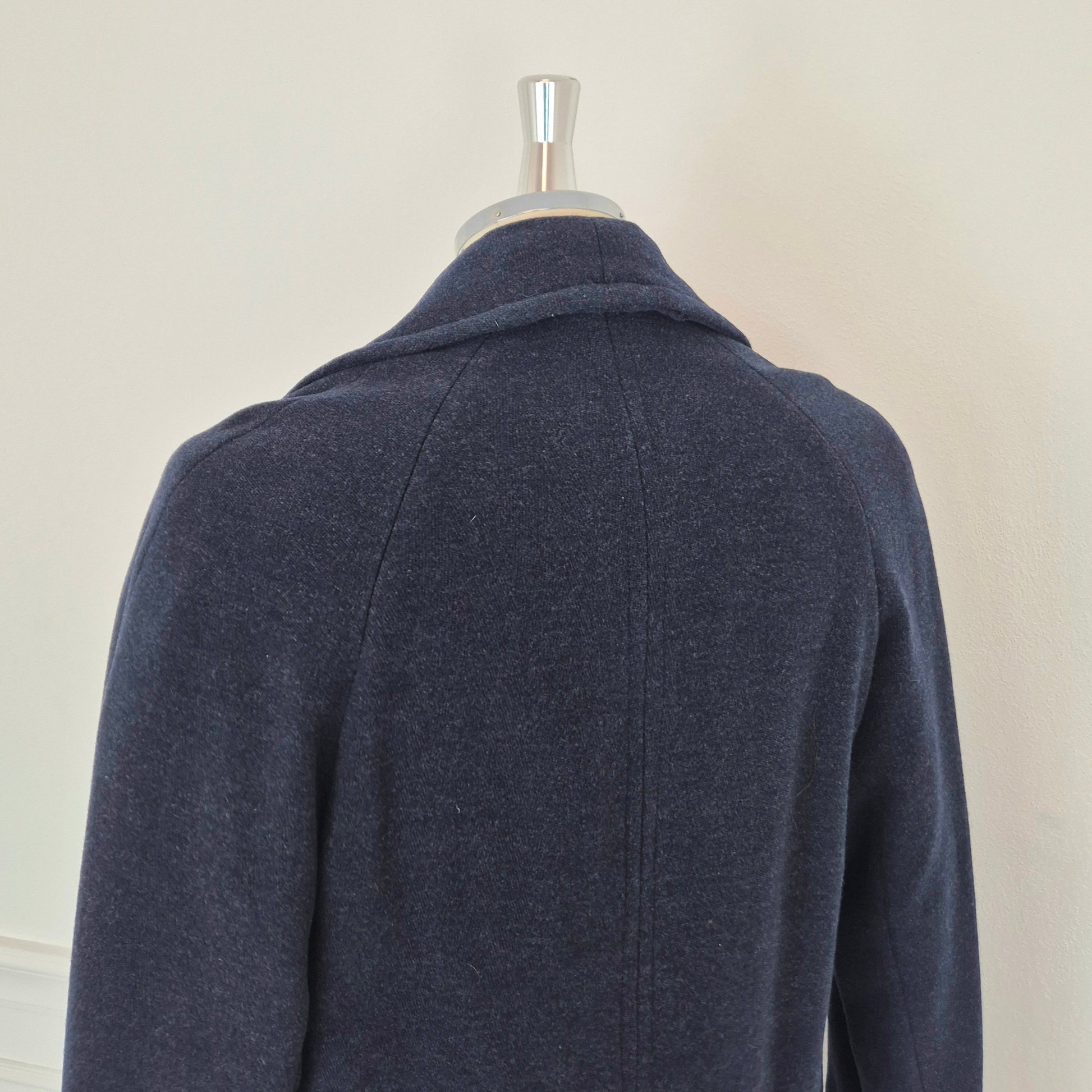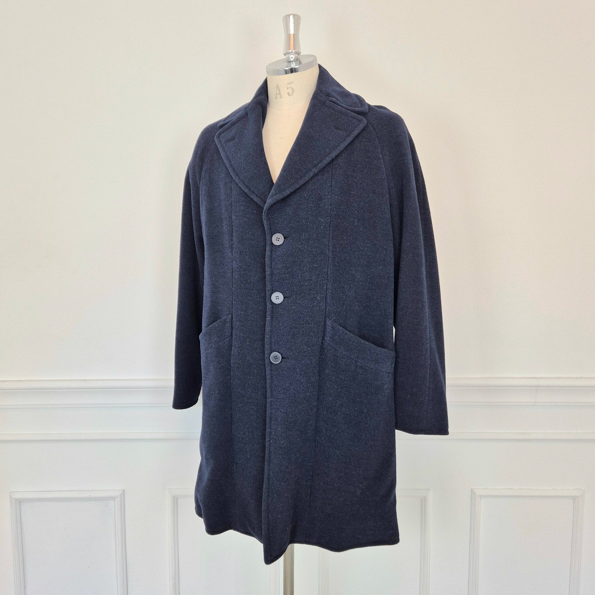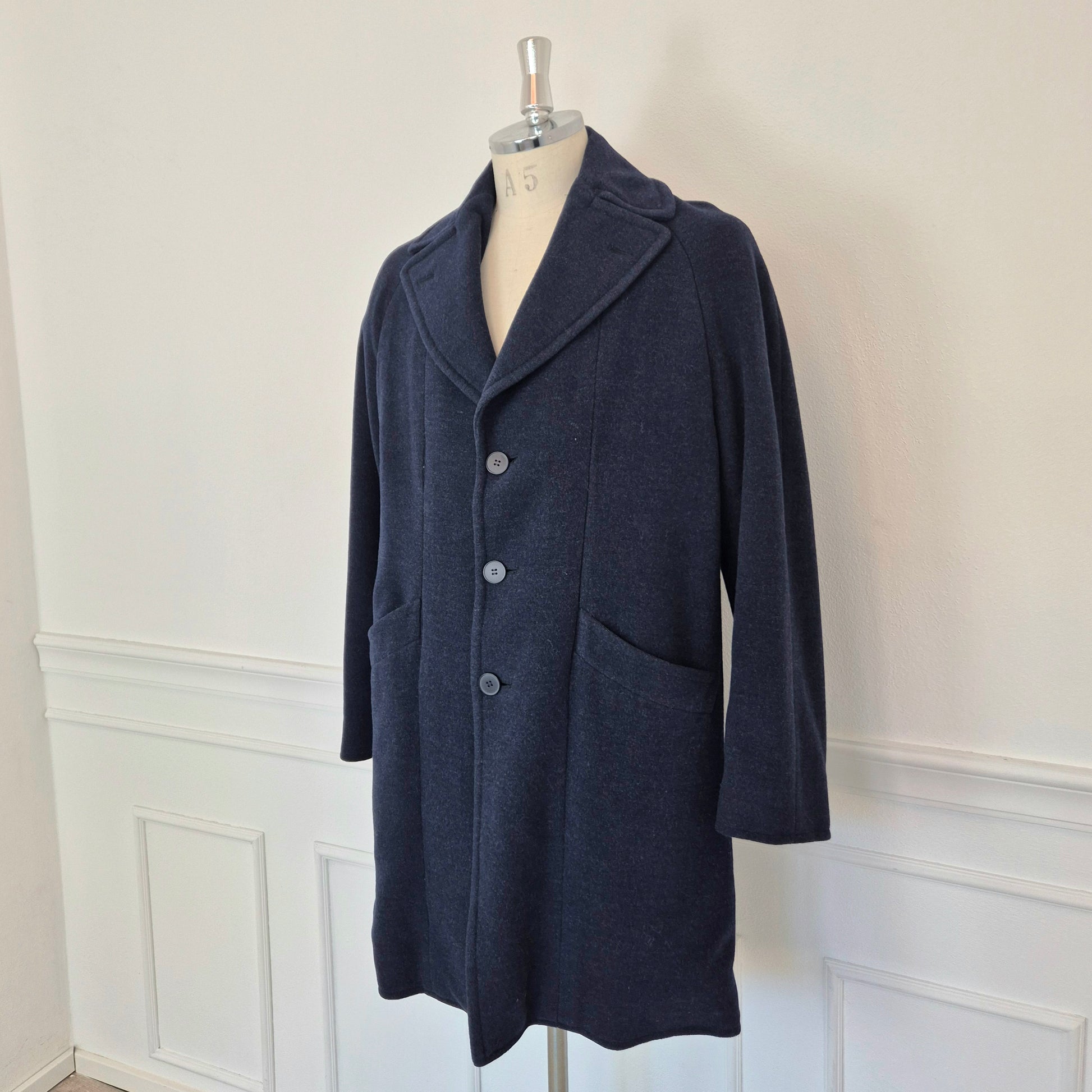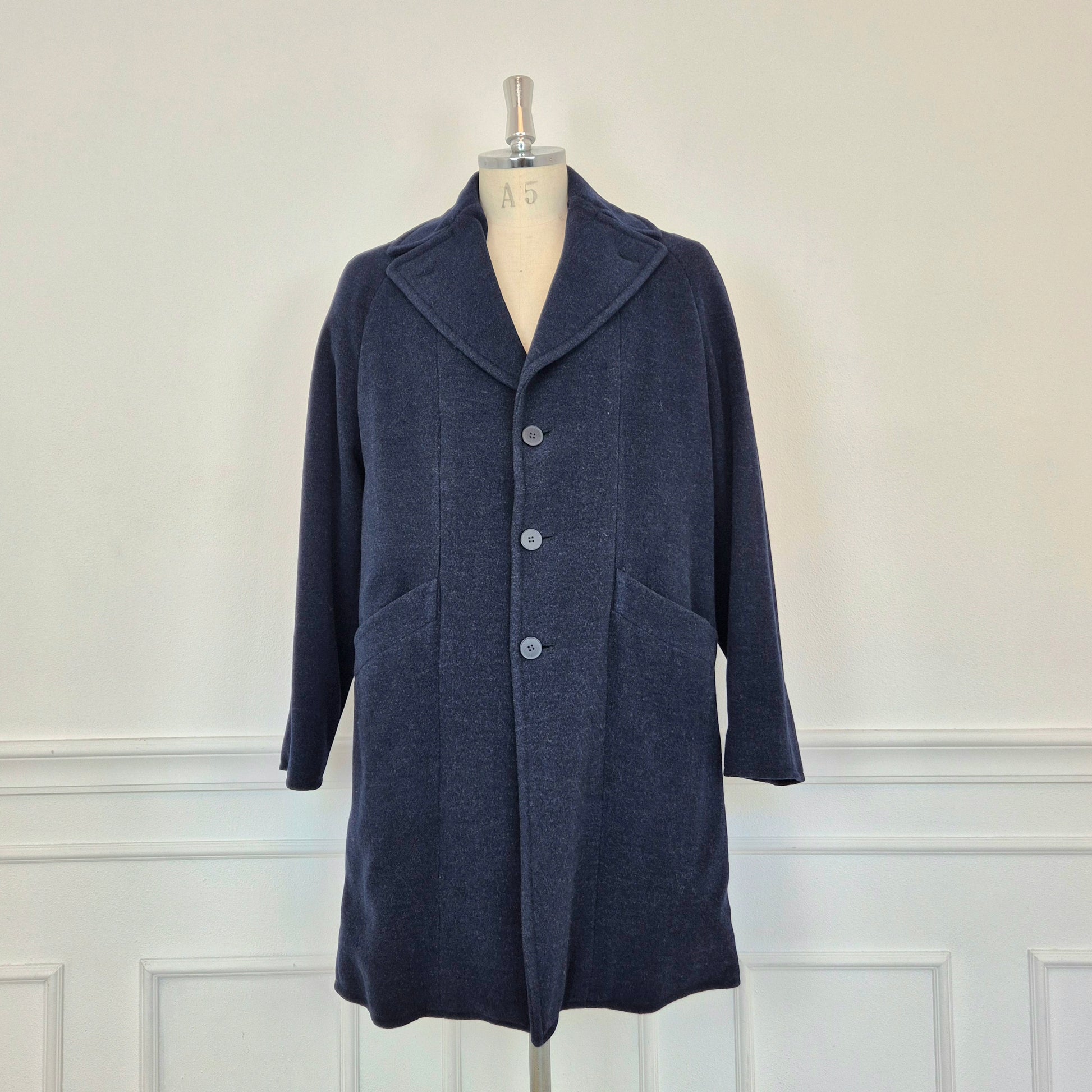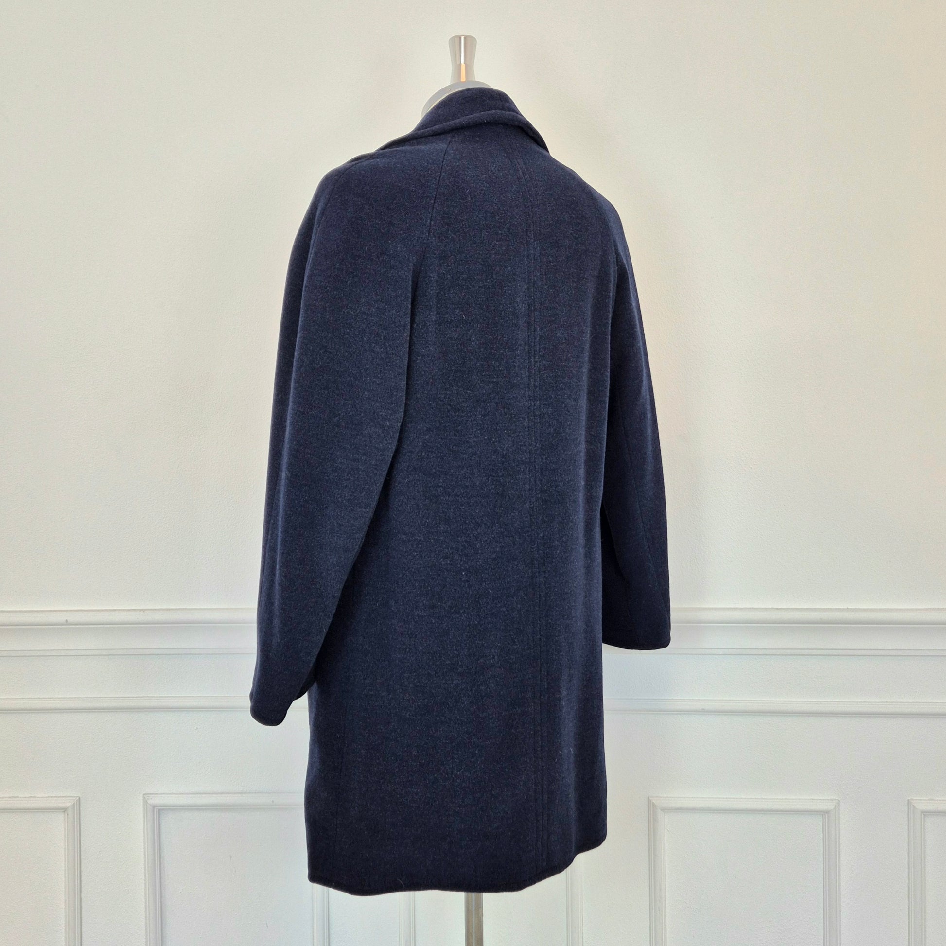 ROMEO GIGLI cappotto da uomo vintage anni '90 in pura lana color blu, con abbottonatura monopetto e tasche frontali.