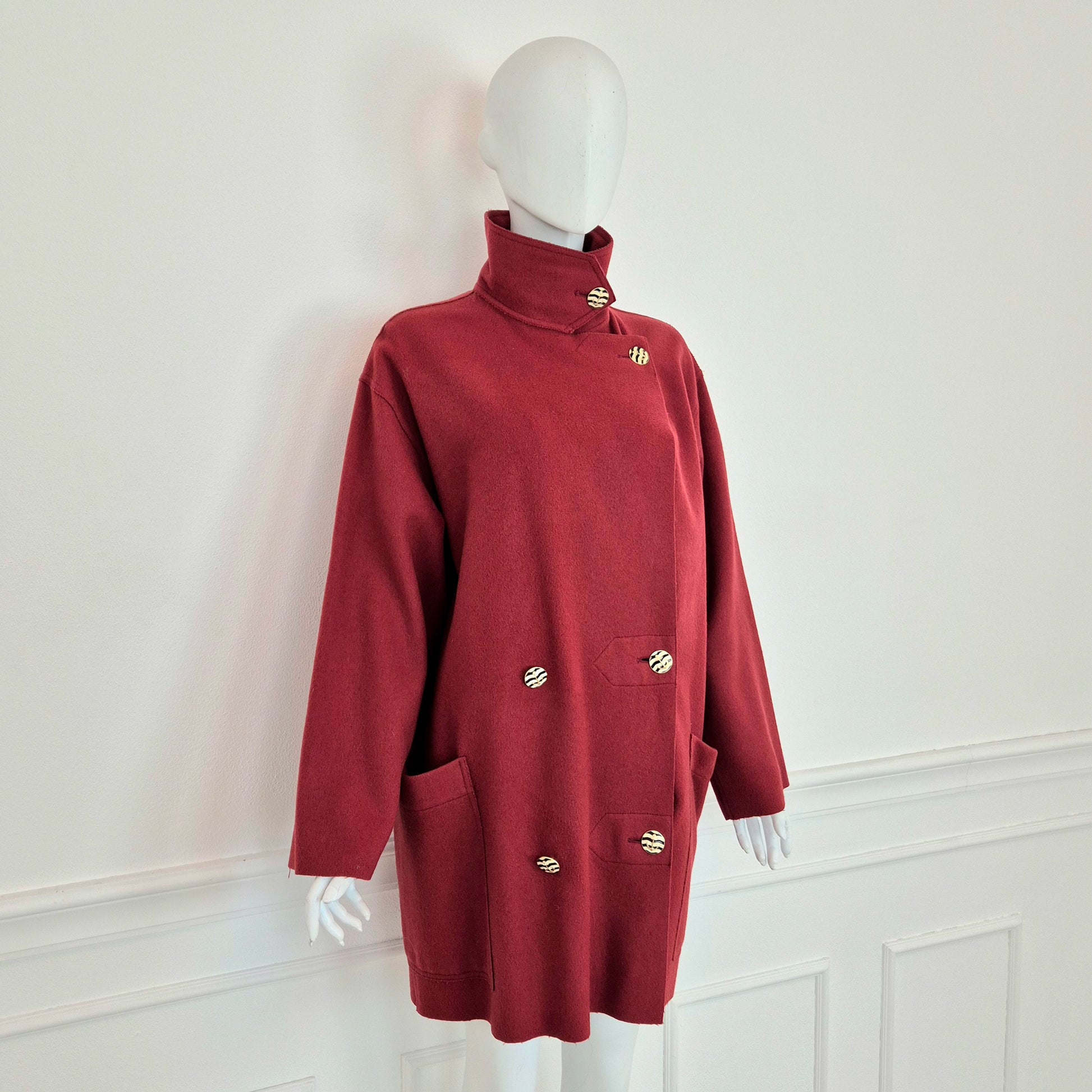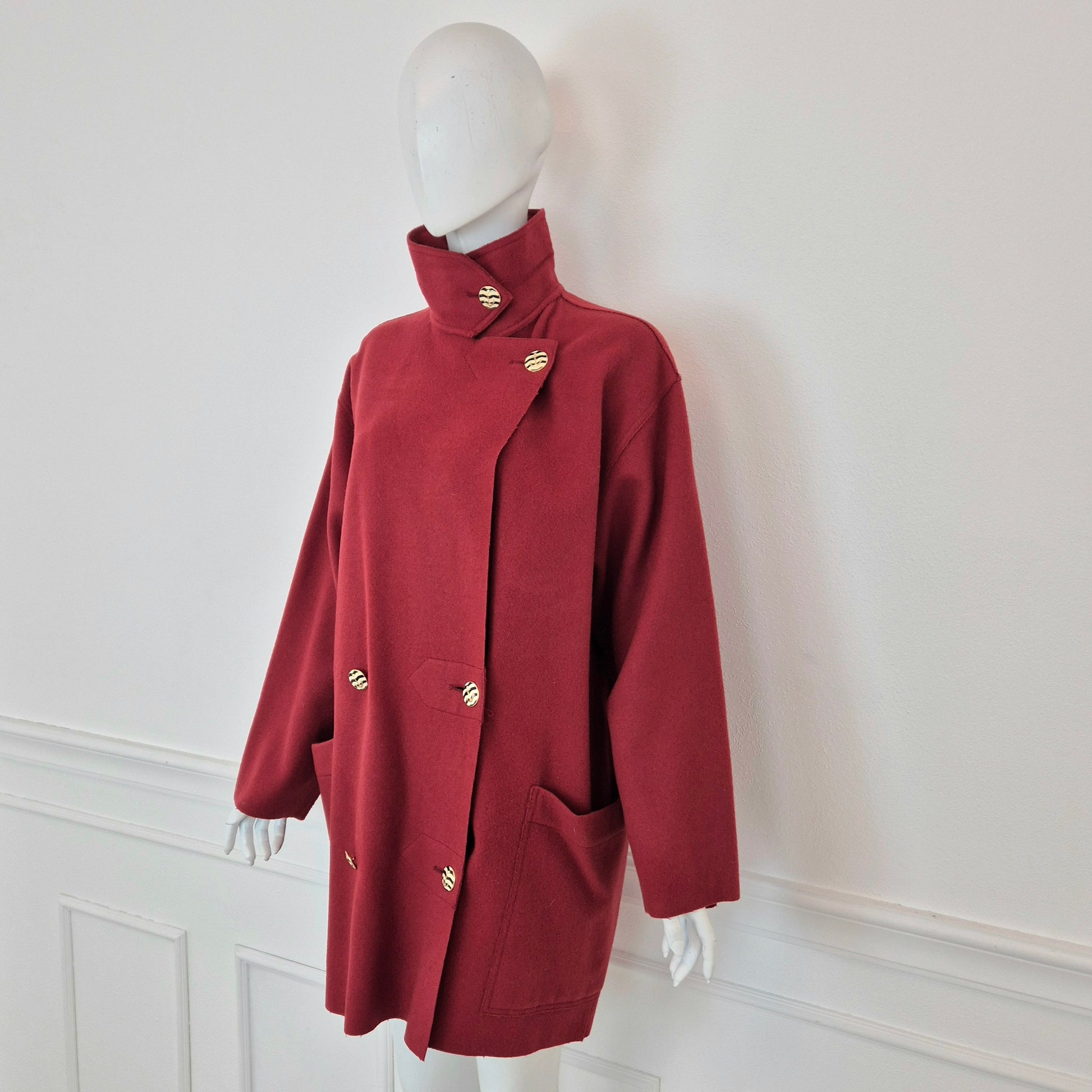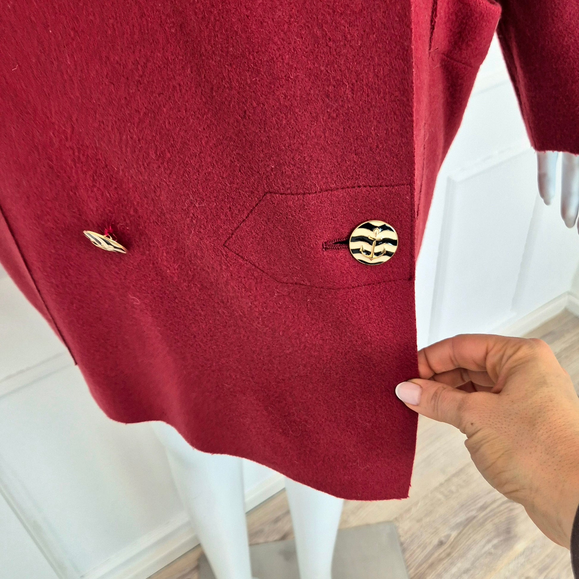 SPORTMAX cappottino vintage sfoderato color rosso scuro / borgogna con bellissimi bottoni in metallo dorato smaltato raffiguranti piccole ancore.