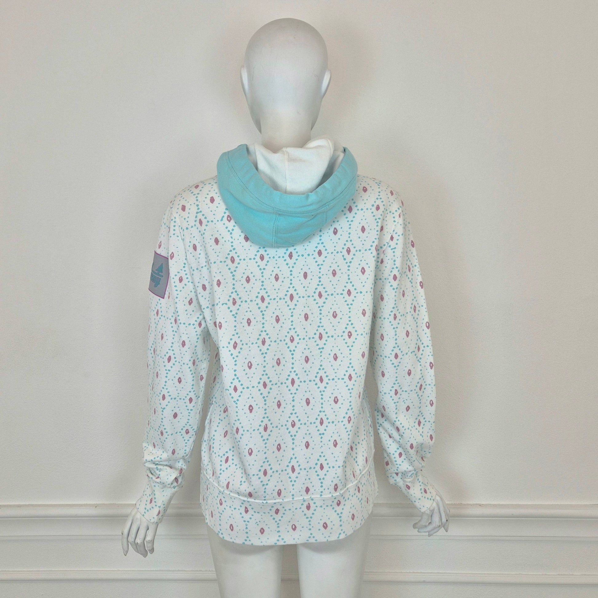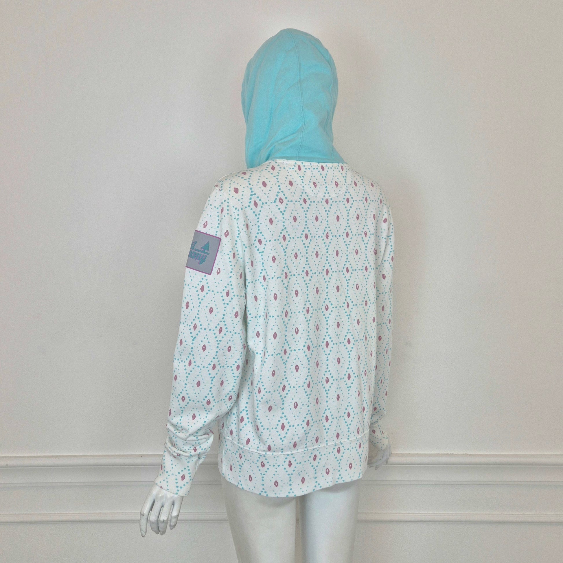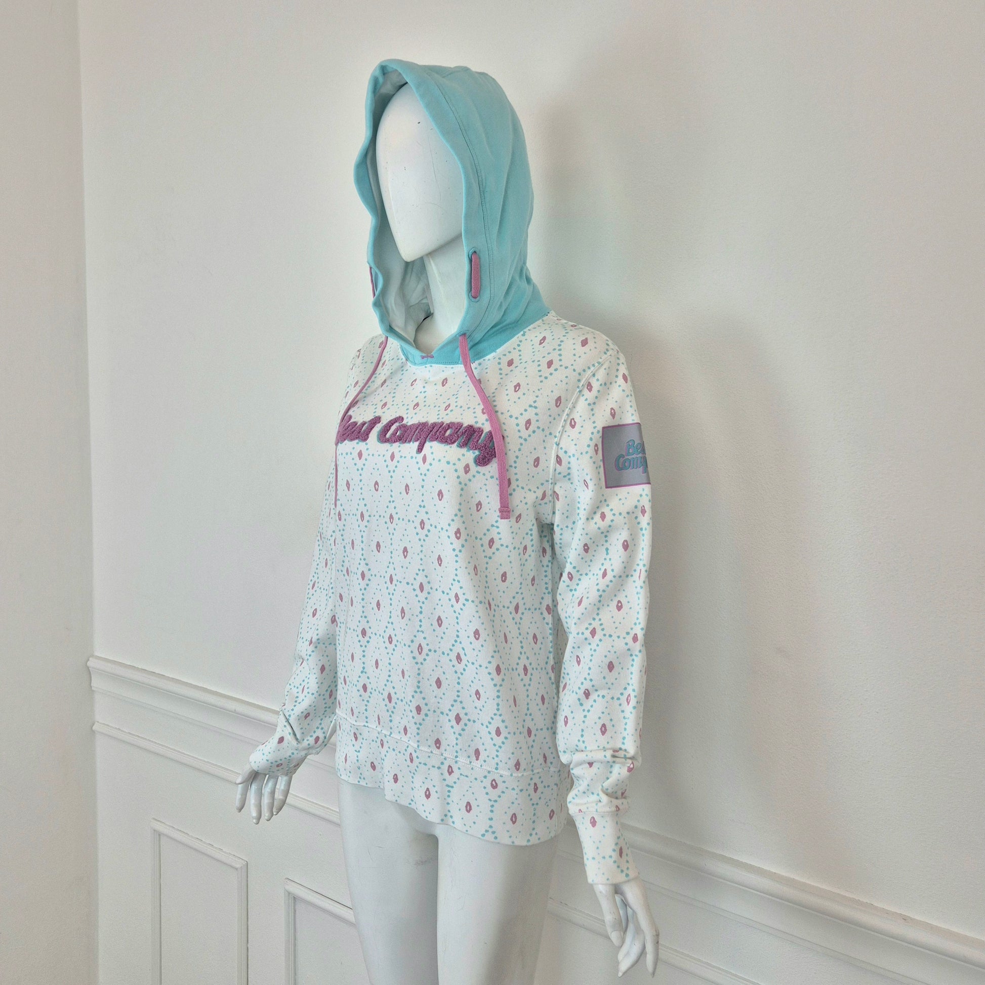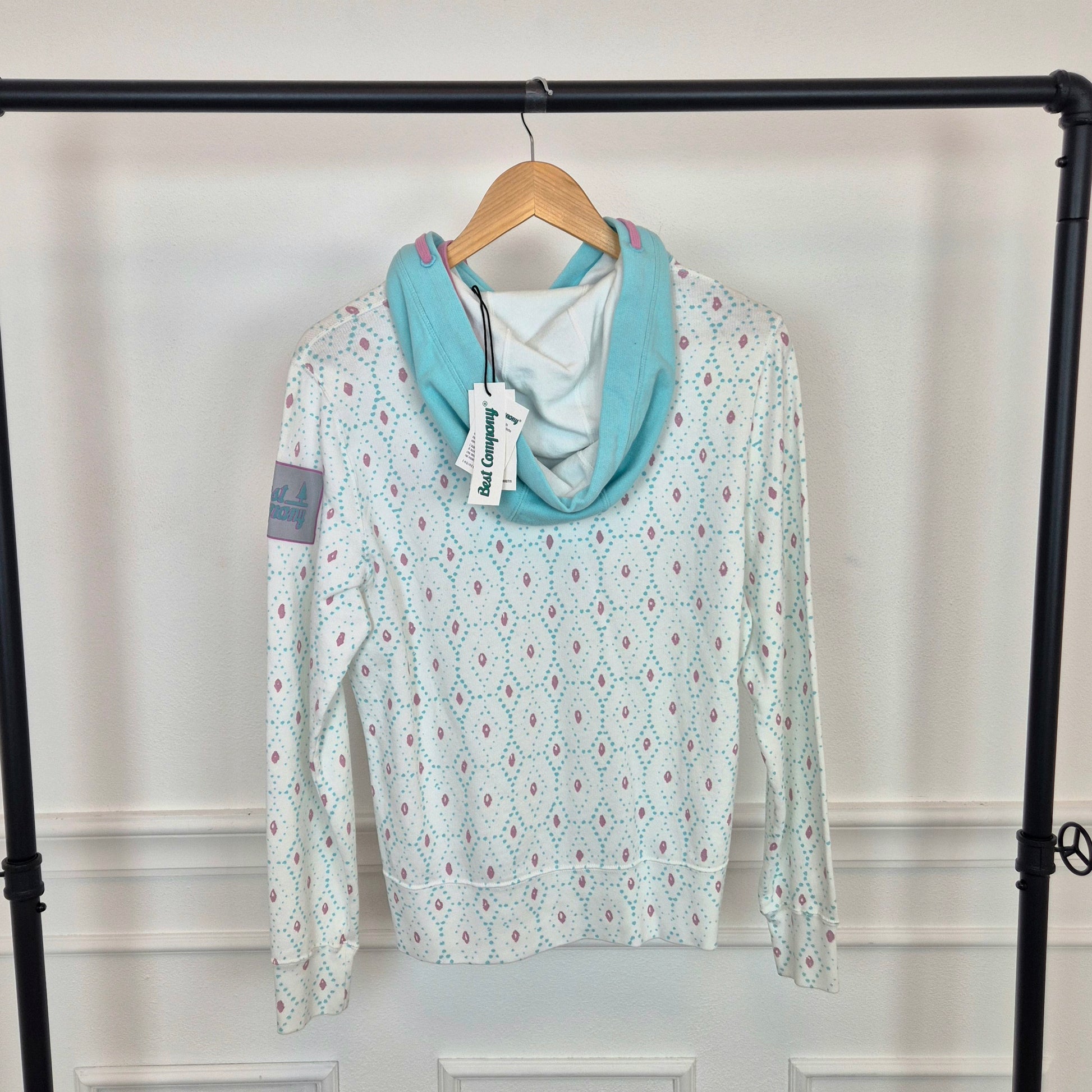 BEST COMPANY by Olmes Carretti - Felpa vintage ma nuova in puro cotone color bianco. con disegni sui toni dell'azzurro e del rosa, cappuccio e scritta in "spugna" sul torace.