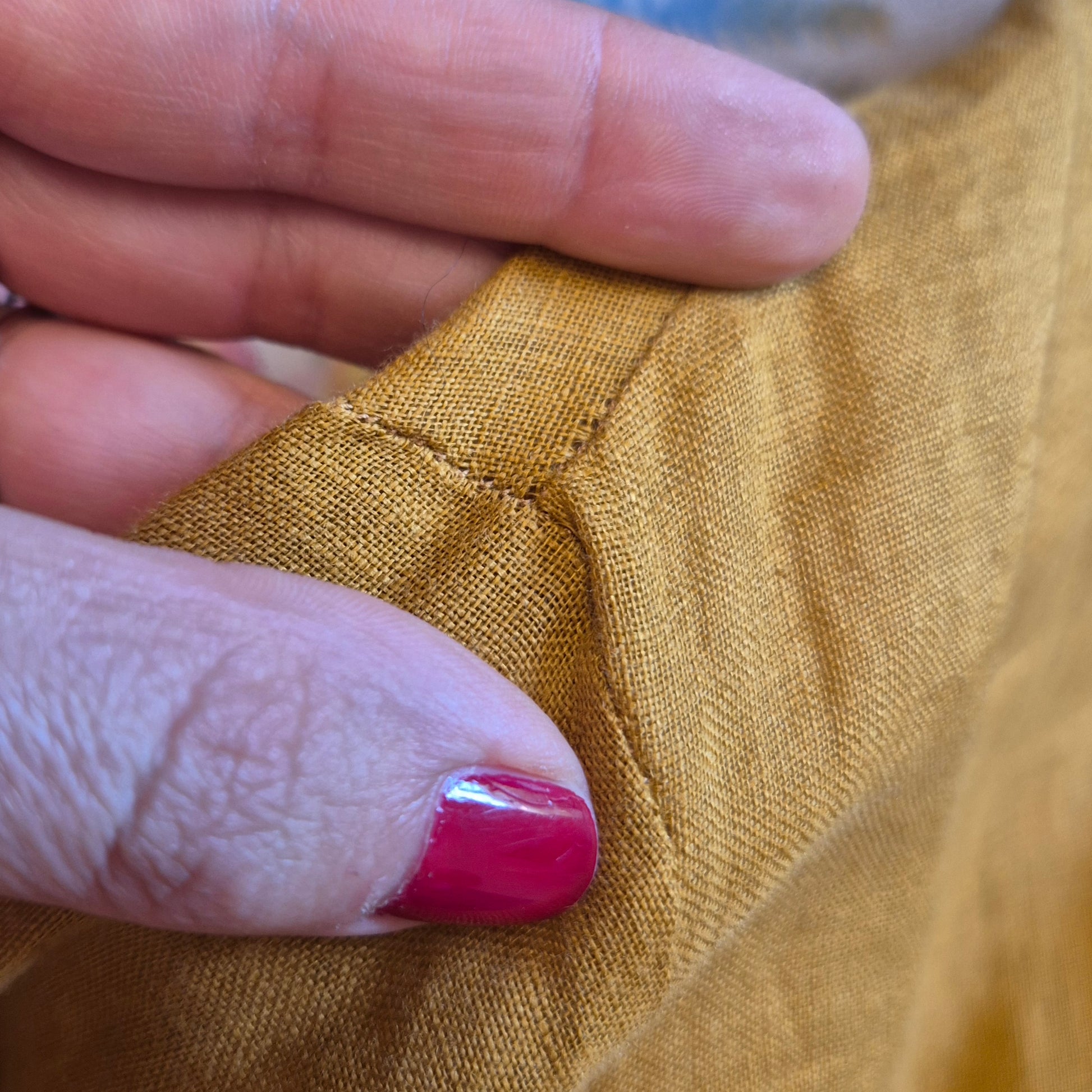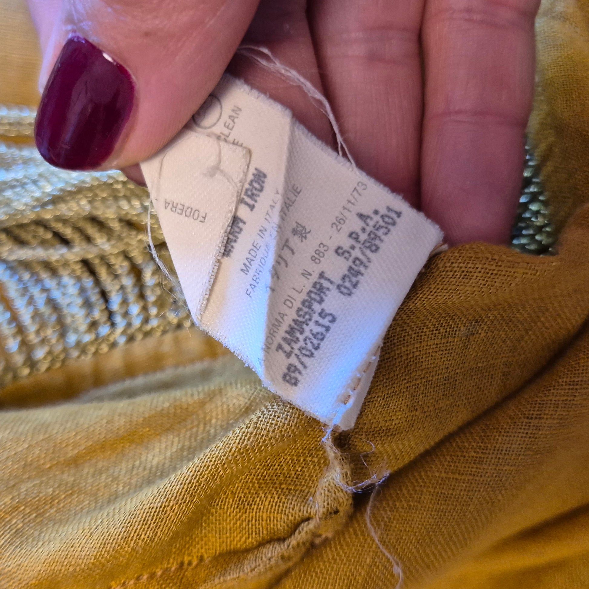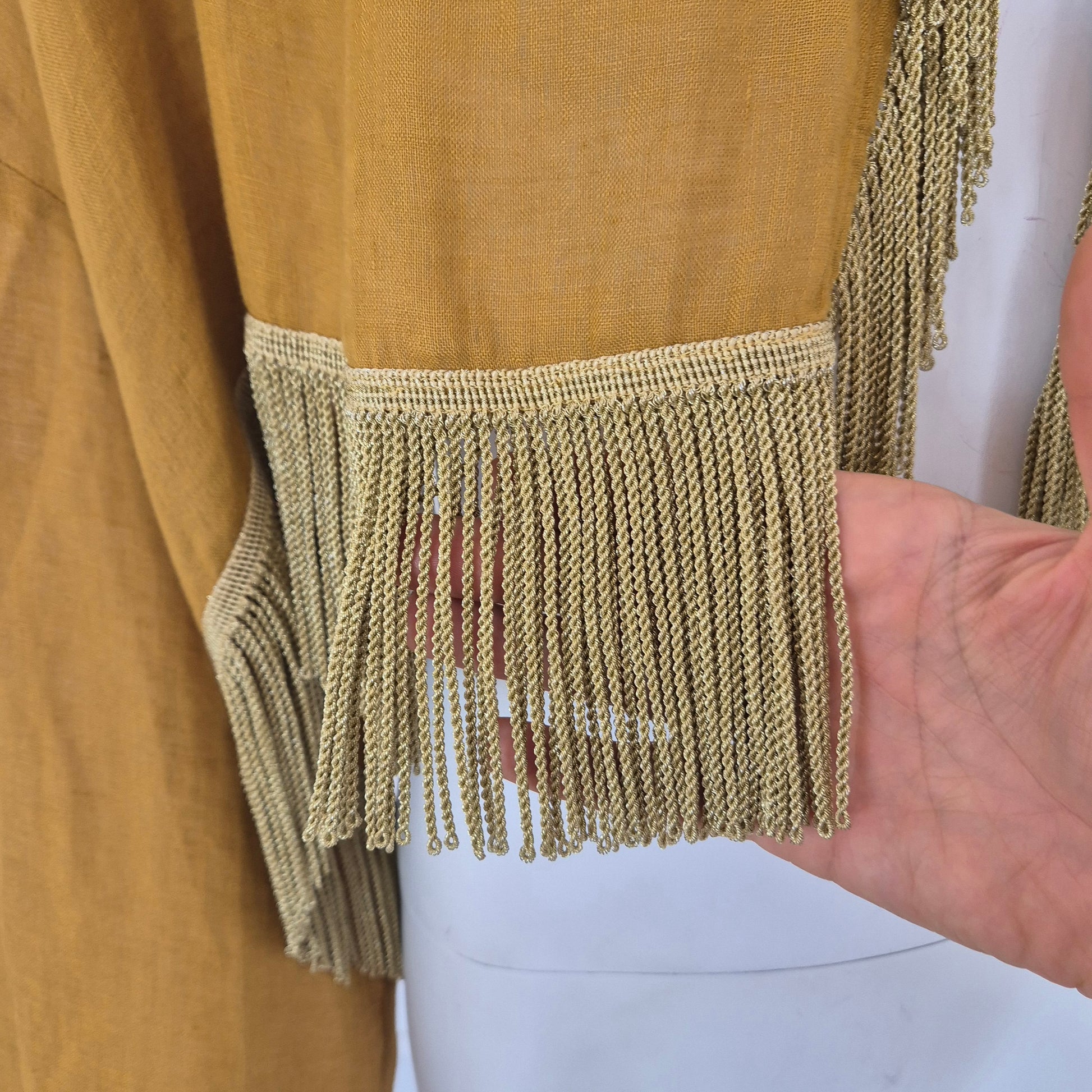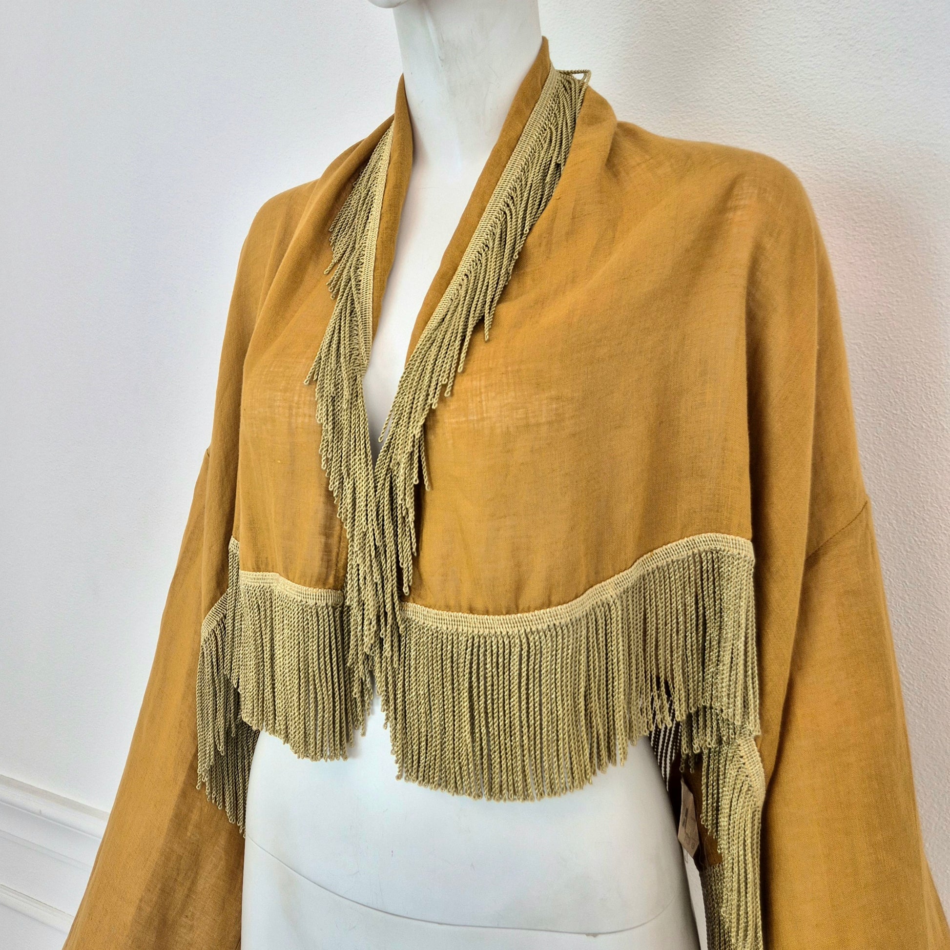 CALLAGHAN by ROMEO GIGLI (spring summer 1989) giacca corta vintage in lino color senape con applicazione di frange dorate.