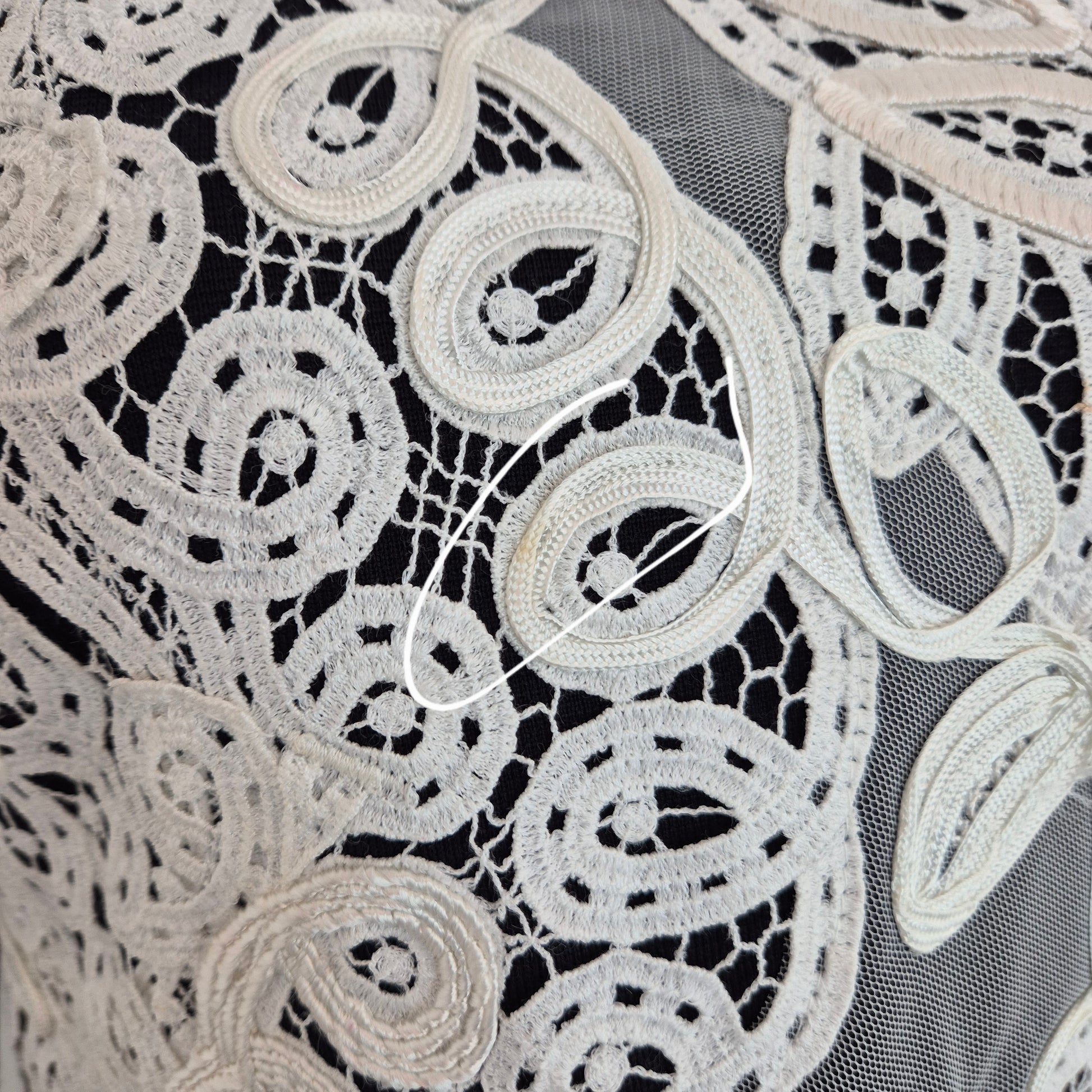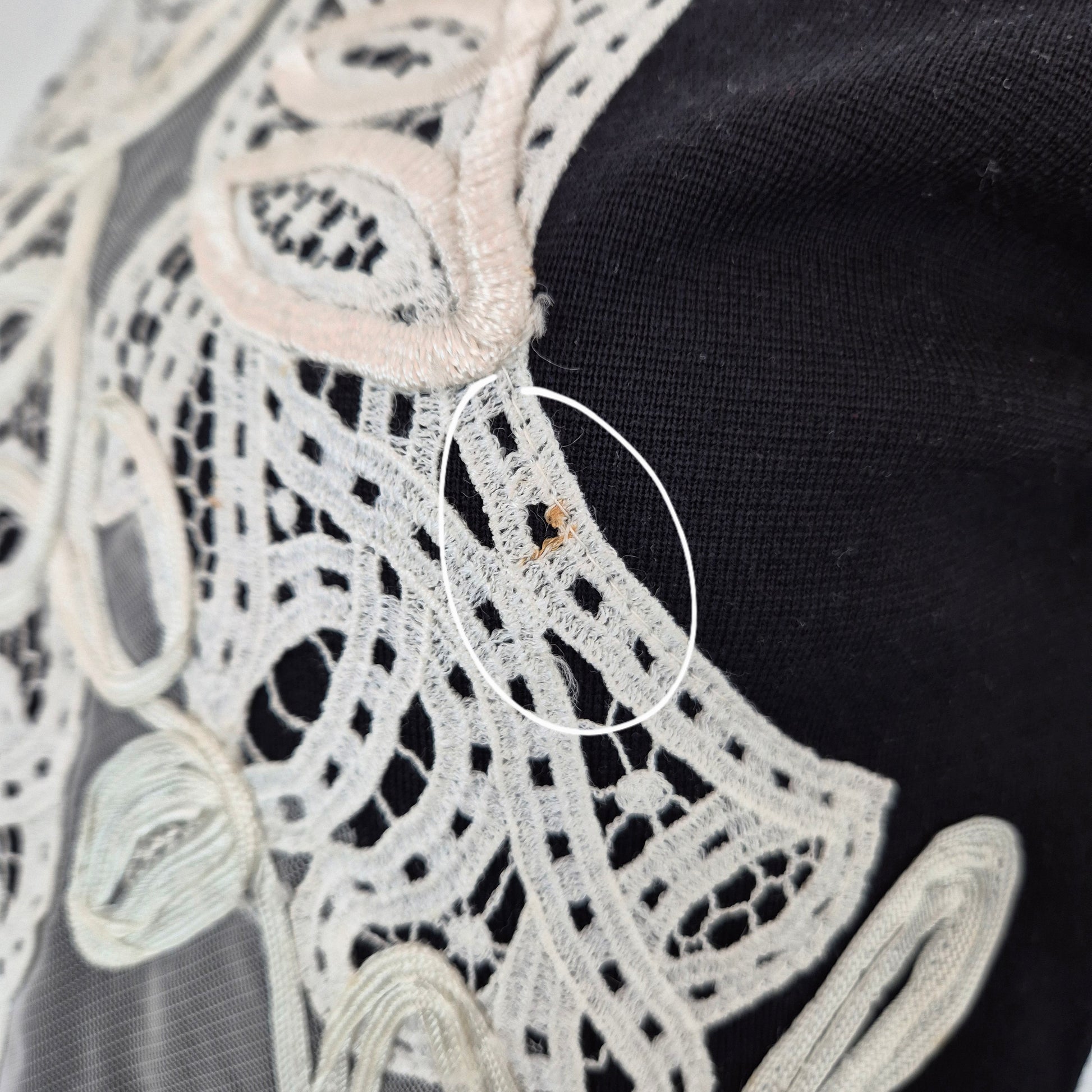 condizioni: 7/10 - Capo vintage da collezione, in buonissime condizioni generali. Segnalo un paio di normali piccoli segni del tempo, come mostrato in foto. una piccola parte del pizzo sul polso è stata rimossa perchè scurita e rovinata dal tempo: non crea problemi di sorta e non è evidente ma trovate tutto messo in evidenza nelle foto di dettaglio.