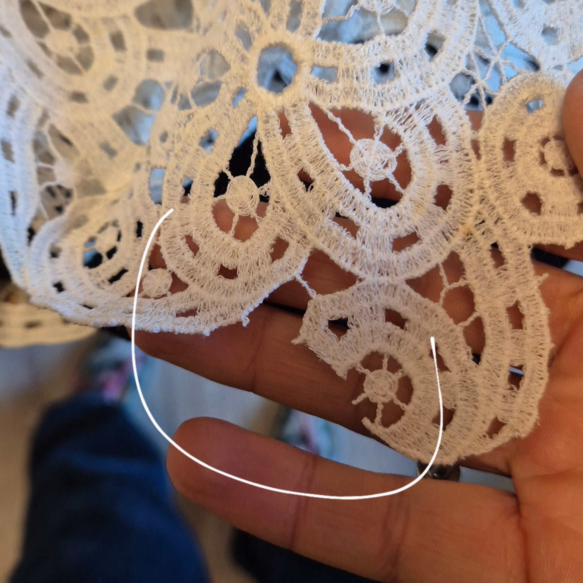 Lunghezza laterale dall'acella fondo 41 cm (pizzo compreso)