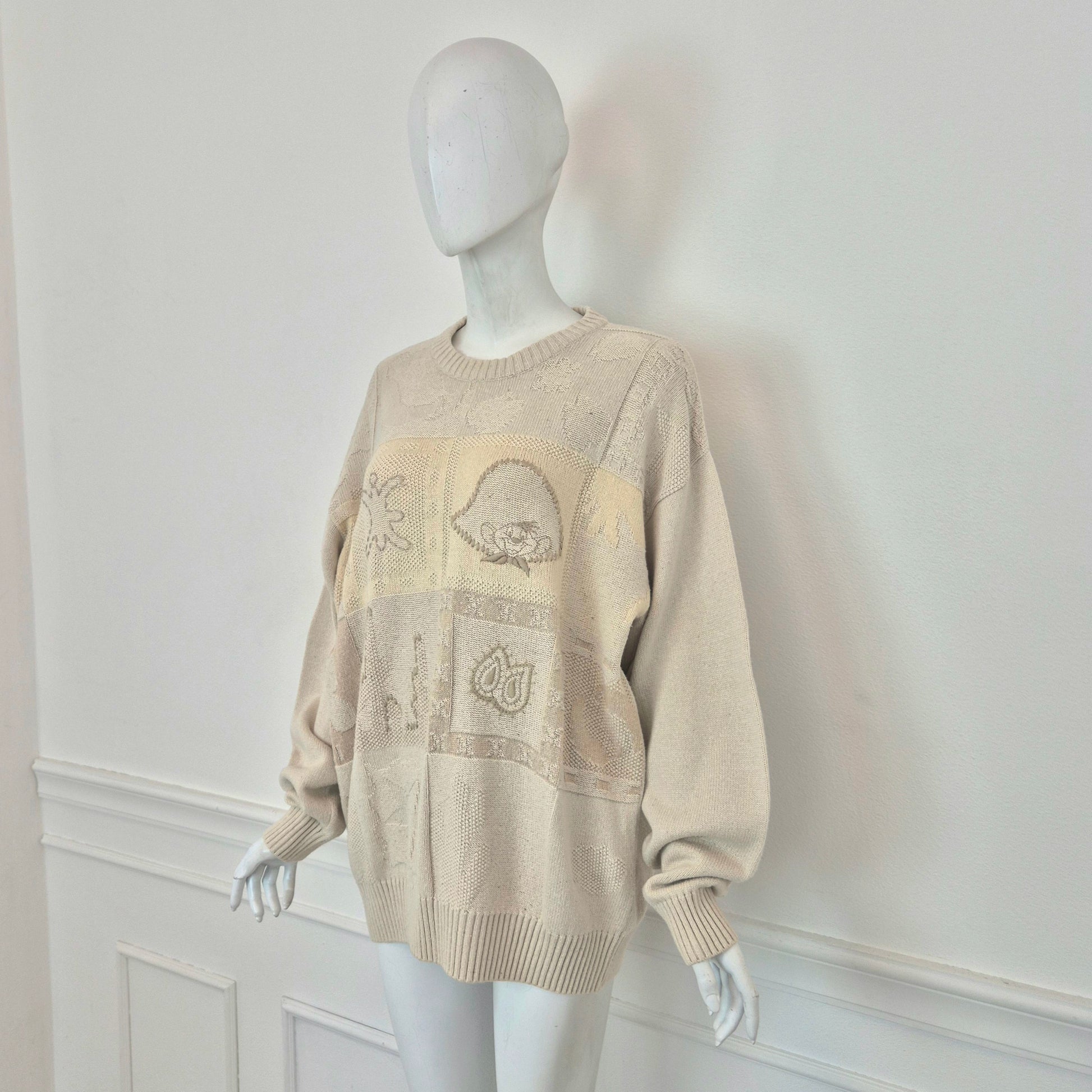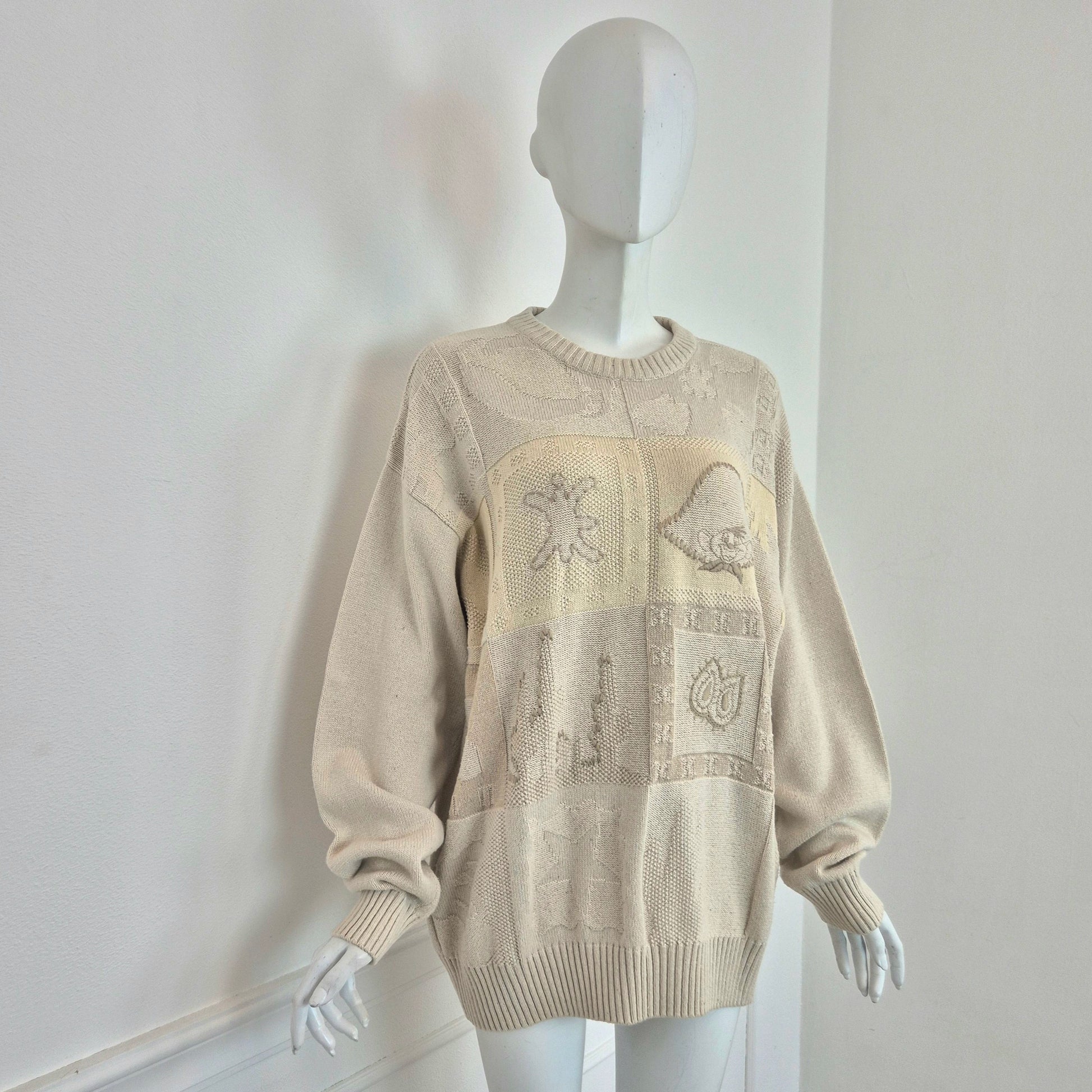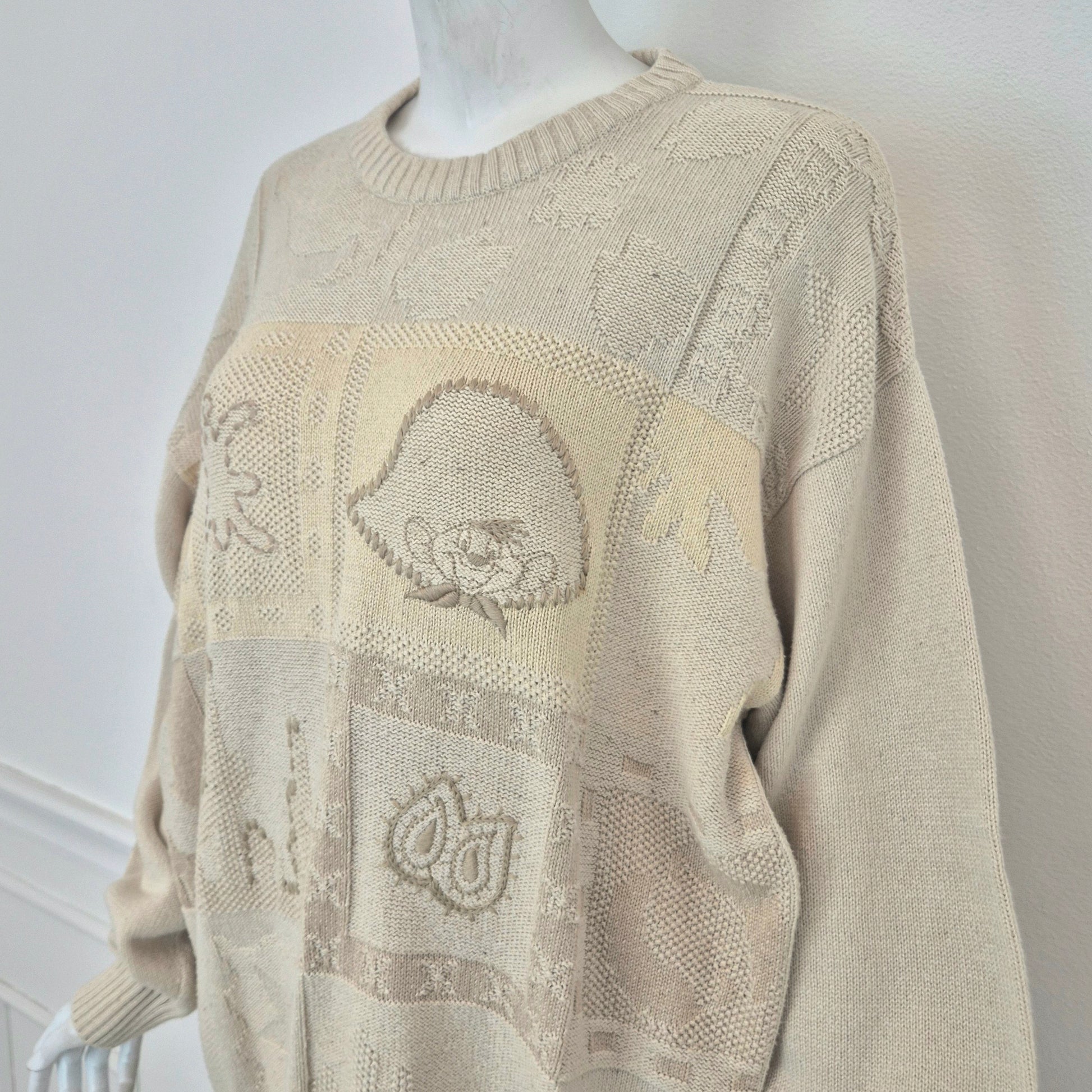 ICEBERG maglione unisex vintage (1993) in misto cotone e seta con soggetto Speedy Gonzales, raffigurato in quattro riquadri con ricami tono su tono.