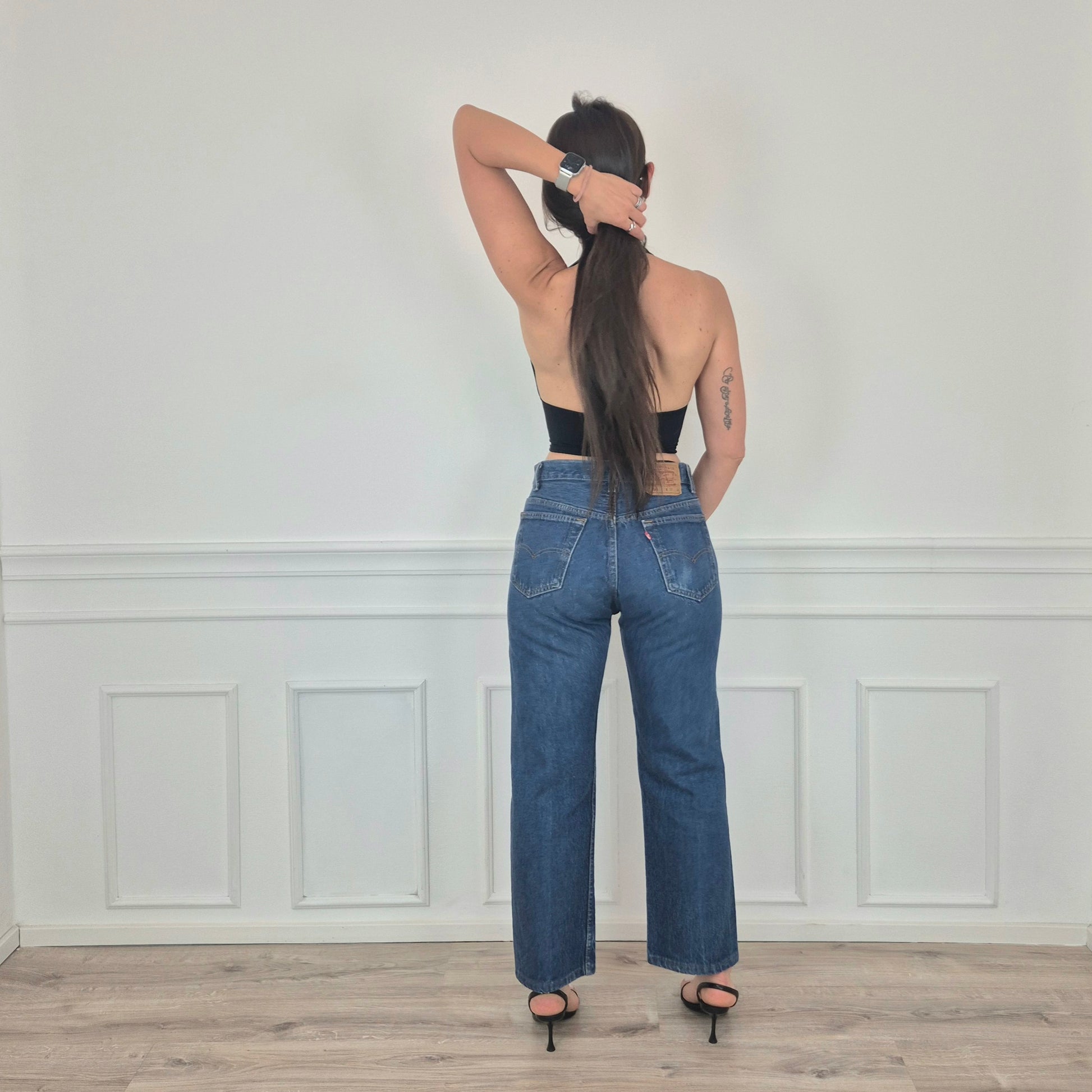 LEVI'S jeans 501 vintage made in U.s.a in tela di cotone non elasticizzata nel classico color blu. vita alta chiusa da bottoni, gamba dritta e classiche cinque tasche.