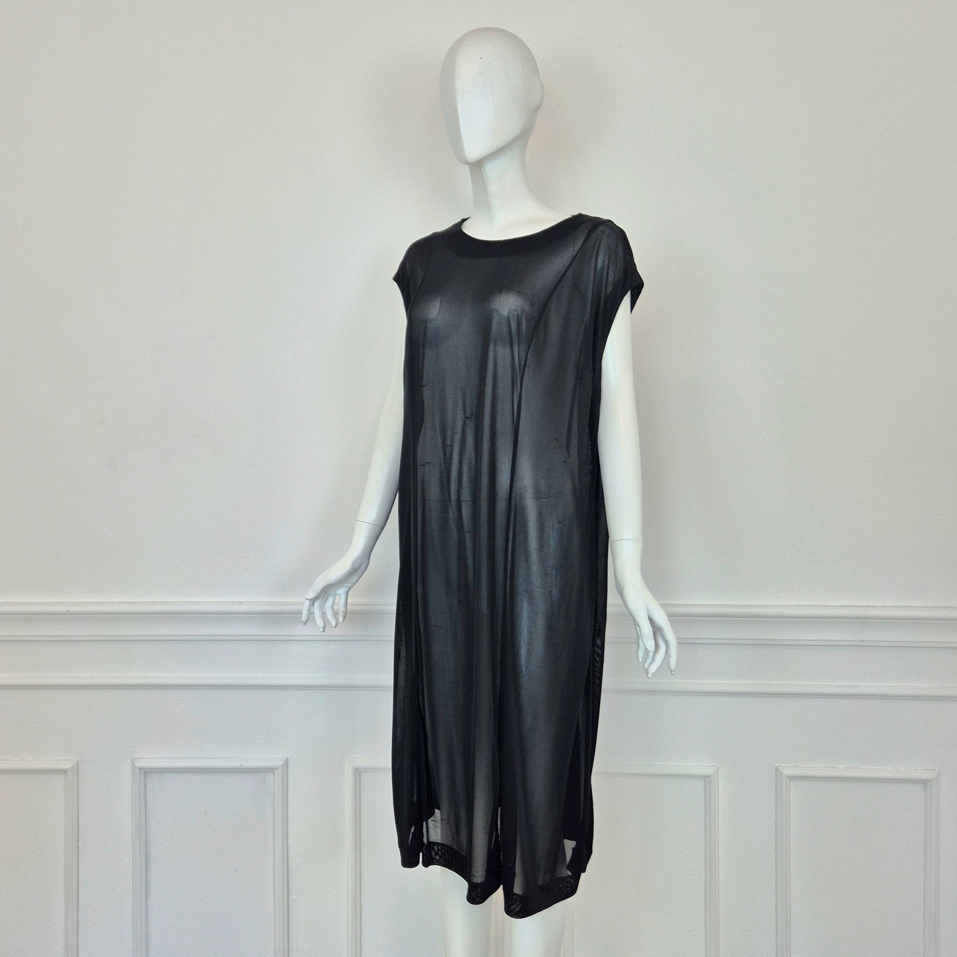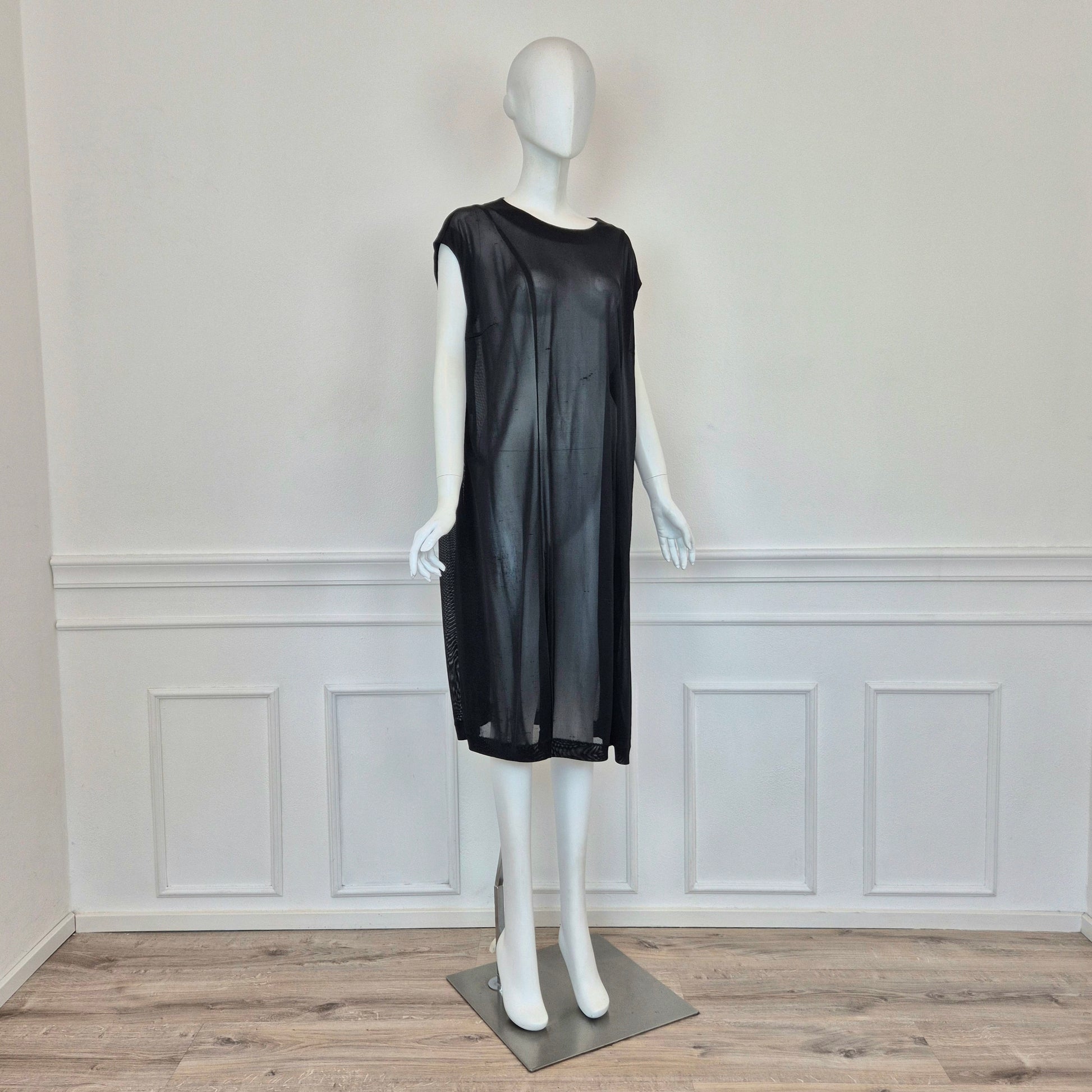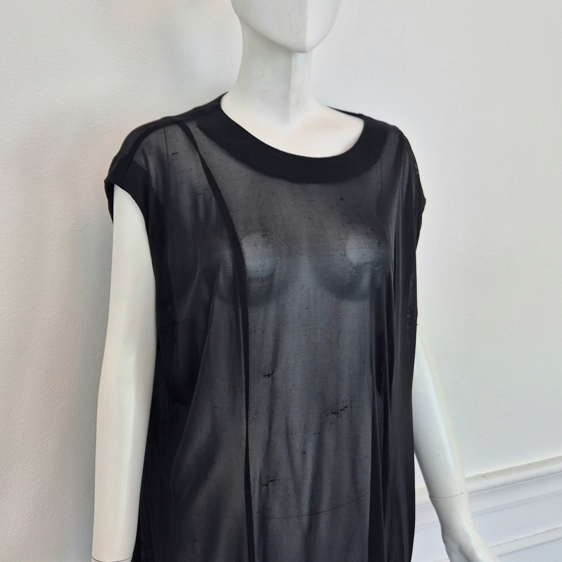 MAISON MARTIN MARGIELA (white label) maxi tunica - vestito nero in tessuto velato con scollo rotondo e linea dritta e pulita.
