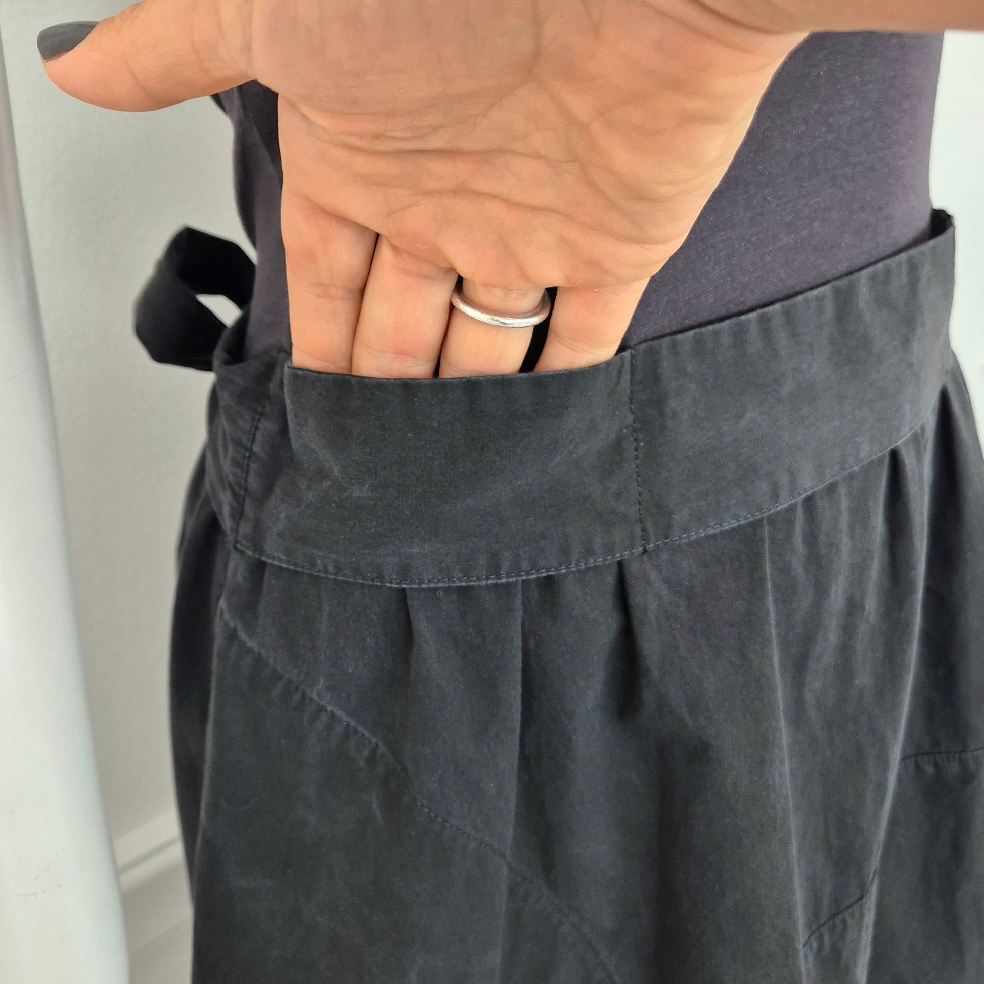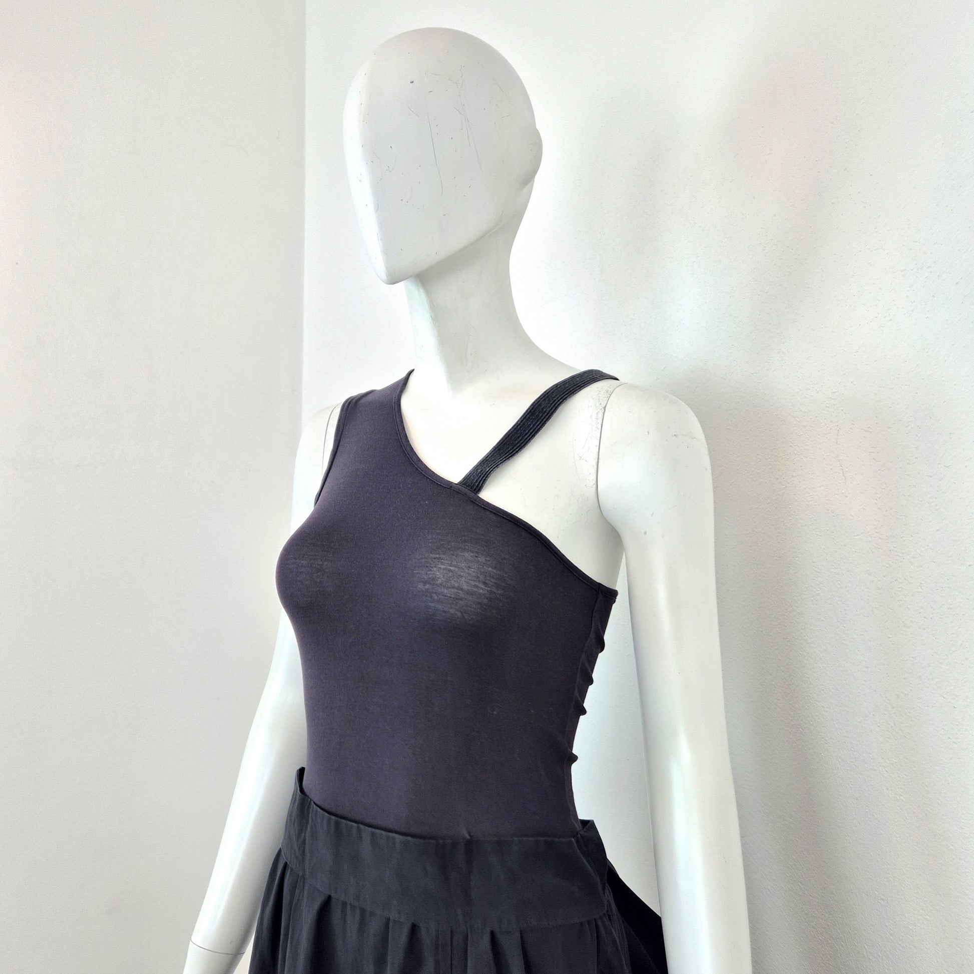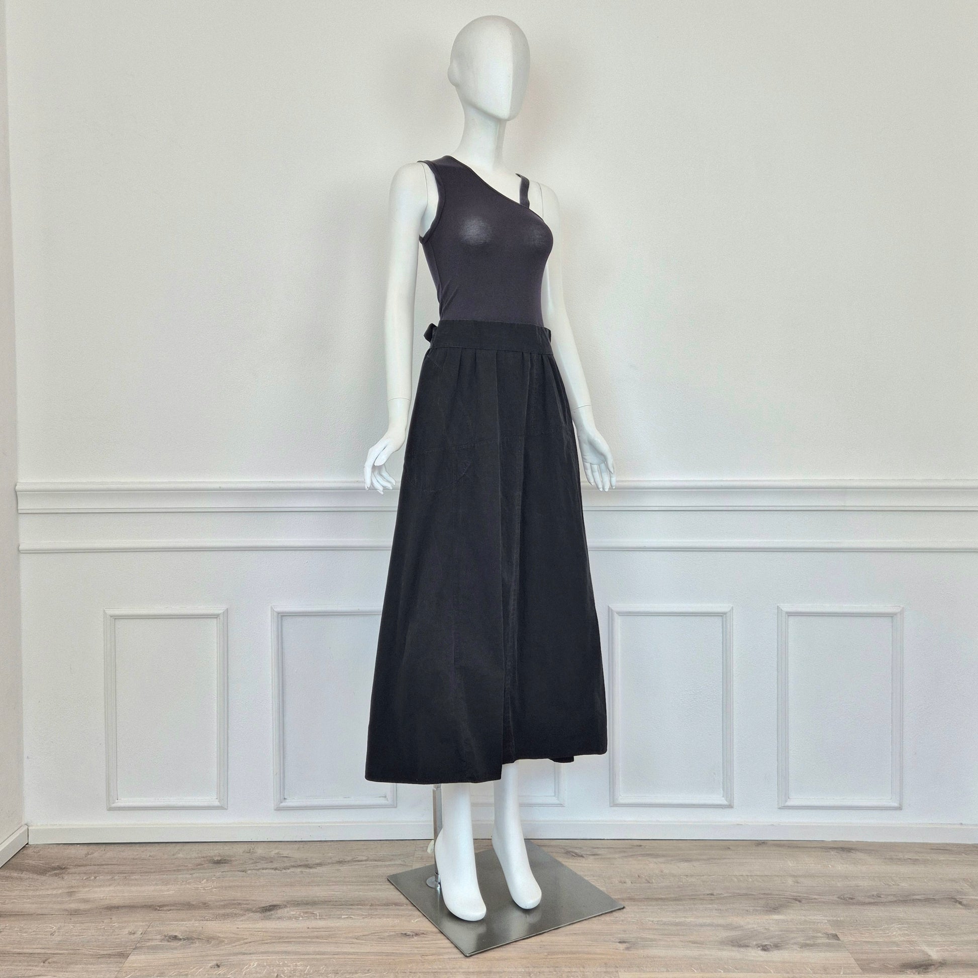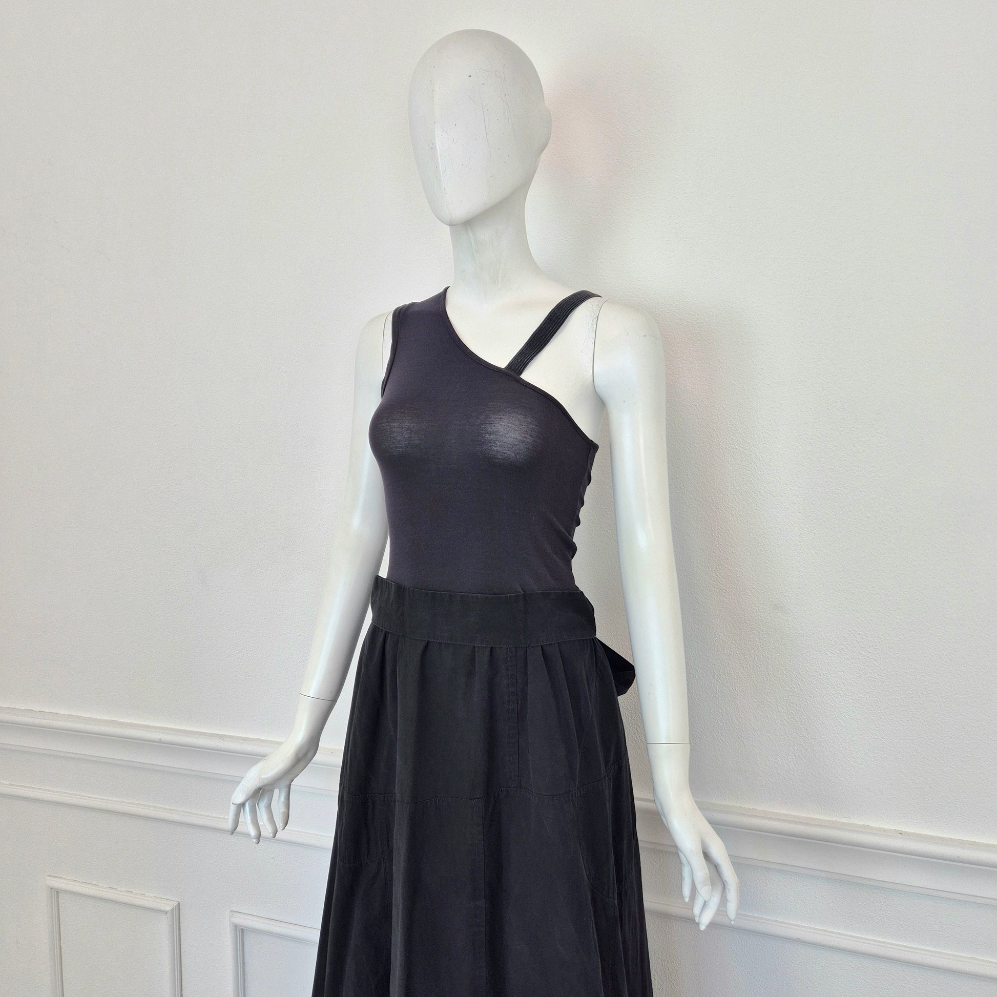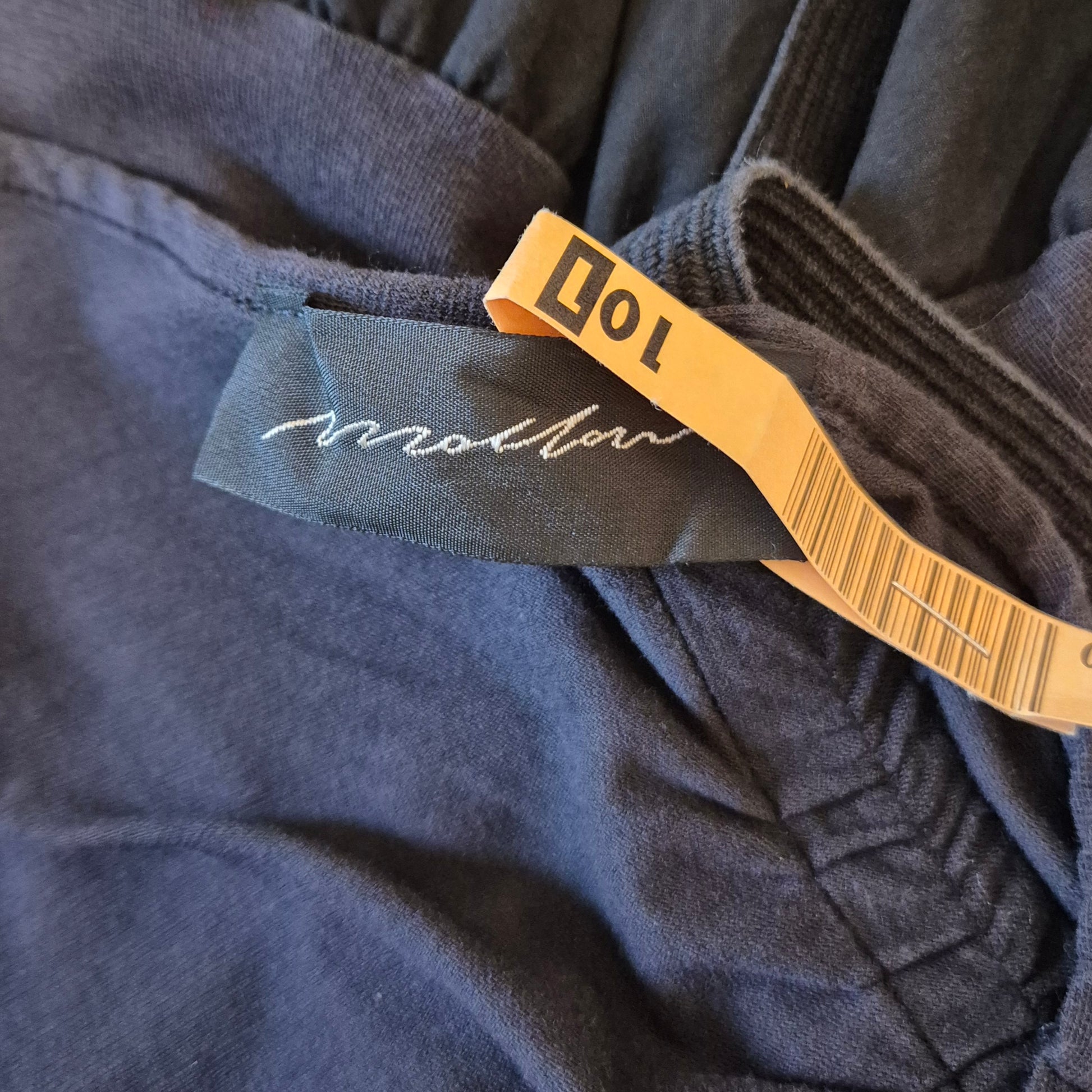 MALLONI abito lungo con parte superiore in cotone elasticizzato blu notte e gonna ampia in cotone nero più sostenuto.