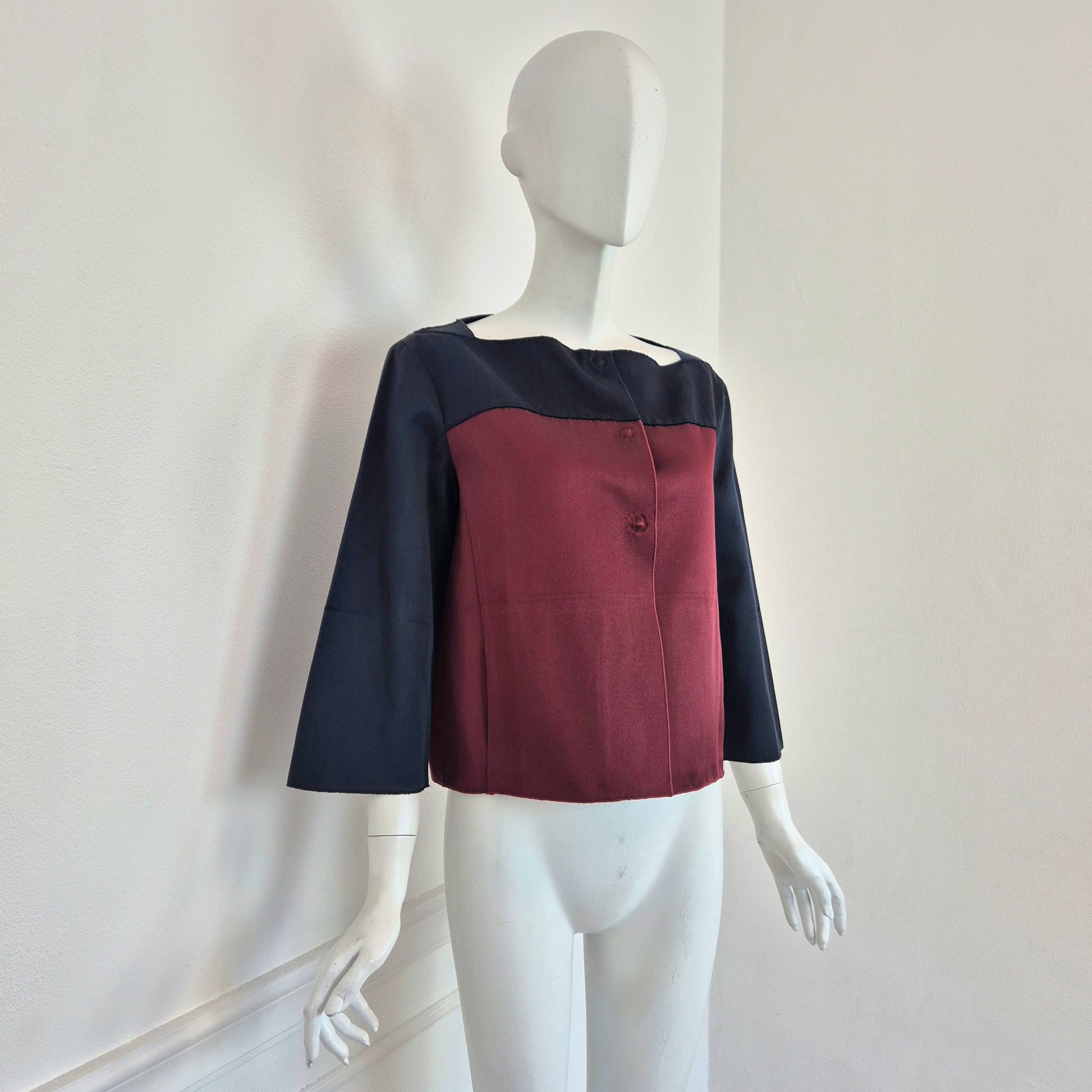 MIU MIU (spring summer 2007) giacca da sfilata in misto cotone e seta bicolor blu notte bordeaux con bottoni a pressione nascosti e tasche sul davanti.