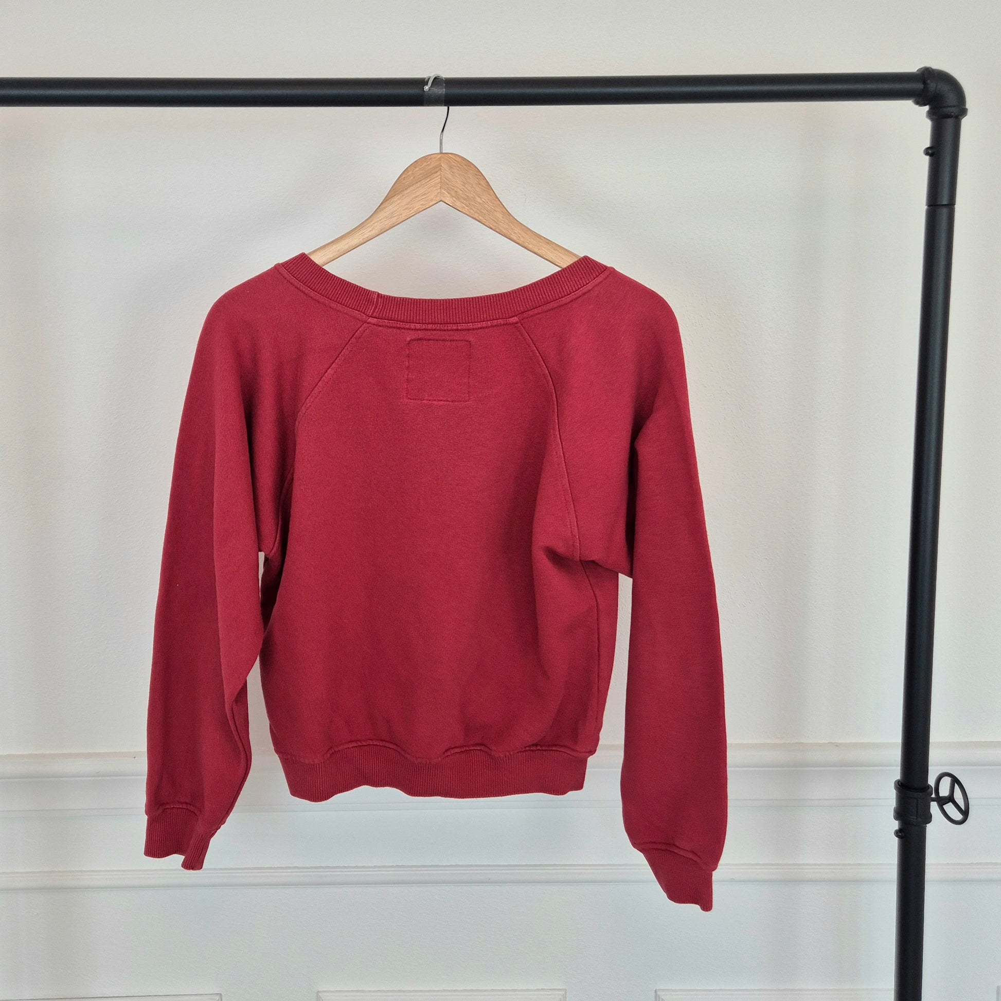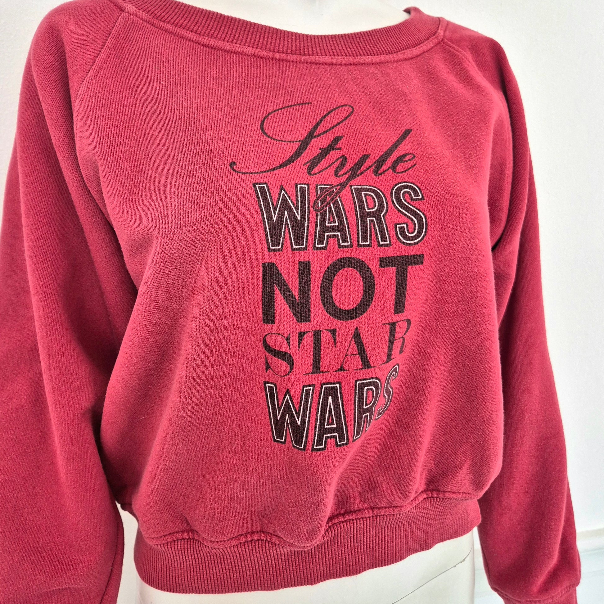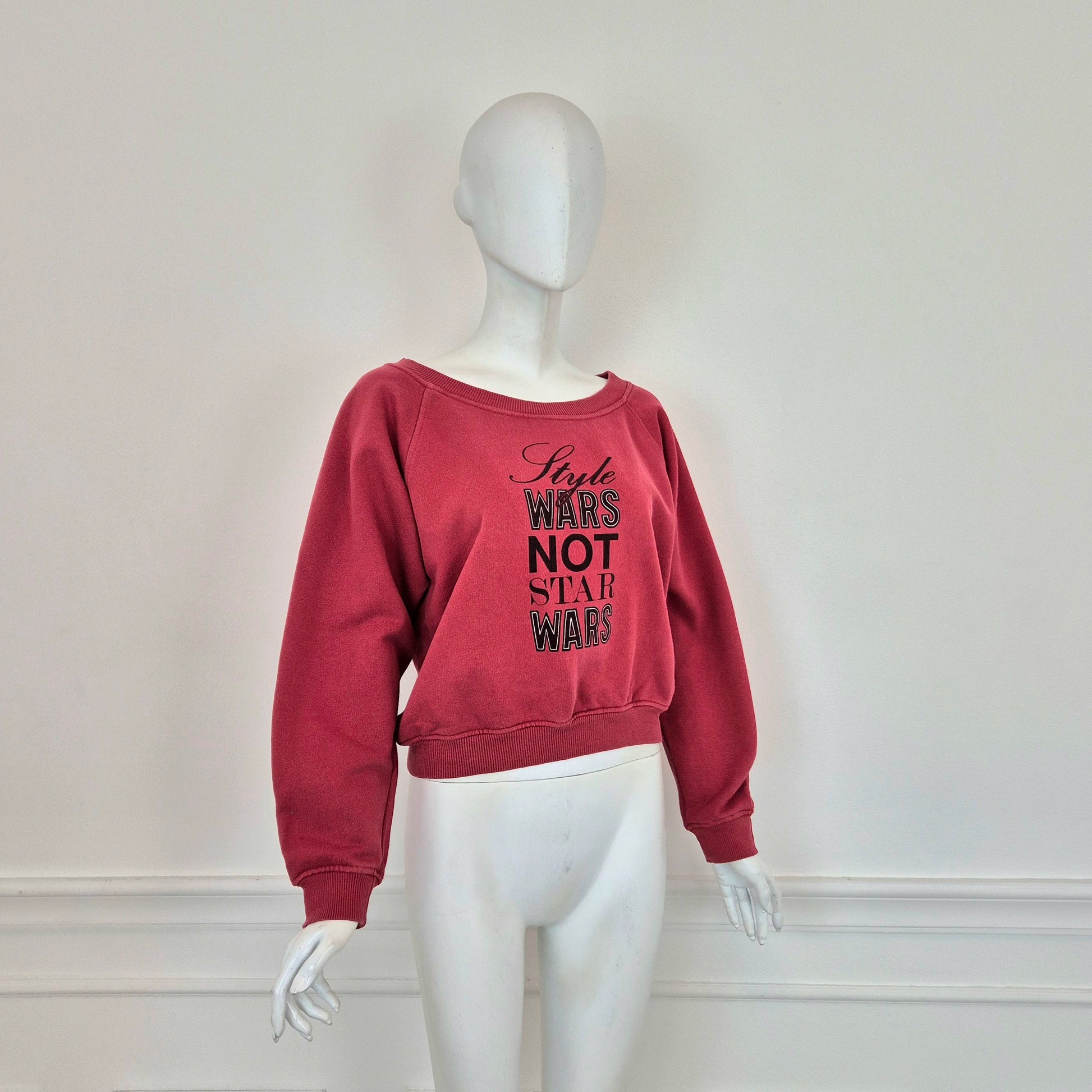 MOSCHINO (linea jeans) felpa vintage in cotone rosso con scollo rotondo e scritta "Style Wars not Star Wars".