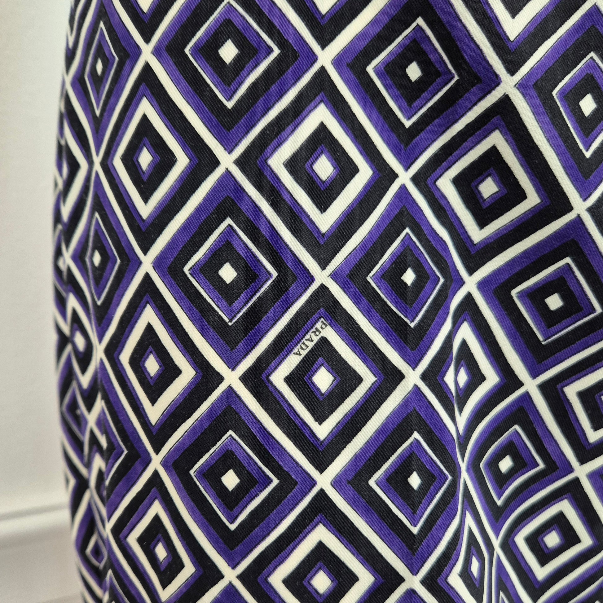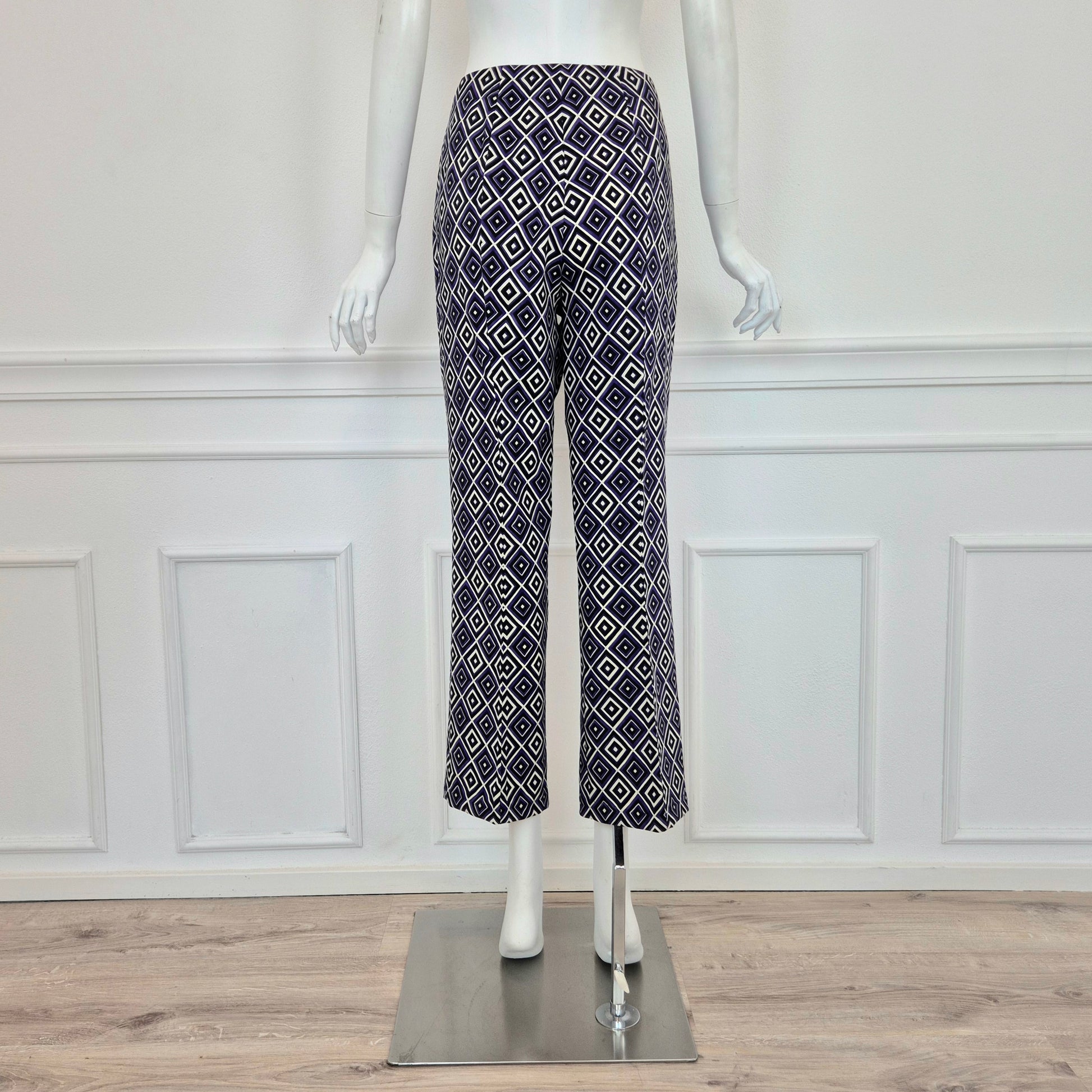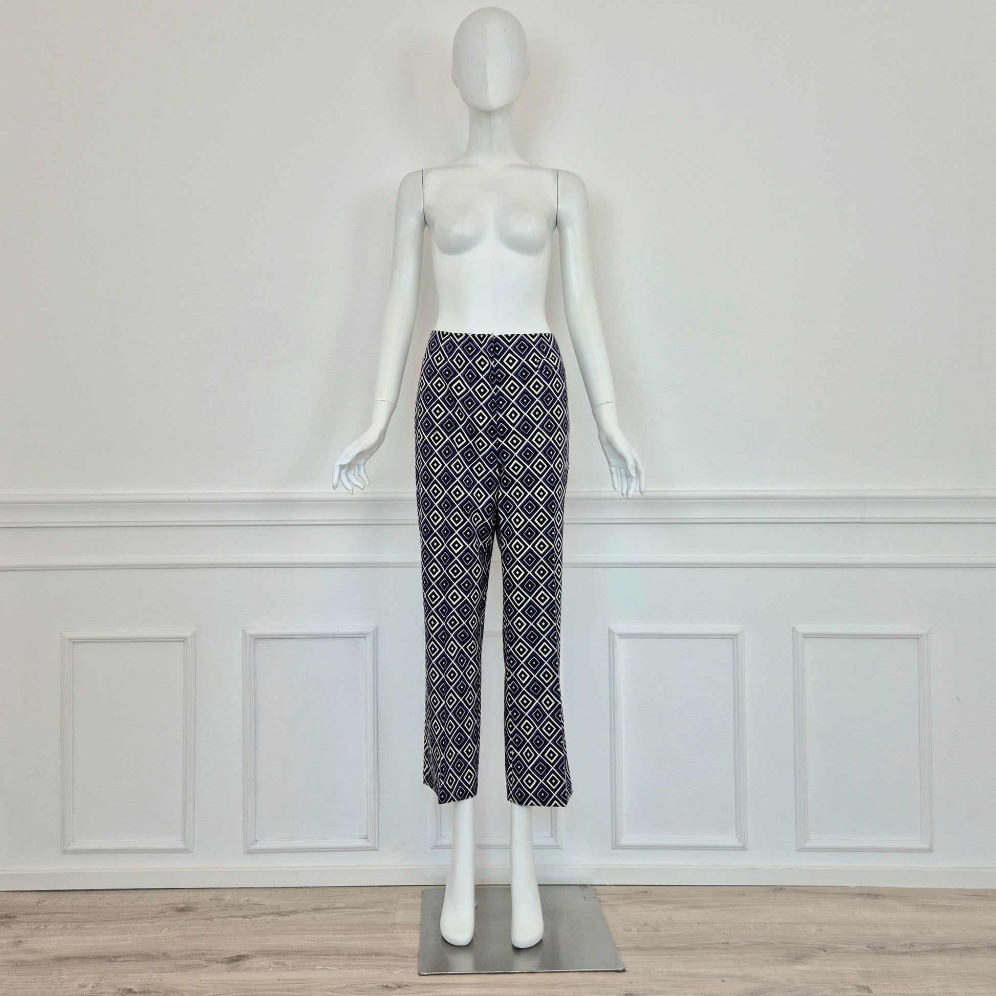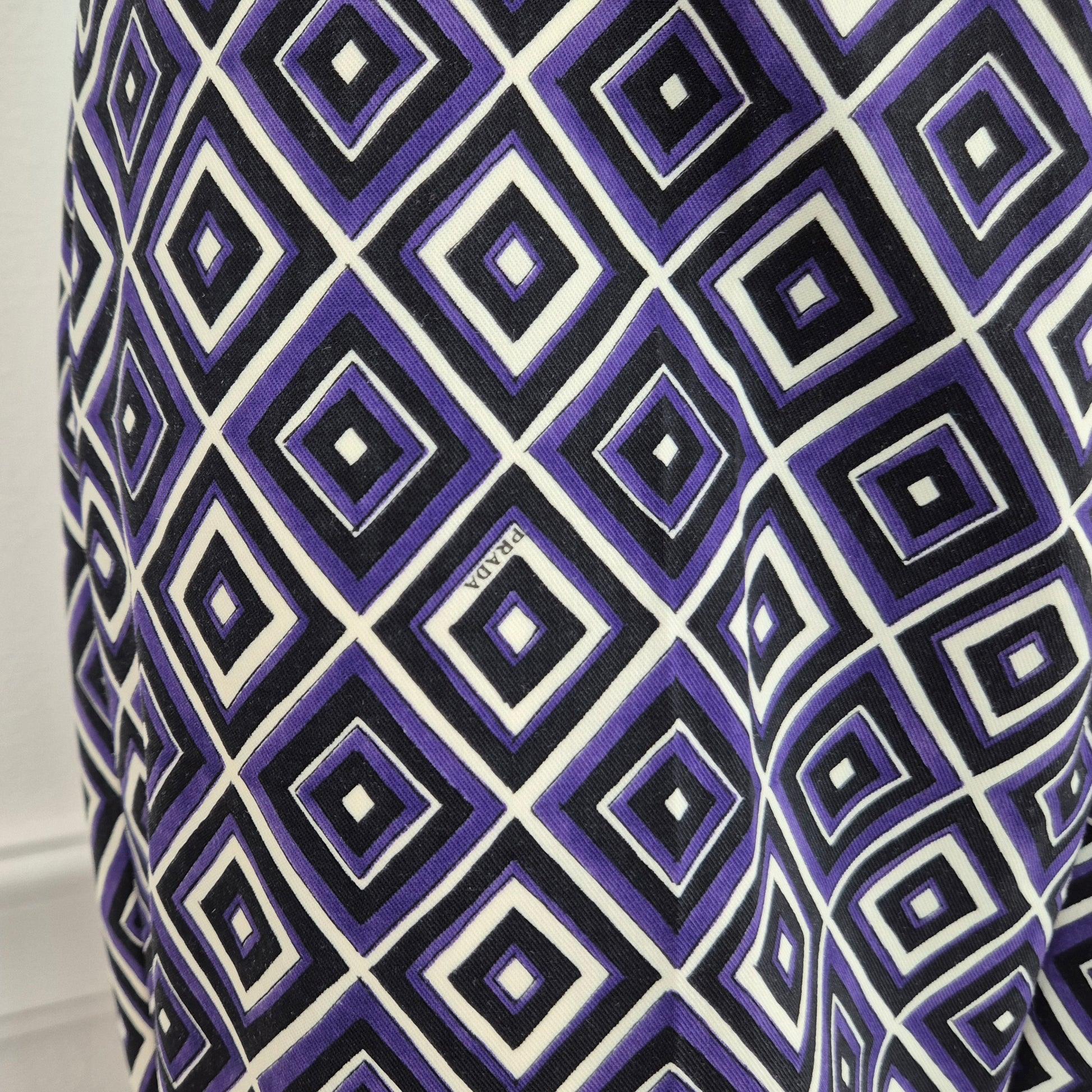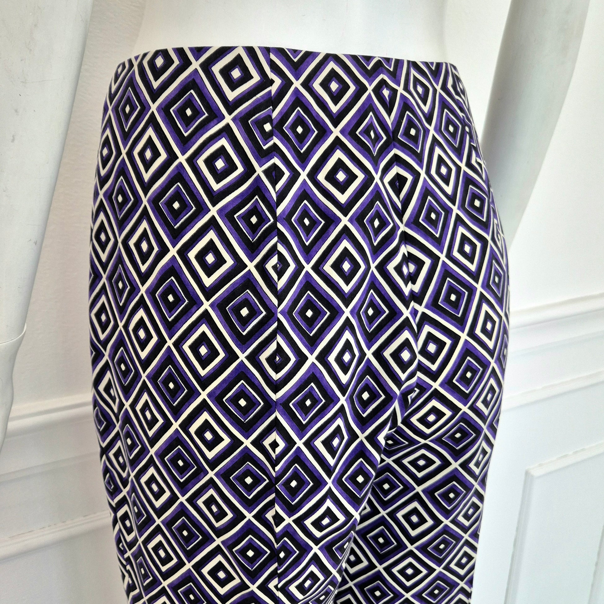 PRADA (FW 2012) pantaloni classici con piega centrale, tessuto nella celebre fantasia rombi che ha caratterizzato tutta la collezione invernale 2012, in questo caso sui toni del viola e del bianco.