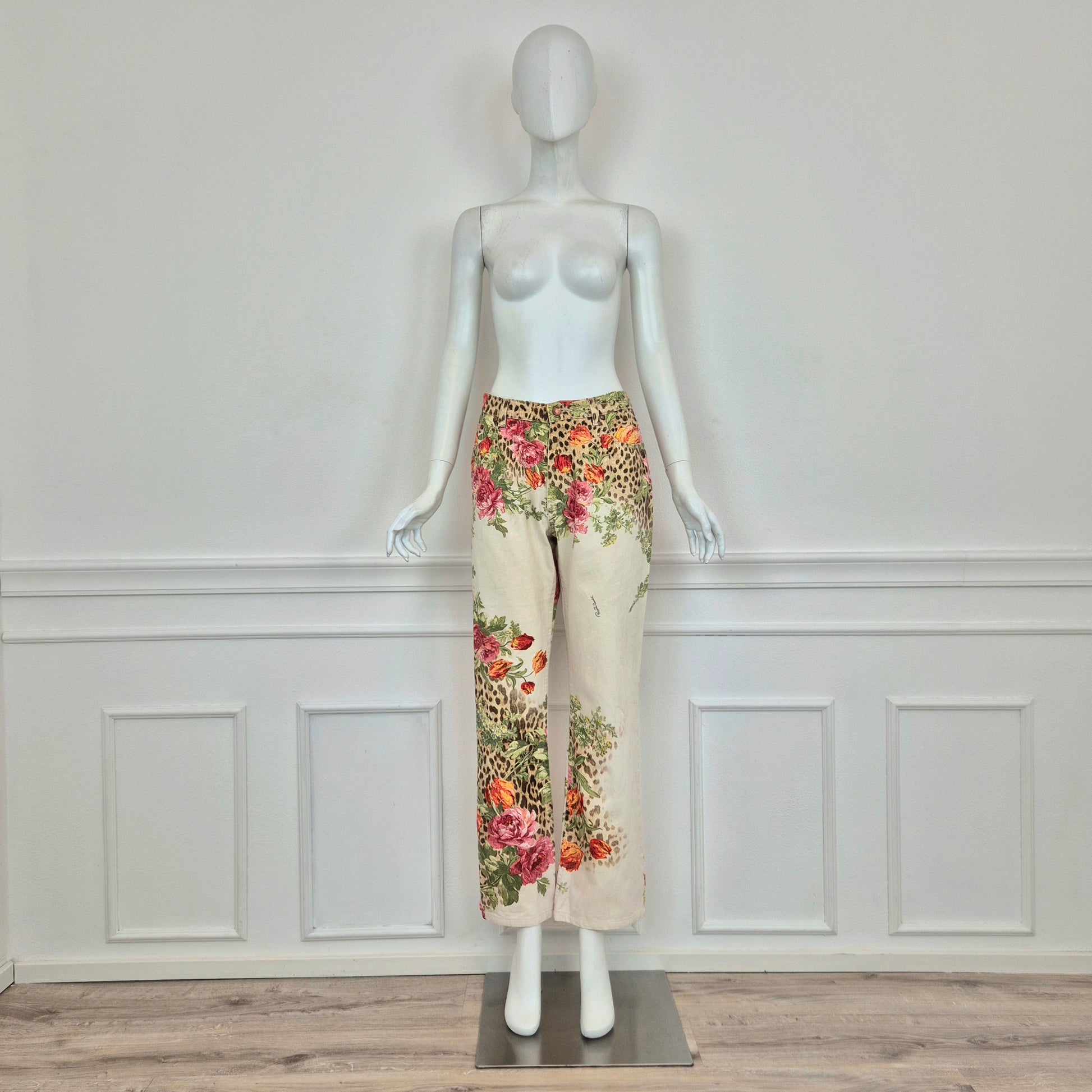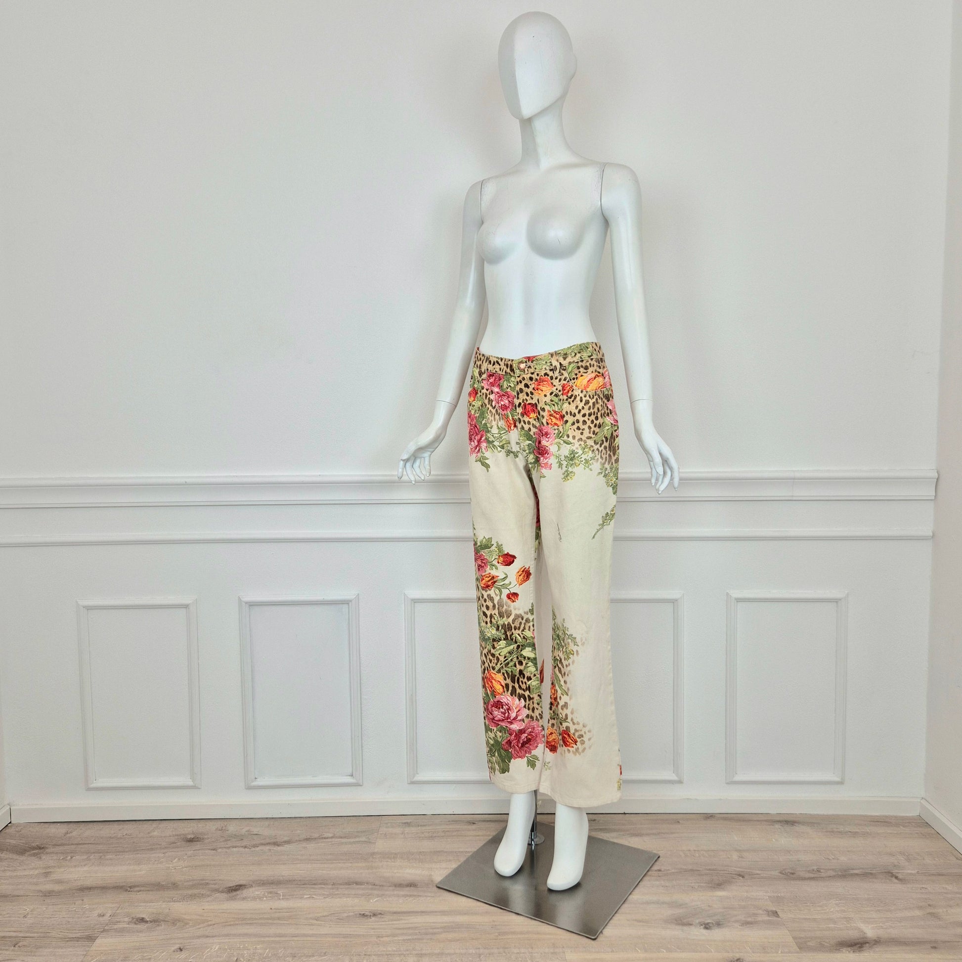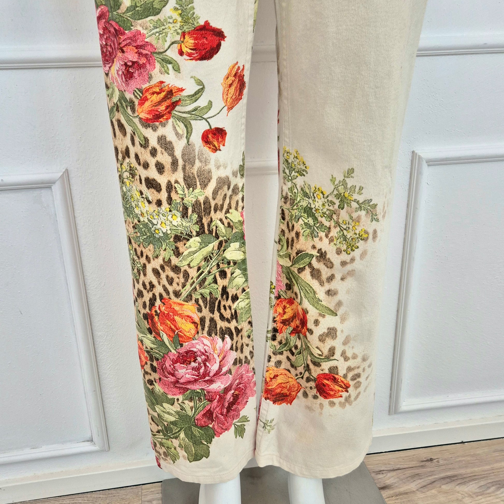 ROBERTO CAVALLI (spring summer 2002) jeans vintage dall'eclettica stampa che mixa i fiori all'animalier.