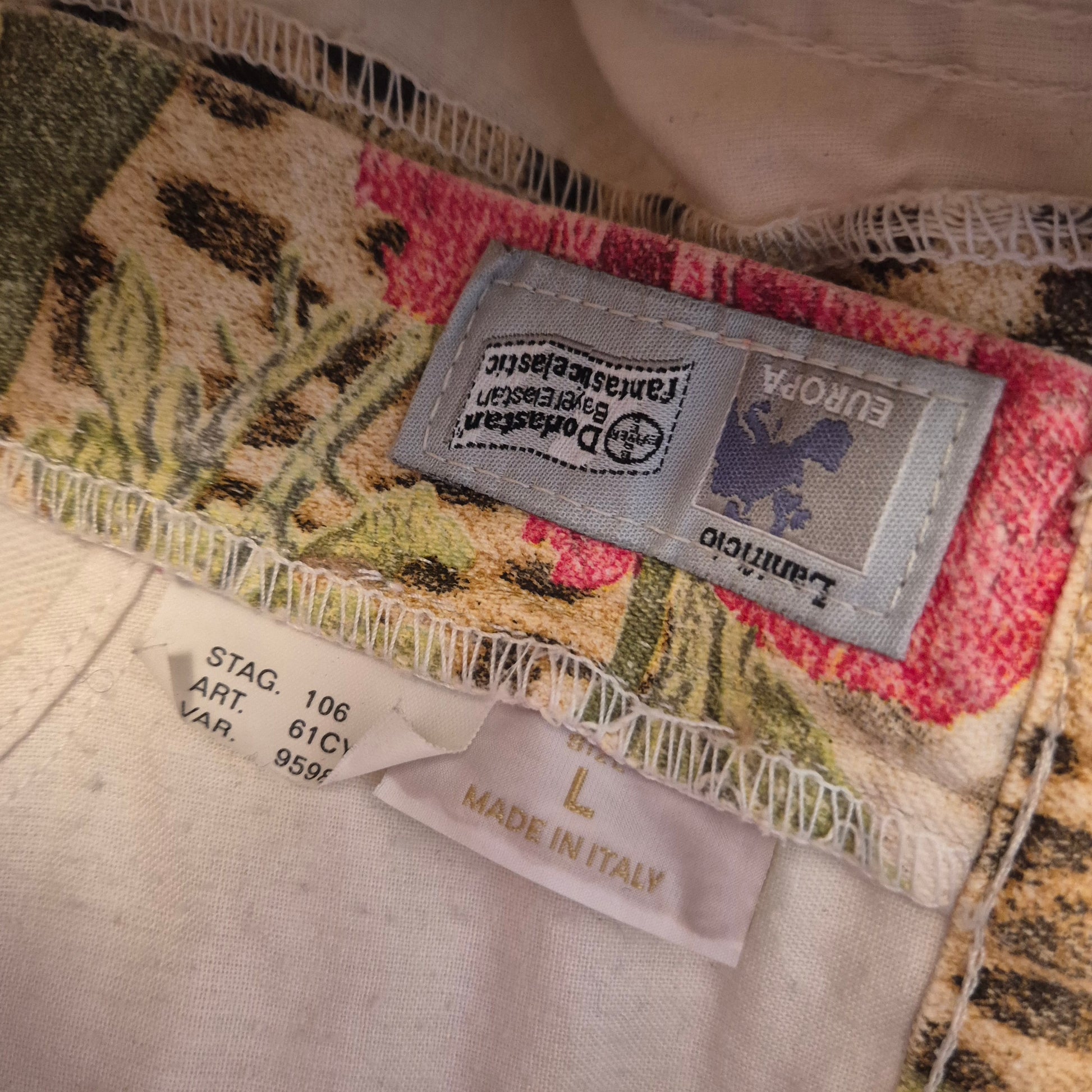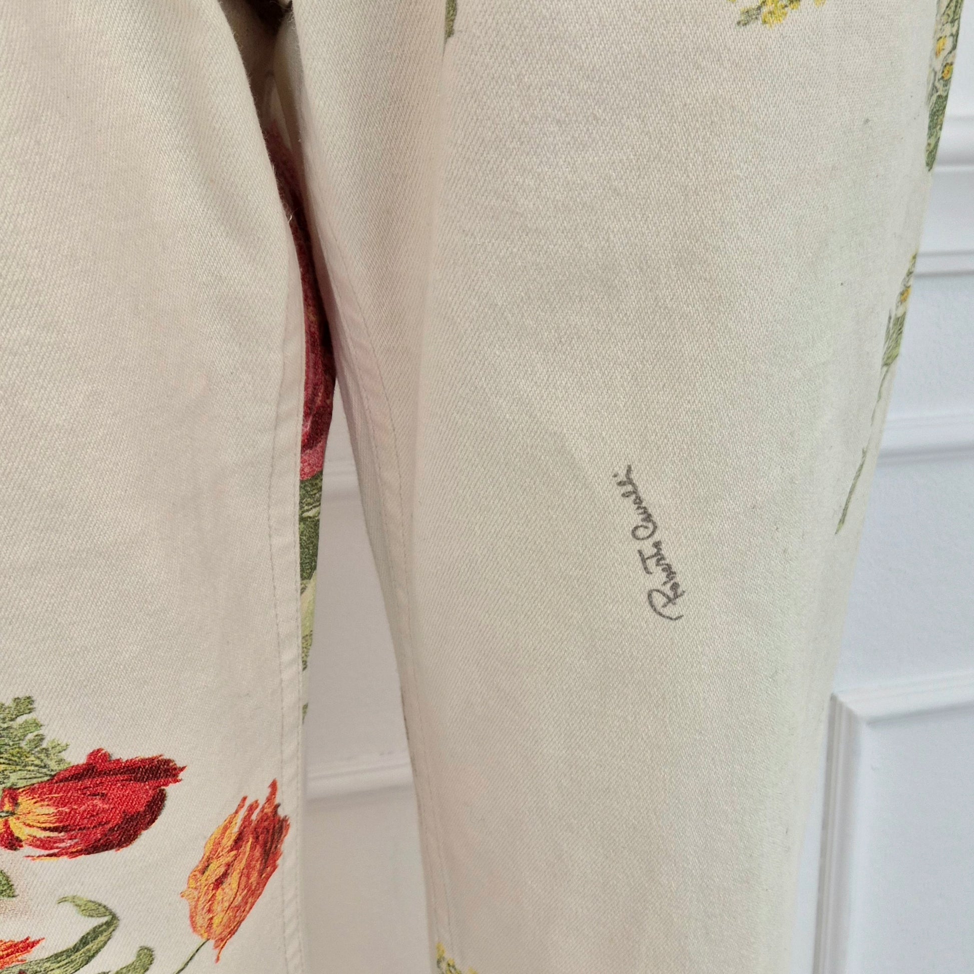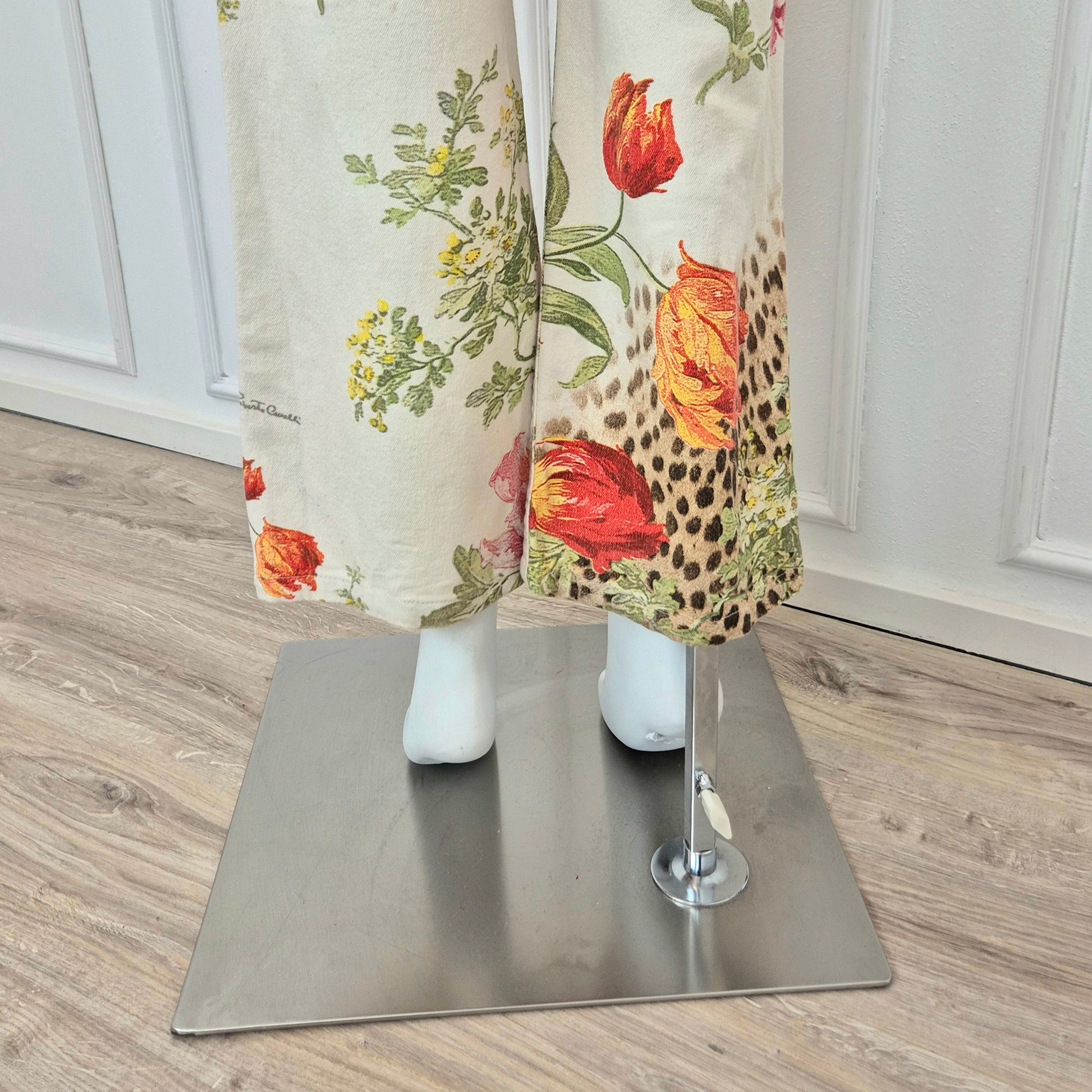 ROBERTO CAVALLI (spring summer 2002) jeans vintage dall'eclettica stampa che mixa i fiori all'animalier.