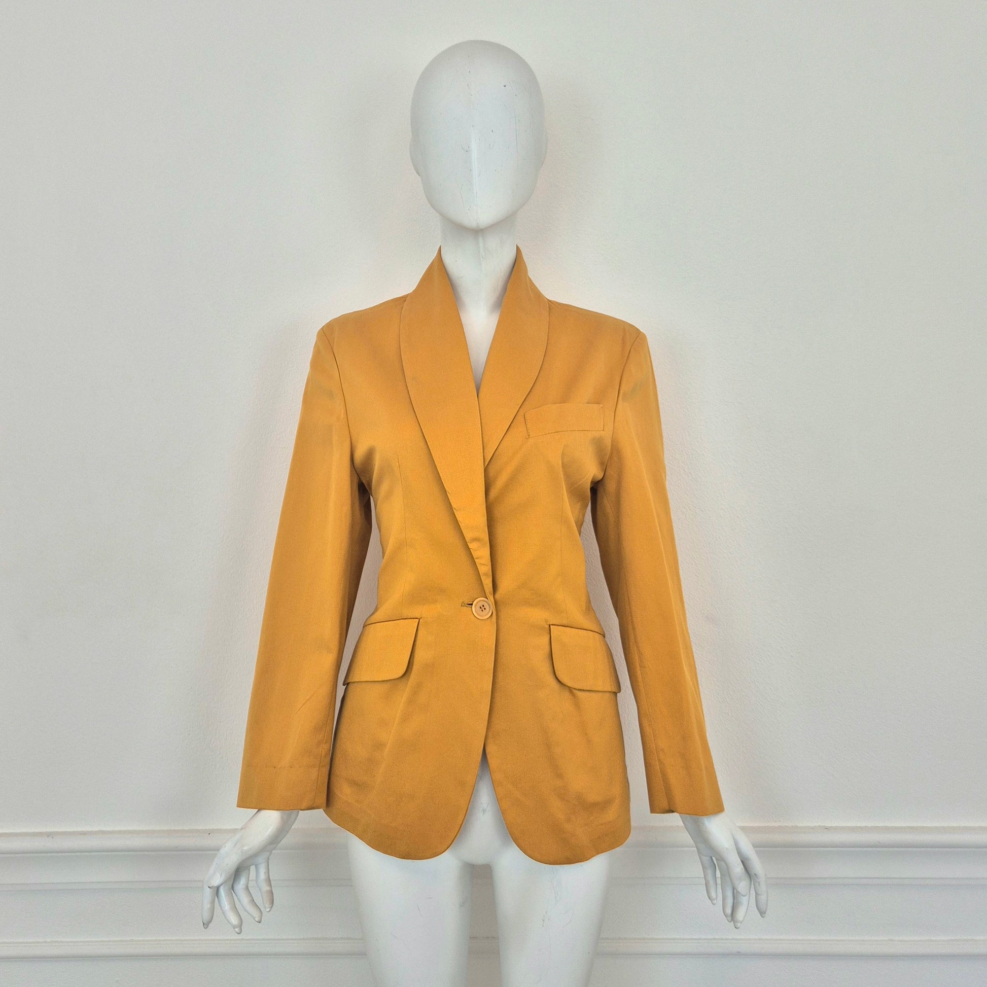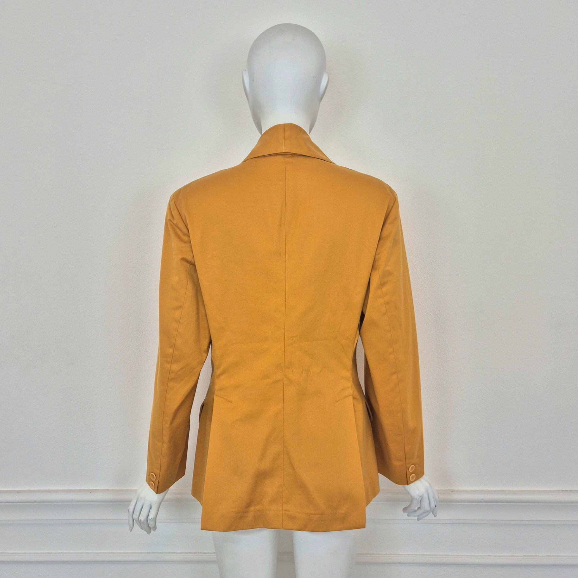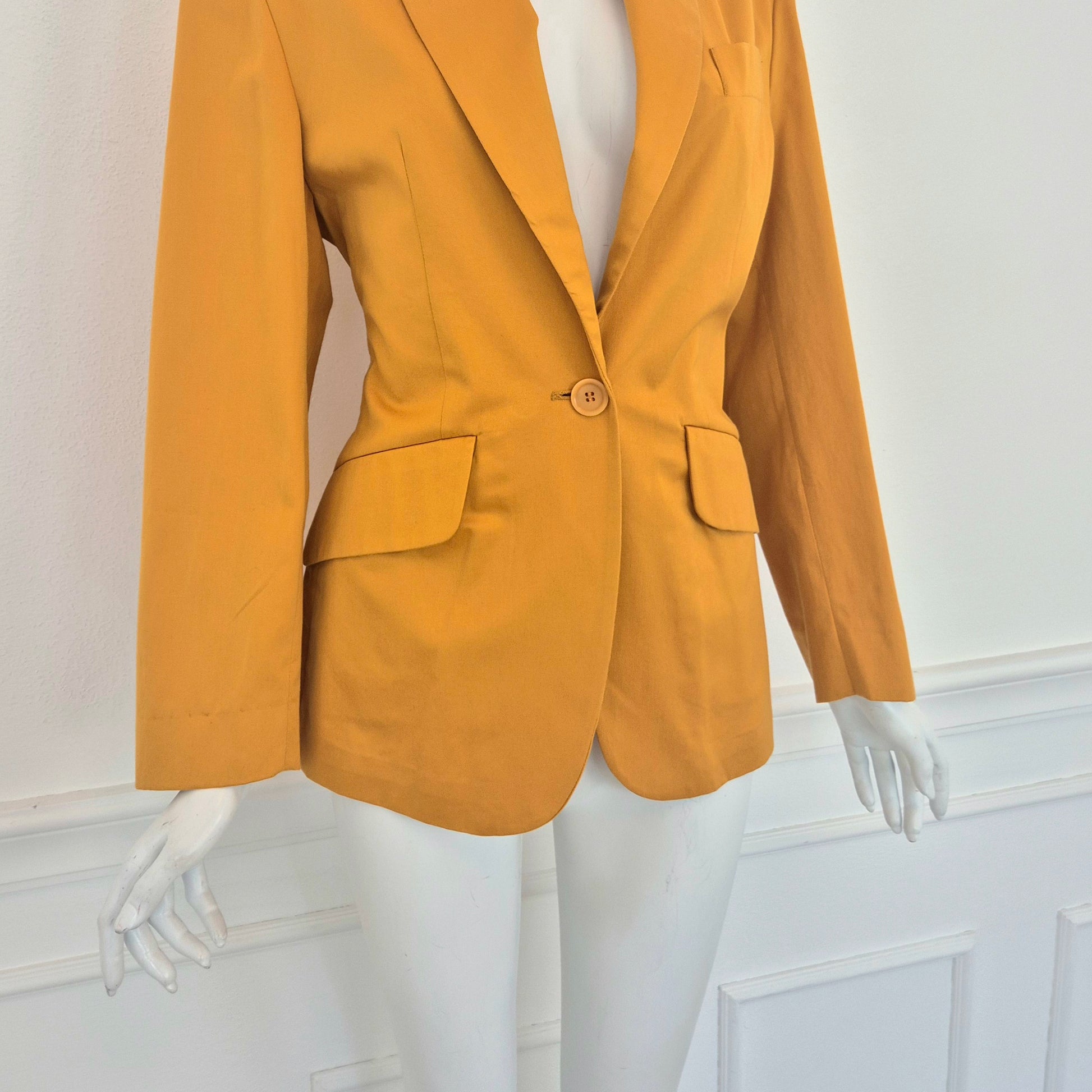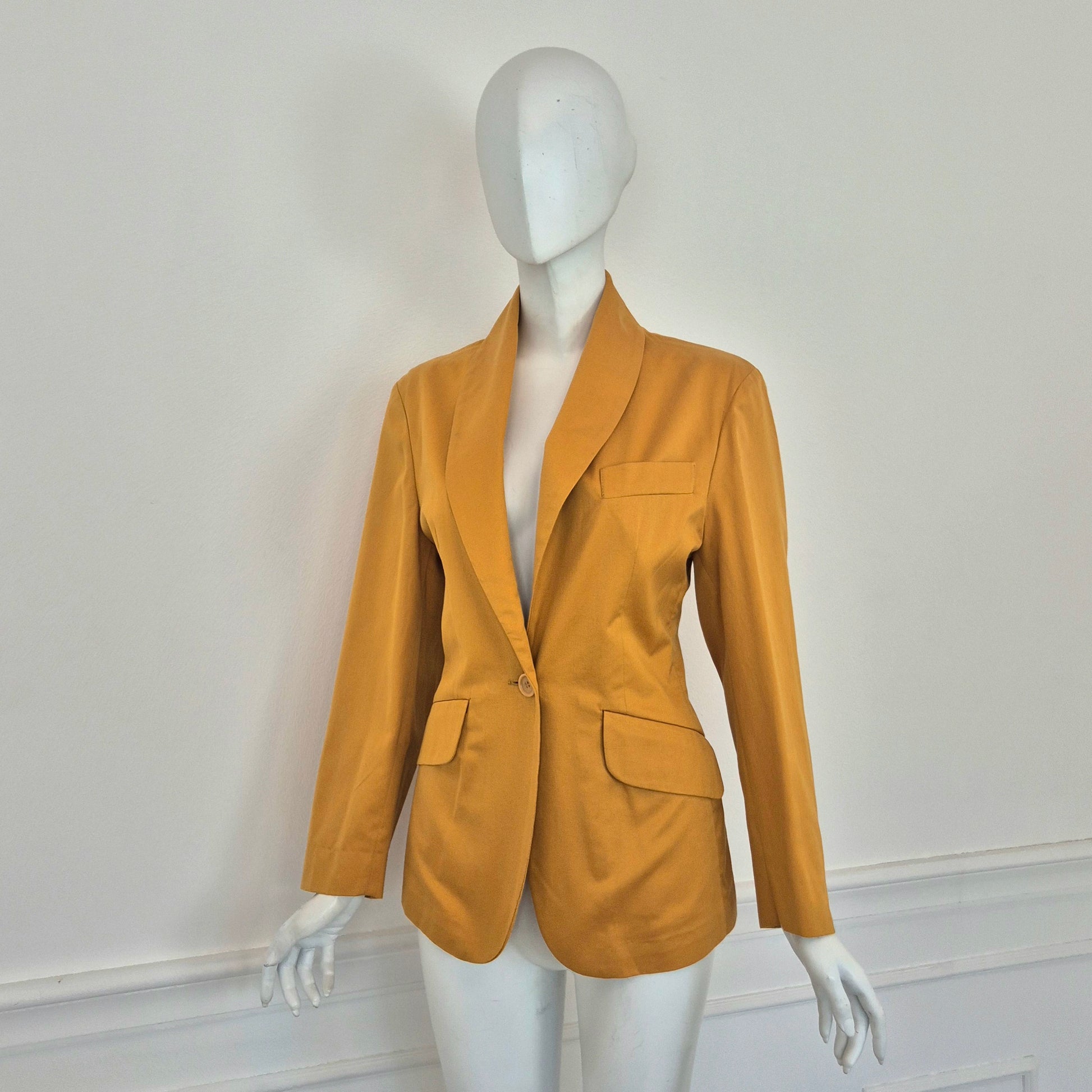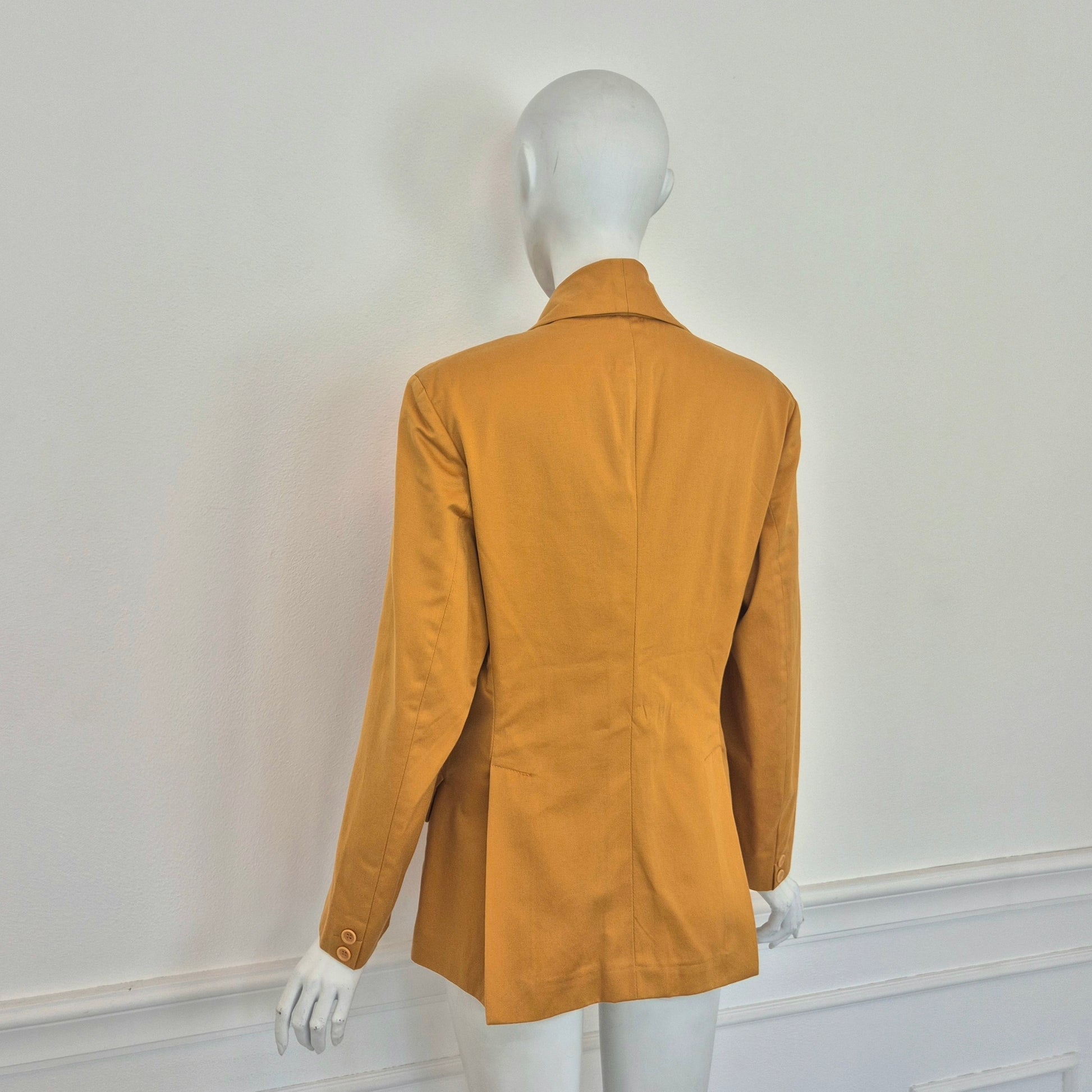 ROMEO GIGLI (linea G di Gigli) giacca blazer vintage anni '90 in cotone giallo ocra con tasche sul davanti e chiusura tramite bottone singolo.