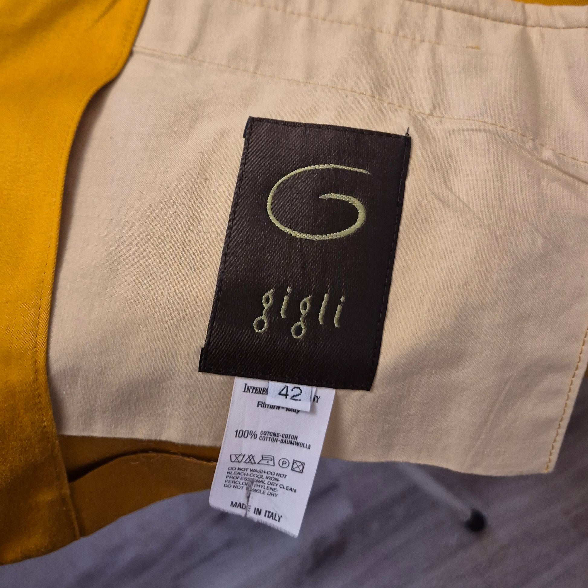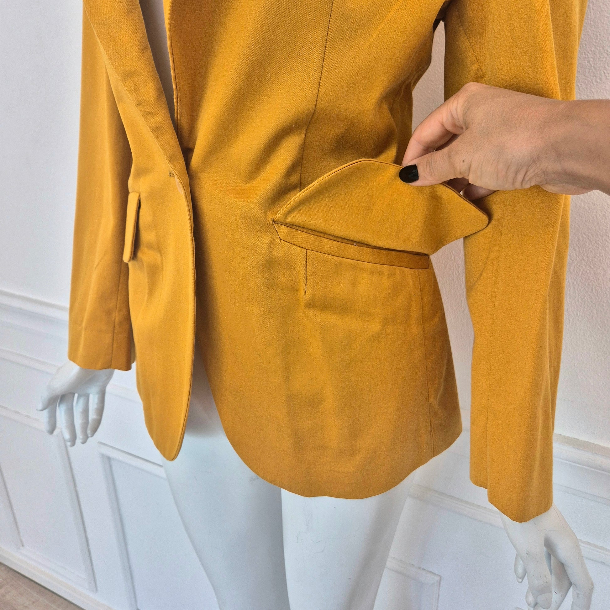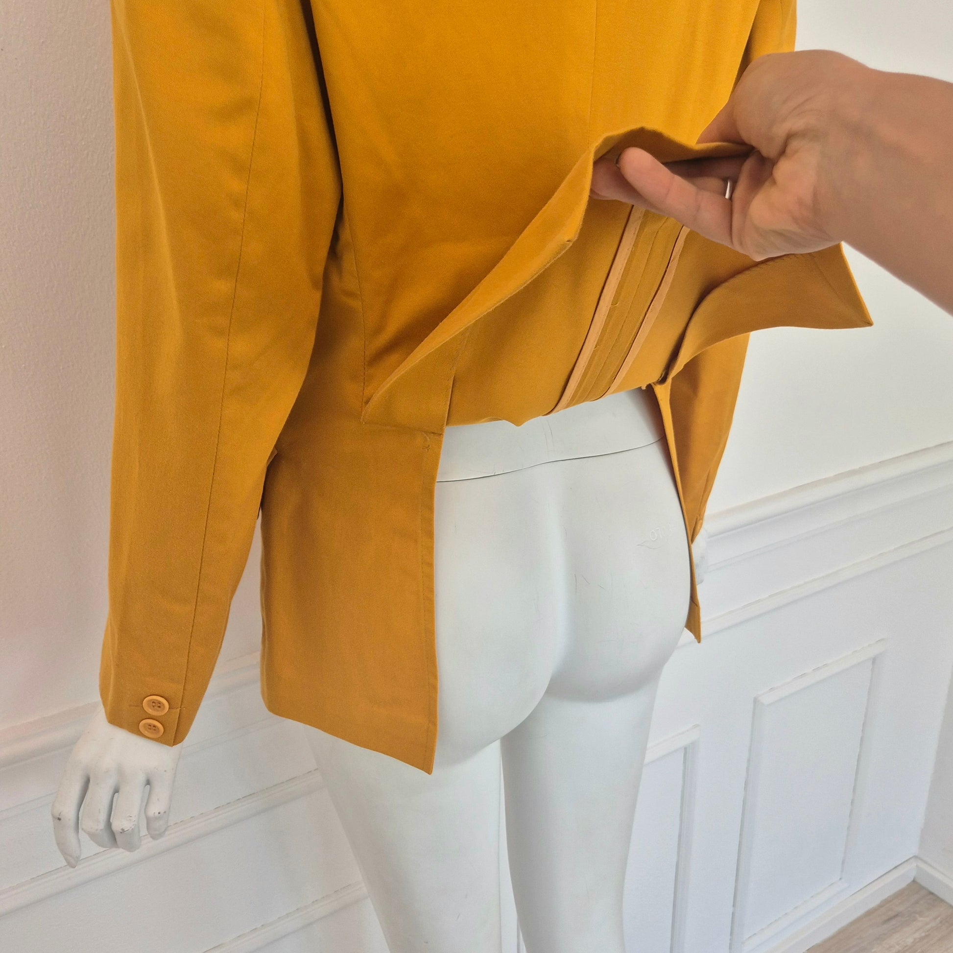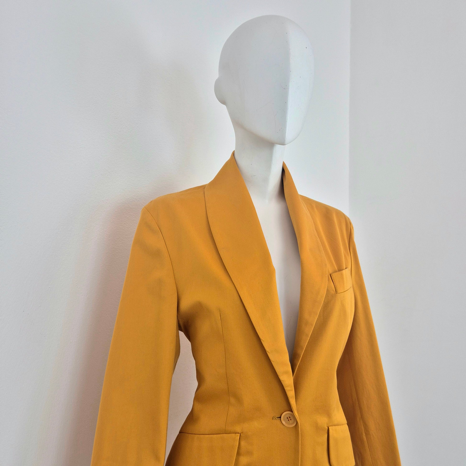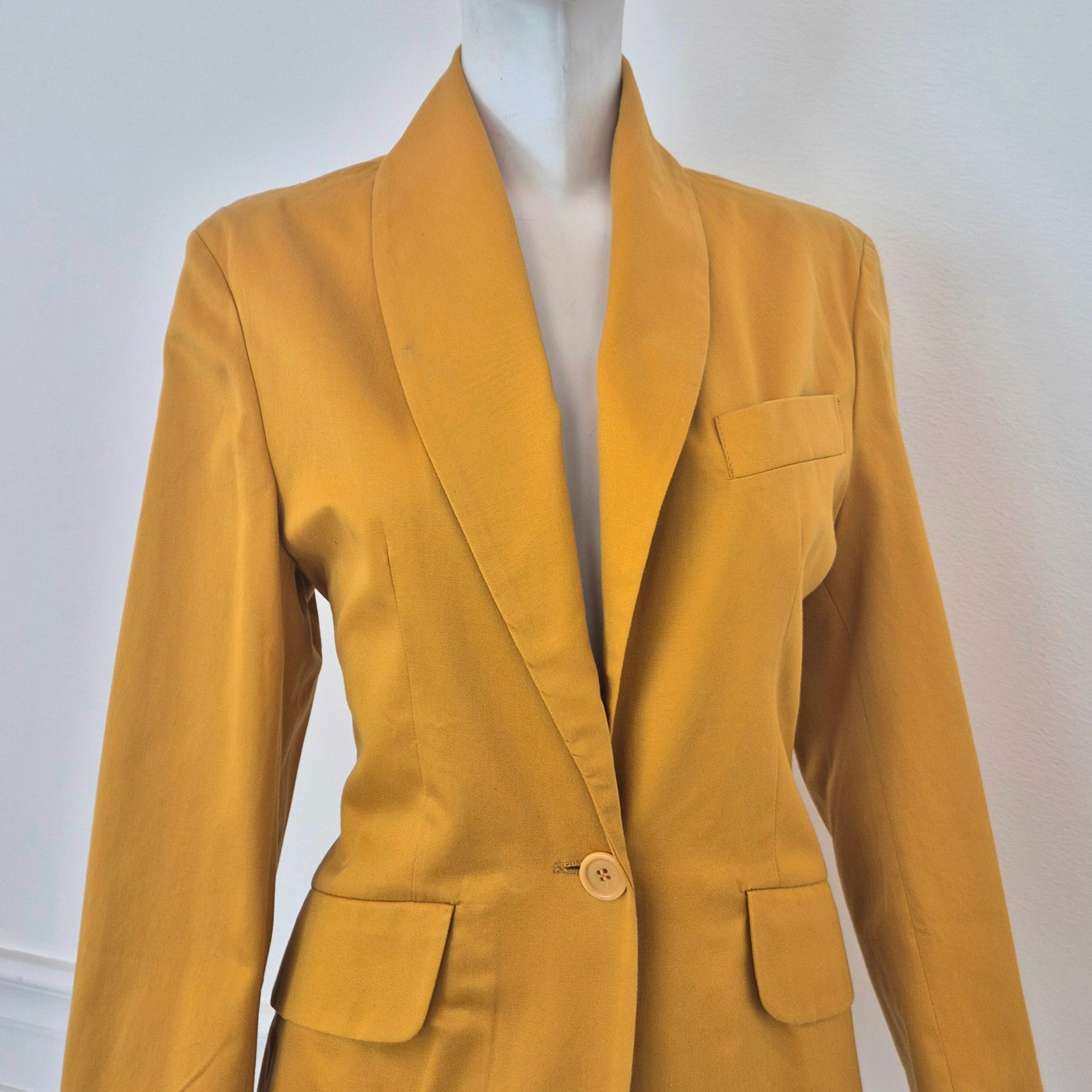 ROMEO GIGLI (linea G di Gigli) giacca blazer vintage anni '90 in cotone giallo ocra con tasche sul davanti e chiusura tramite bottone singolo.