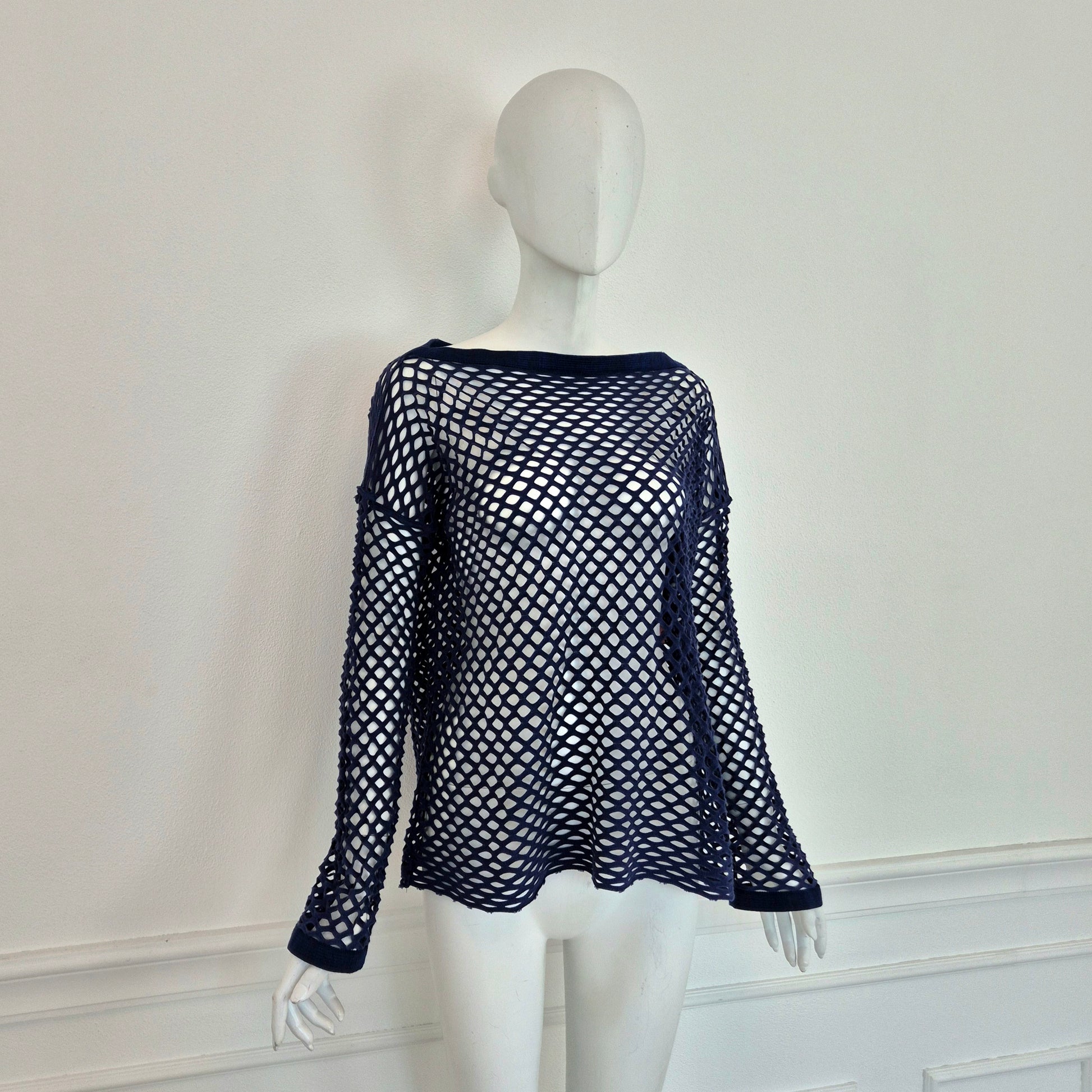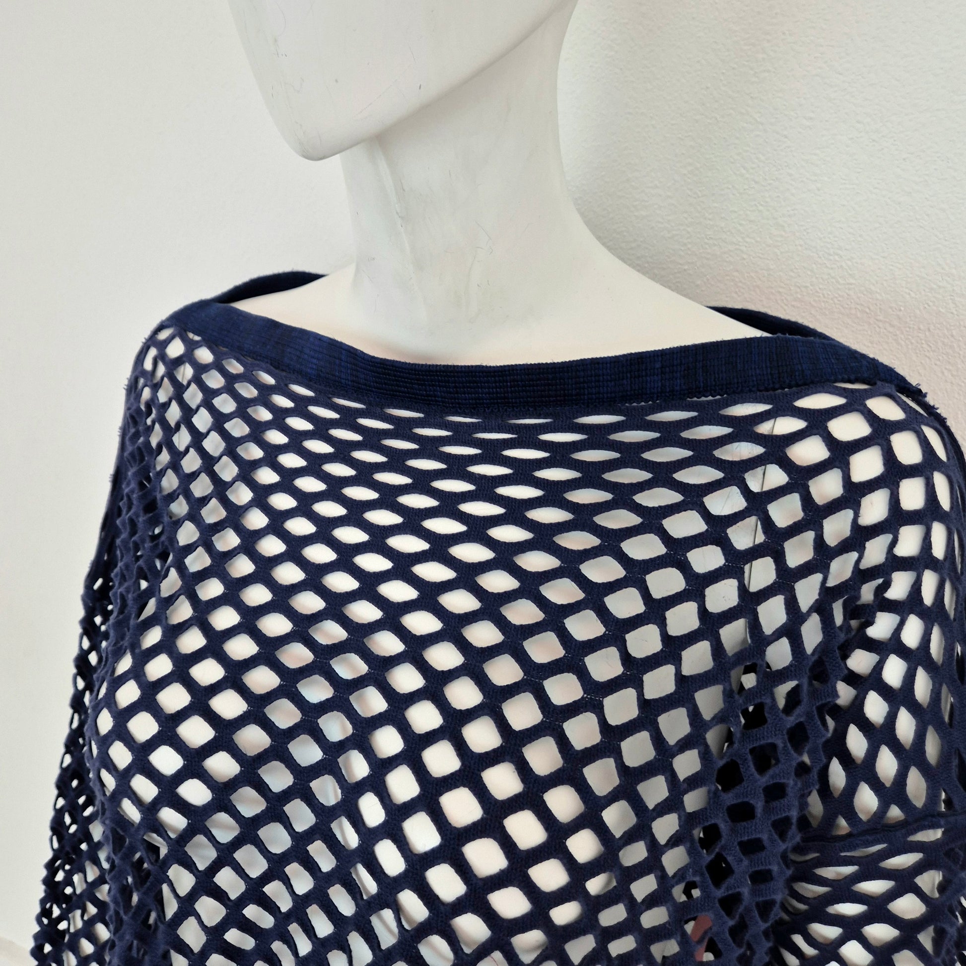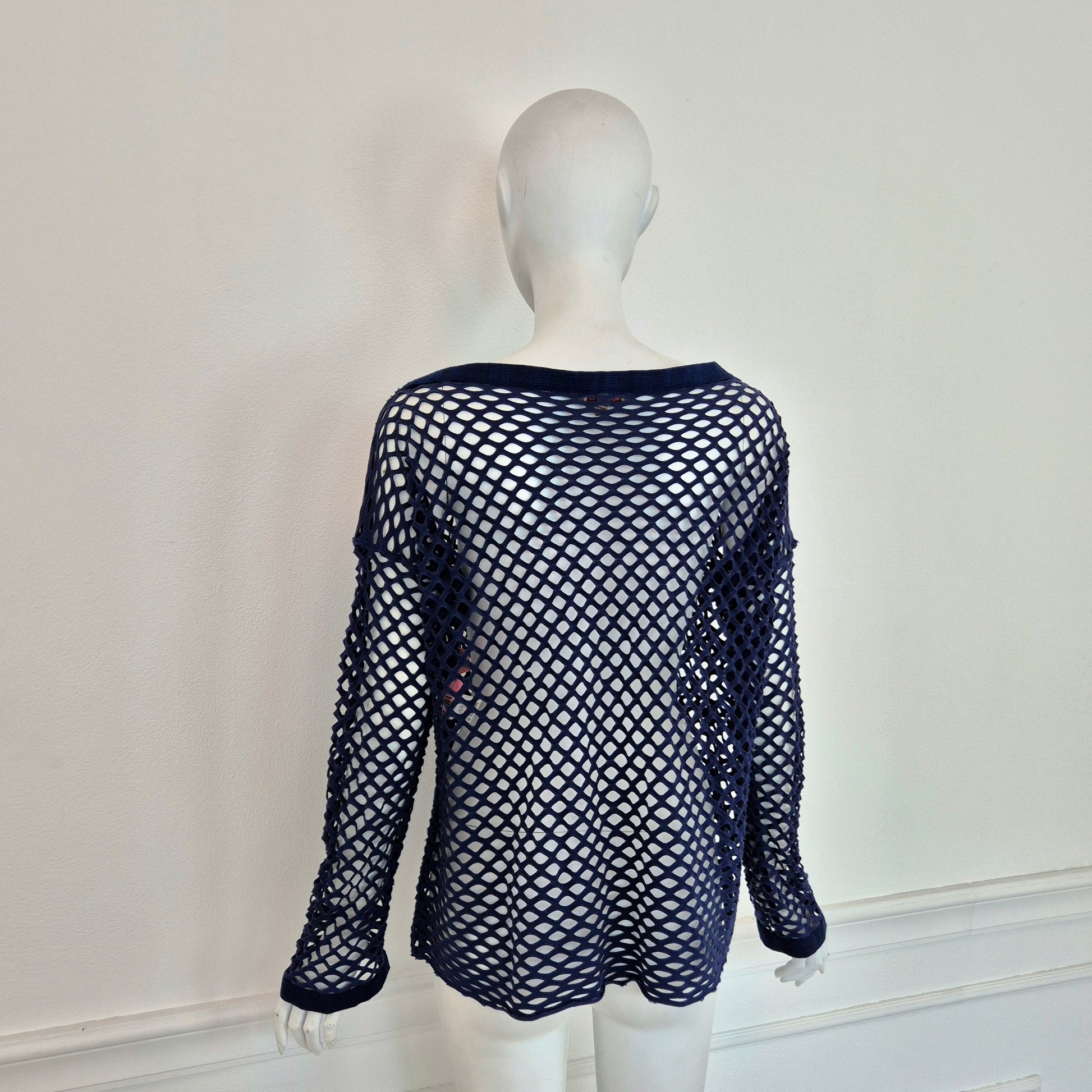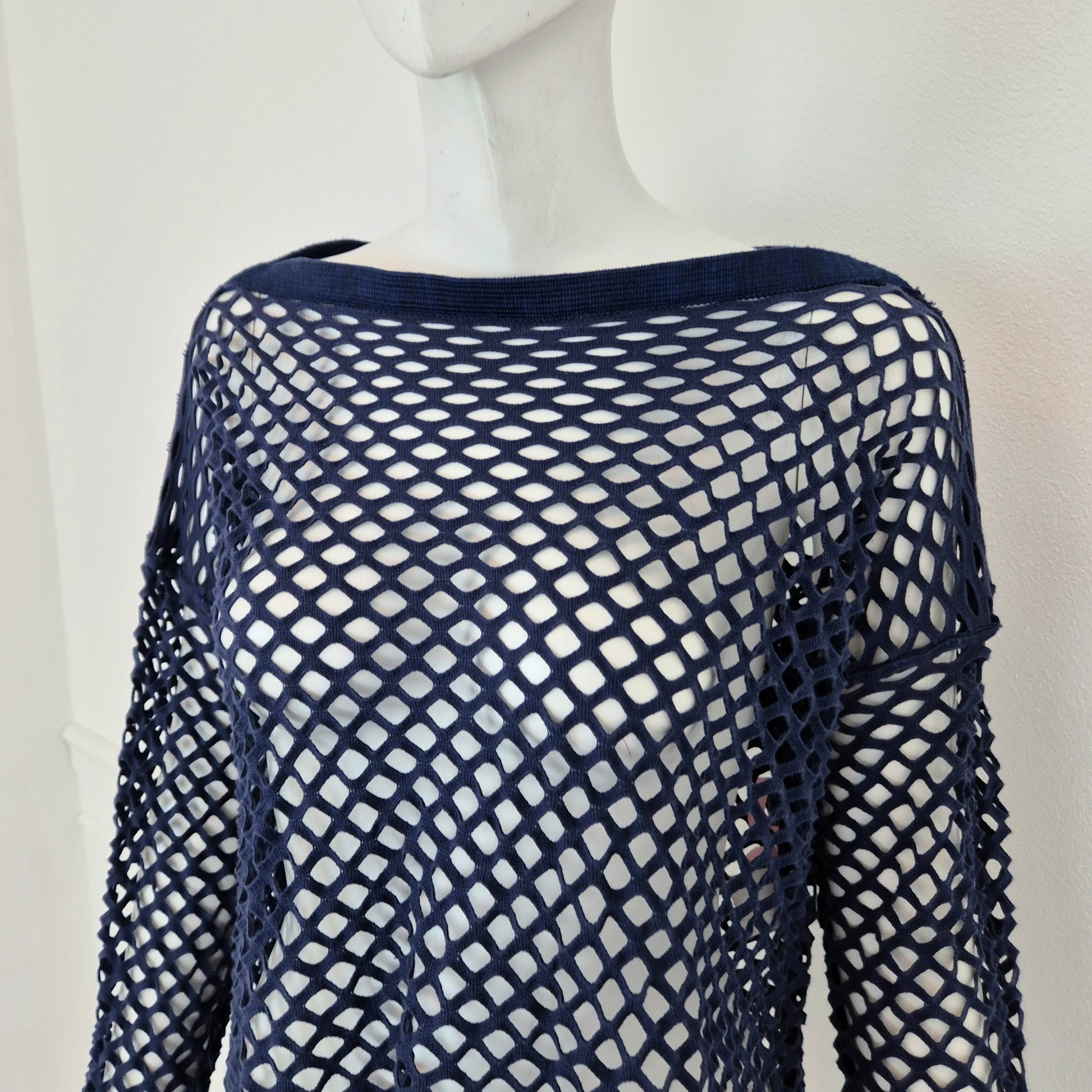 ROMEO GIGLI (1994) maglia vintage in rete di cotone color blu, con scollo a barchetta e manica lunga.