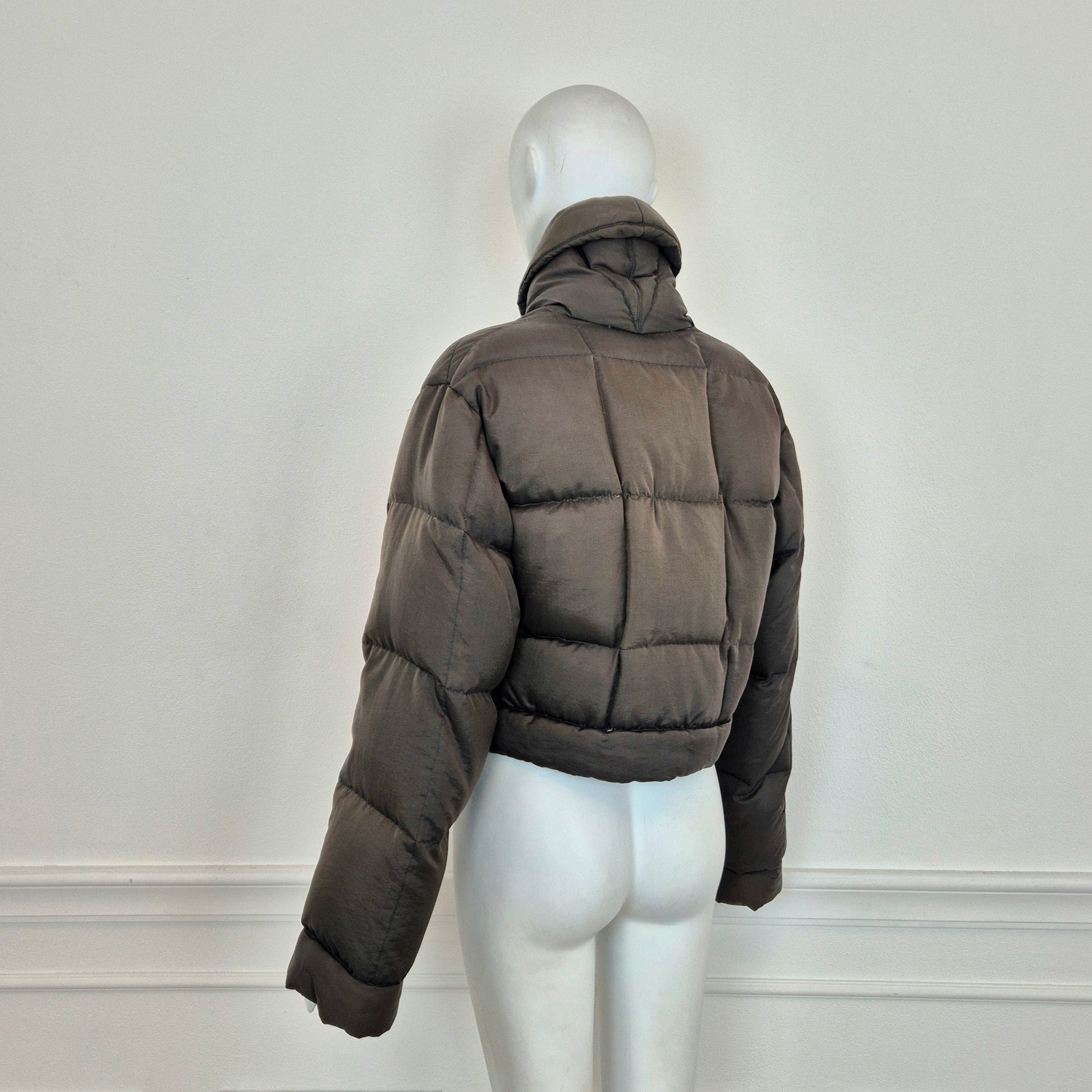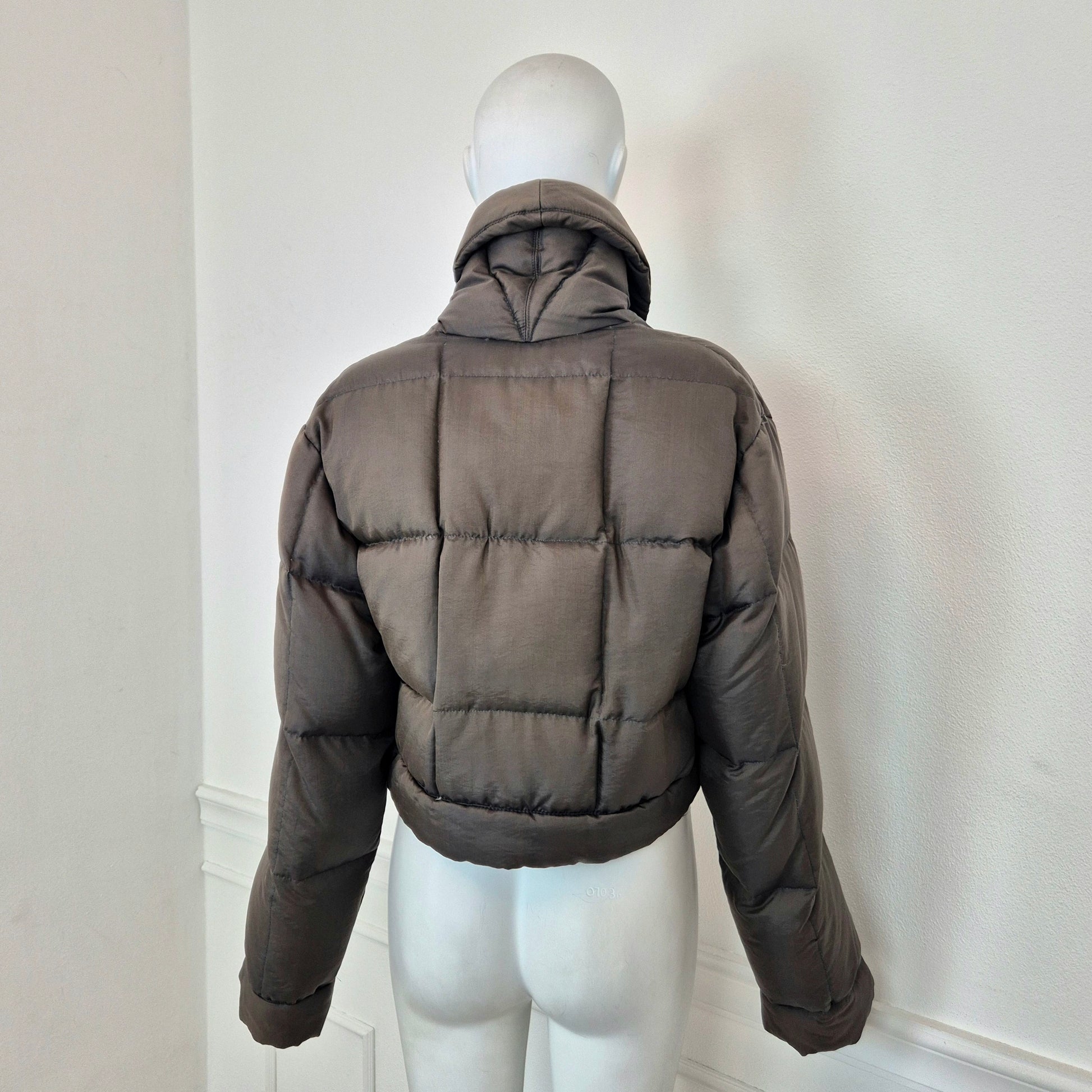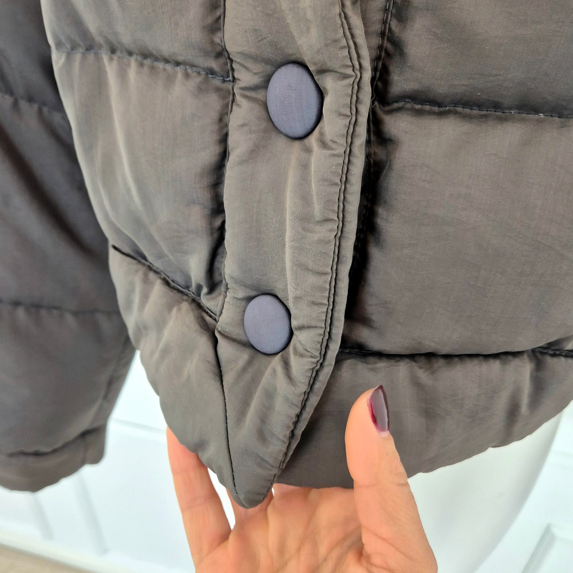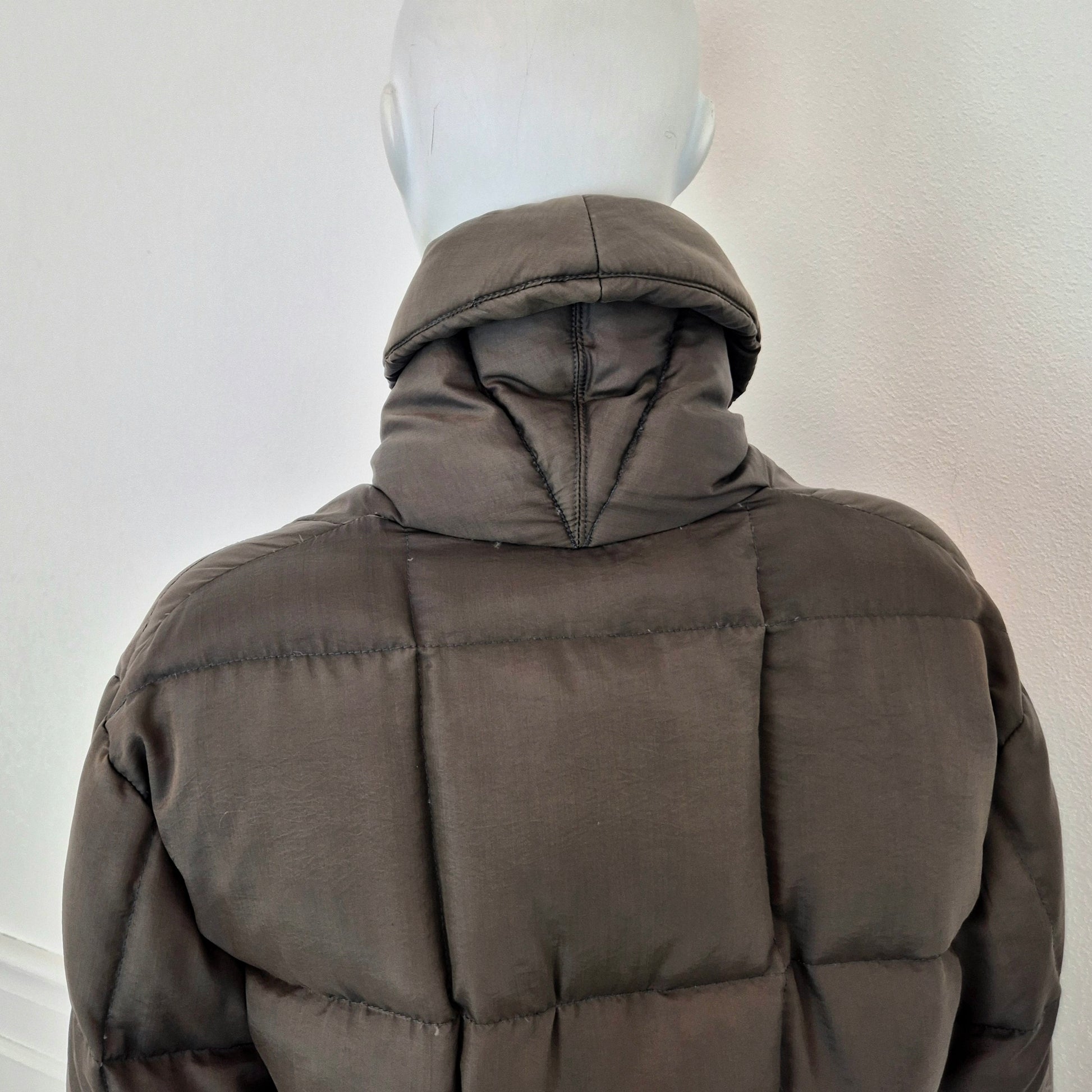 ROMEO GIGLI (linea G di Gigli) piumino corto vintage anni '90 in tessuto impermeabile marrone, con bottoni automatici tono su tono.