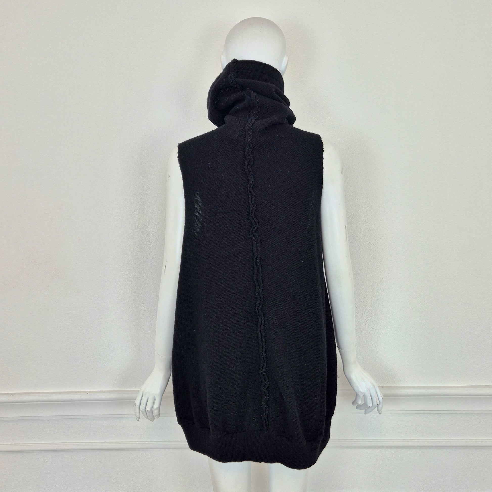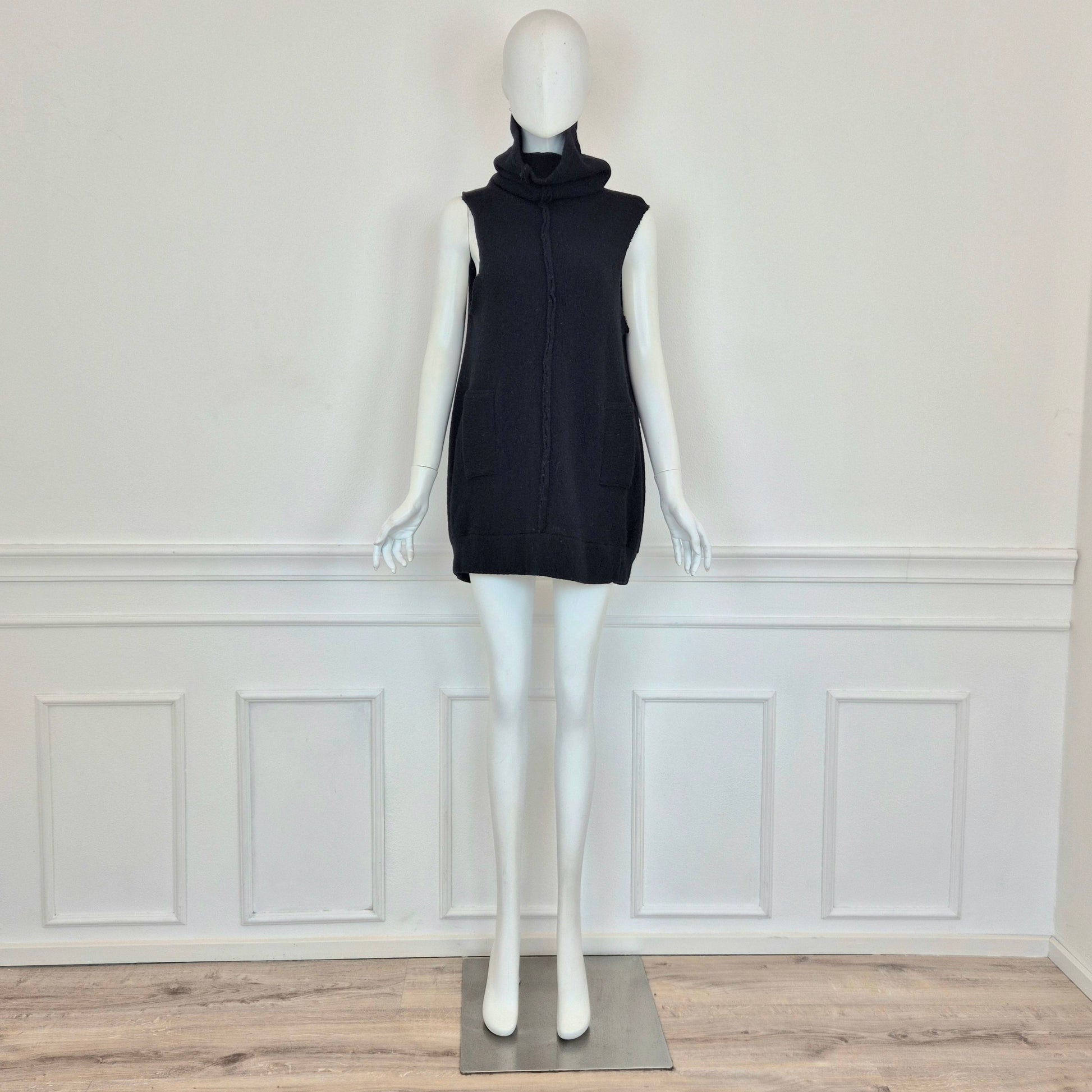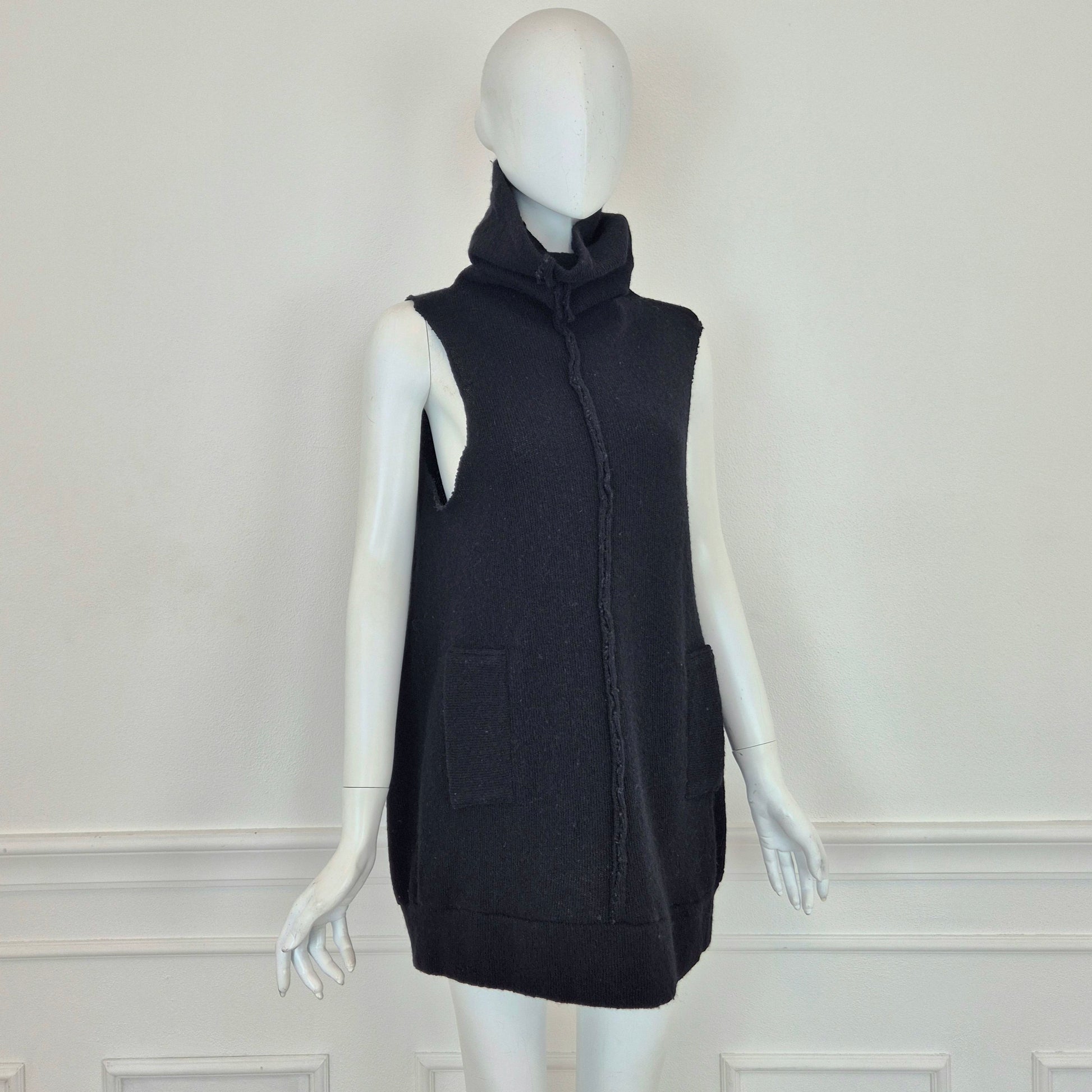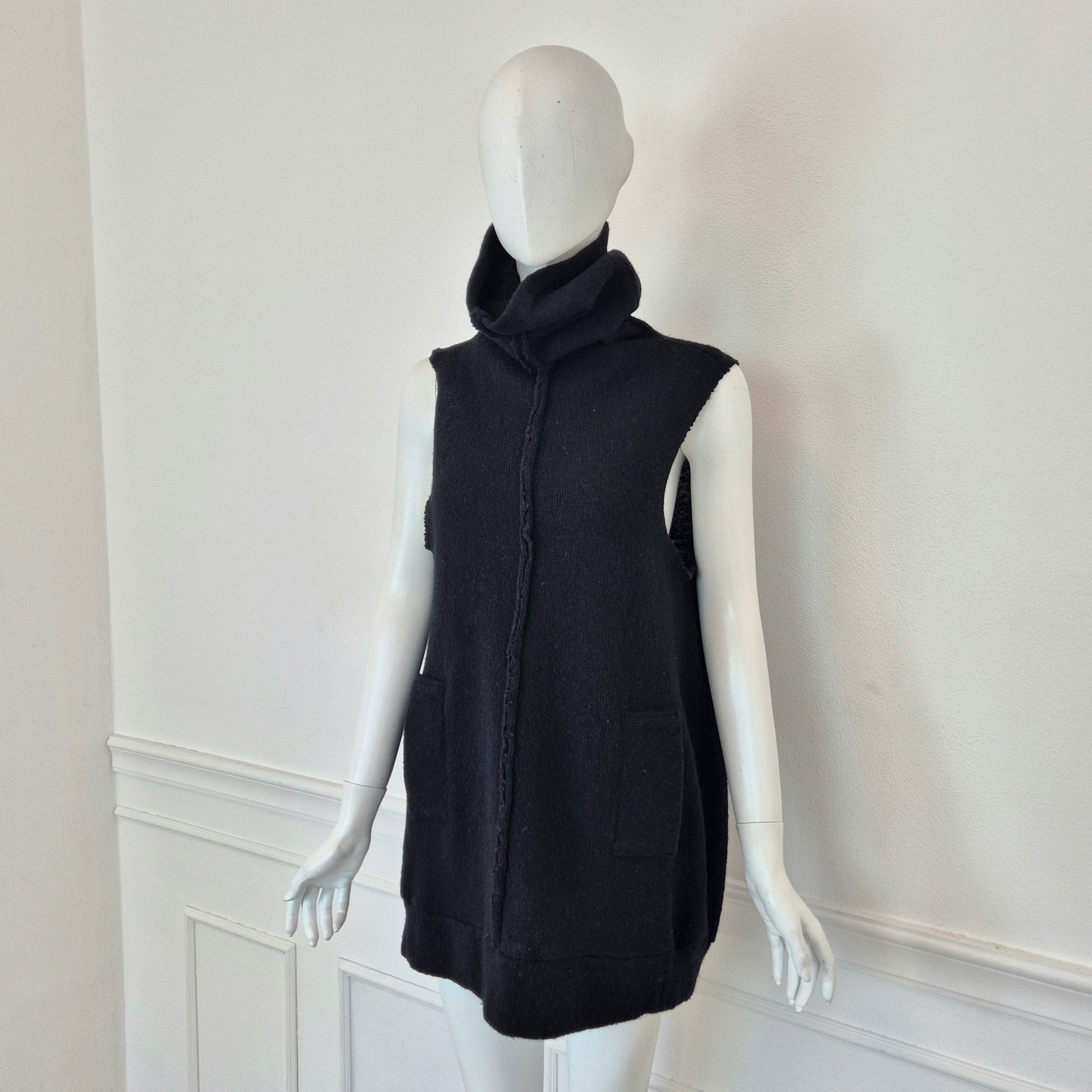 Y'SYOHJI YAMAMOTO maglia nera a collo alto in pura lana, con riga centrale e due tasche sul davanti.