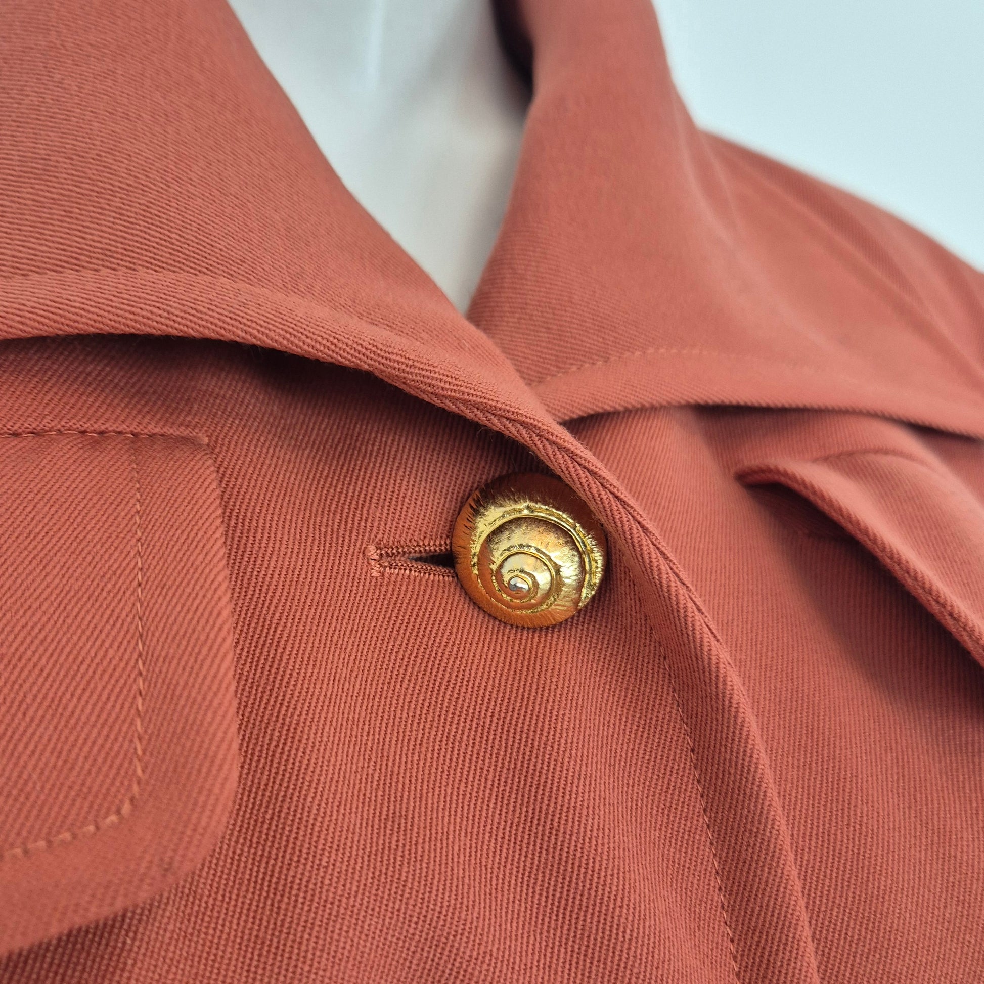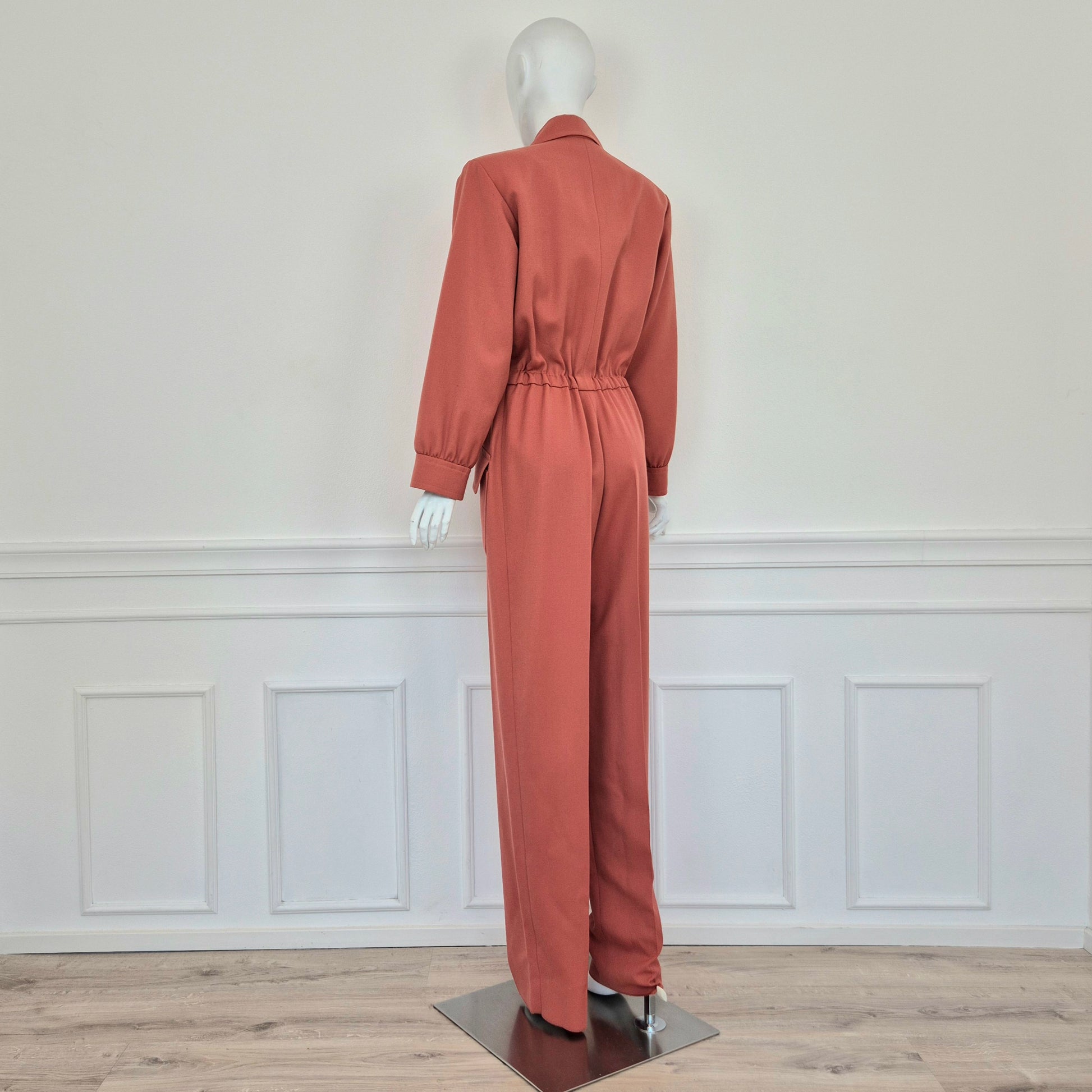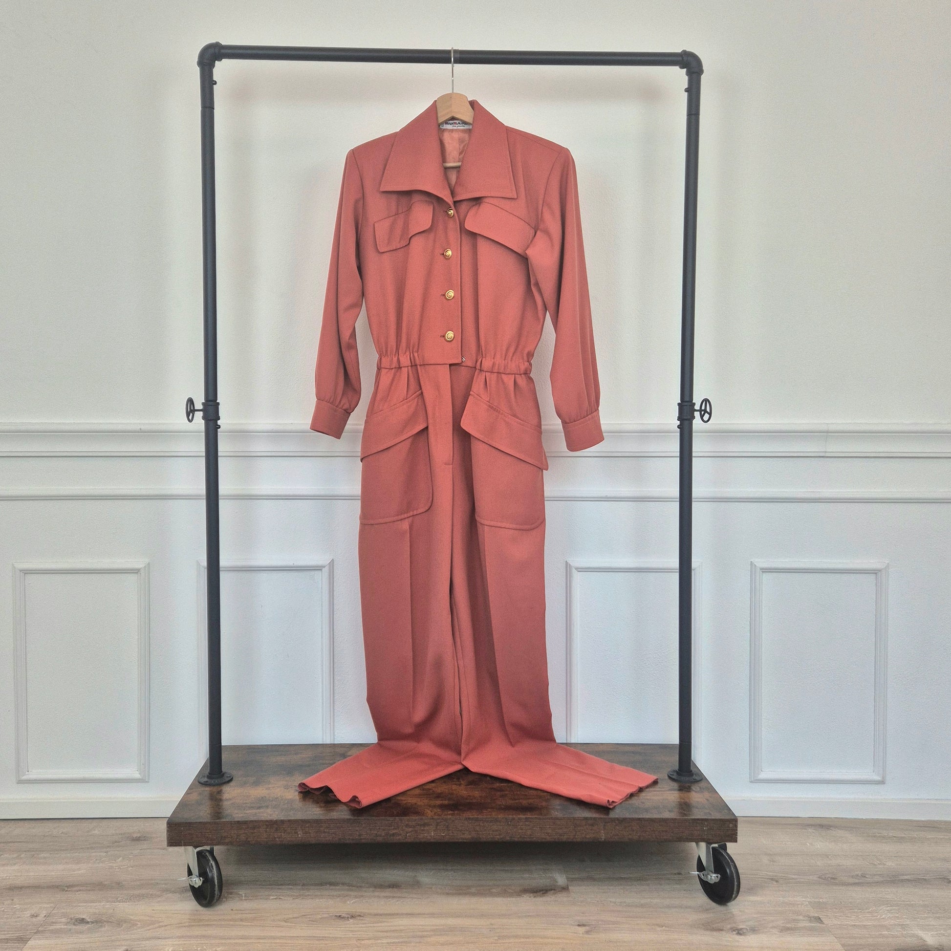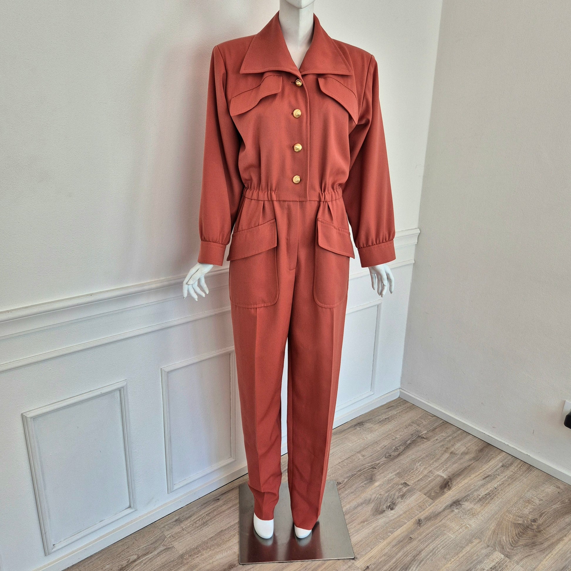 YVES SANT LAURENT rive gauche - incredibile tuta vintage anni 70 color zucca, con colletto a punta e botoni a conchiglia dorati. grandi tasche all'altezza delle anche.